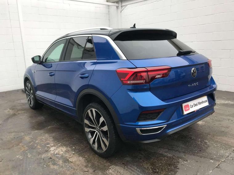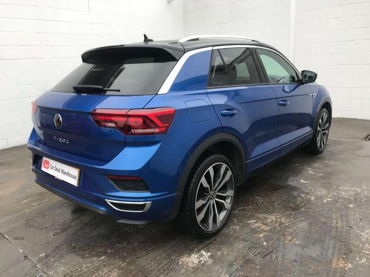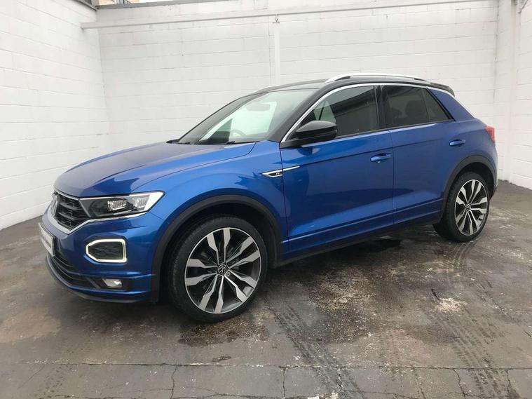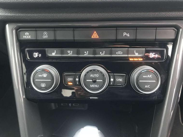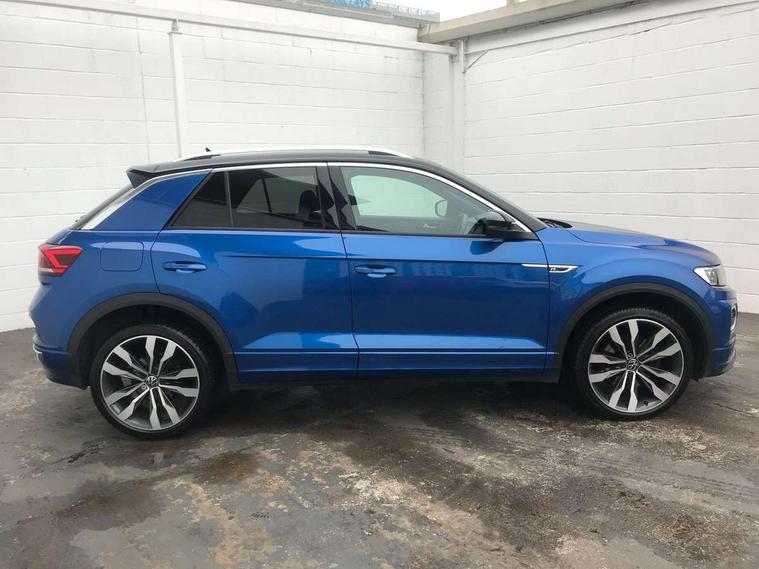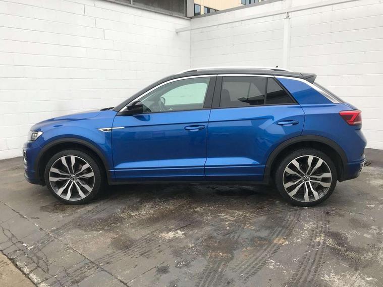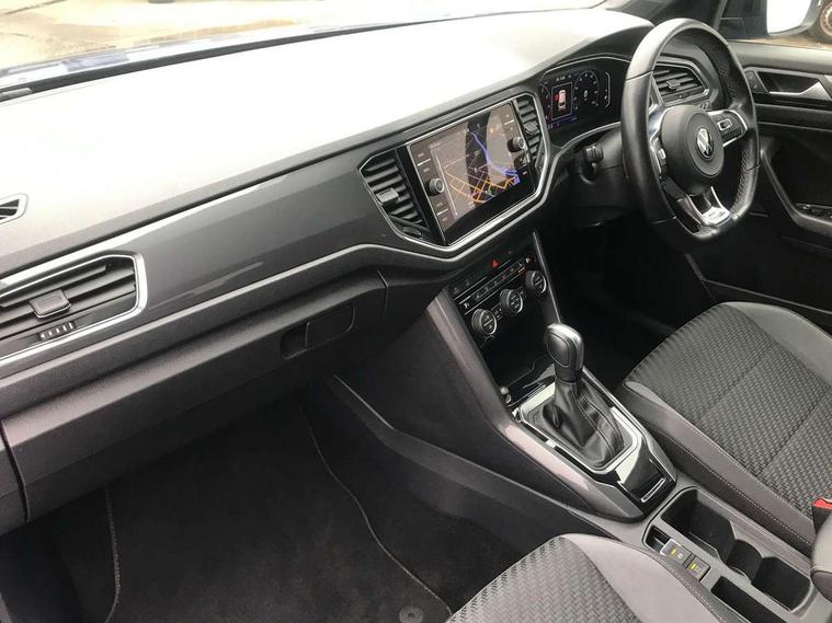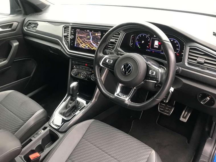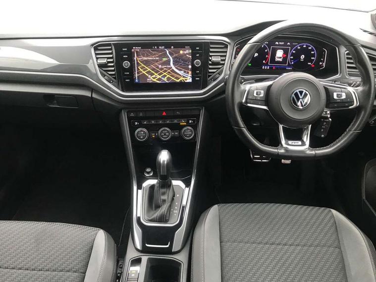 'Lights On' Reminder warning buzzer, Adaptive cruise control, Bluetooth telephone and audio connection for compatible devices, Car information display, Digital Cockpit Pro - Active info display, Driver alert system with audible and visual fatigue detection system, Driver tips and journey analysis, Dusk sensor, Emergency call service, Lane assist with warning text instrument cluster, Modified key software - reduce switch off time for key status change to Long no motion, Multifunction camera, Multifunction computer with visual gear change recommendation for fuel consumption, Navigation system discover media including streaming and internet, Service interval indicator, Think blue trainer driver tips and journey analysis, Traffic sign recognition, Voice activation, Warning sound and light for front seatbelts unfastened, Wireless app connect for apple carPlay, Battery regeneration during braking, Rear shock absorption for sports version, Start/stop function with battery regeneration, DAB Digital radio, Disk brakes in front, Diversity antenna for FM reception, Music playback - MP3, WMA and AAC files, Premium USB cable in choice of either Apple or Android smartphone compatibility, SD card slot, Simultaneous pairing of 2 compatible mobile devices, SMS functionality - read, compose and send SMS messages using touch-screen display, Storage compartment with longitudinal and height adjustable in armrest and two rear air vents, Three route options - Fast, Short, Eco, Title and cover art display, USB-C Interface and USB charging socket, Auto dimming interior rear view mirror, Automatic coming/leaving home lighting function and daytime running lights, Automatic hazard lights activation under emergency braking, Black grained lower door protectors, Body colored door lower parts, Body colour door handles, Body colour rear roof spoiler, Chrome effect left and right trapezoid exhaust tailpipe fascia surround, Chrome plated moldings, Chrome plated radiator grille inserts, air vent surrounds and light switch surrounds, Chrome trim on upper and lower radiator grille, Dynamic headlight range control with self adjusting whilst driving, Electrically foldable, adjustable and heated door mirrors with puddle lights and reverse activated kerb-view adjustment on passenger's door mirror, External USB type C socket and charging sockets, Front and rear electric windows, Front fog lights with static cornering function, Front windscreen wiper with intermittent wipe and 4 position delay, Fully galvanised body, Heated rear window, Heated windscreen washer jets, High level 3rd brake light, LED darkened rear light clusters, LED headlamps with automatic range adjustment and unique signature LED separate daytime running lights, LED rear number plate lights, LED tail lamp rear comination lamps, Privacy glass, R-Line design body coloured bumpers, Rain sensor, Rear tinted glass from B-pillar backwards approx 65% tinted, Rear wash/wipe with intermittent wipe setting, Silver anodised roof rails, Volkswagen roundel, 12V socket in centre console storage area, 3 rear head restraints, 4 load lashing points in luggage compartment, Aluminium pedals, Black roof lining and sun visors, Branded points of interest, Carbon flag cloth upholstery, Climate control - 2 zone electronic air conditioning with automatic air recirculation and allergy filter, Door and side trim panel, Door and side trim panel in foam film, insert in leatherette, Drawer under drivers seat, Front + rear carpet mats, Front centre armrest, Front cupholders x 2, Front seat back storage pockets, Front sports seats with R-Line logo on seat backrest, Glovebox, Heated front seats, Height adjustable front seats, Height/reach adjust steering wheel, Instrument lighting, white adjustable panel illumination, Interior light delay, Interior light in footwell, Isofix easy fit child seat preparation for 2 outer rear seats, Leather gearshift knob, Leather multi function sport steering wheel with gear change selection via paddle shift on steering wheel, LED interior light with switch off delay/dimmer and 2 front/rear LED reading lights, Load through provision with single cup holder when folded down, Luggage compartment cover, removable, Luggage compartment lighting, R Line badge, Scuff plates in door apertures, Split folding rear seat backrests with centre armrest, Stainless steel pedals, Storage compartment in left and right luggage area, Storage compartment in rear doors, Storage compartments in driver and front passenger doors, Sunvisors with illuminated vanity mirrors, Unique R Line door sill protectors, White ambient lighting, R line styling pack - T-Roc, Winter pack - T-Roc, 3 rear three point seatbelts, ABS, Curtain airbags, Driver and front passenger safety-optimised head restraints, Drivers and front passengers airbags with passengers deactivation switch, Drivers seatbelt reminder, Electronic parking brake with auto hold, Electronic stability control (ESC) includes ASR, EDL, EDTC and trailer stabilisation function, Front assist with city emergency braking and pedestrian monitoring, Front seat side impact airbags, Hill start assist, Predictive pedestrian protection, Rigid safety cell with front and rear crumple zones, Single tone horn, Three point height adjust front seatbelts + pretensioners, Tyre pressure loss indicator, Ventilated front and rear disc brakes, Volkswagen roadside assistance, Alarm with remote central locking and interior protection, Electronic engine immobiliser, Remote central locking with SAFELOCK, radio remote control with 2 remote control folding keys, Shadow grey decorative inserts in dash, centre console and door panel, 19" Suzuka alloy wheels with low rolling resistance tyres and anti wheel bolts,