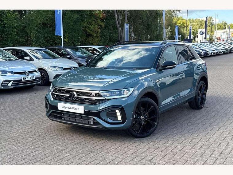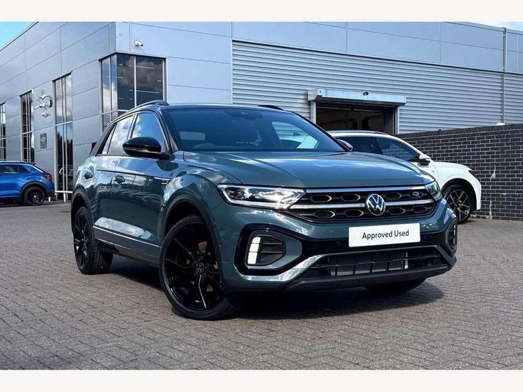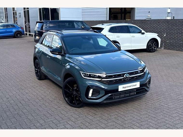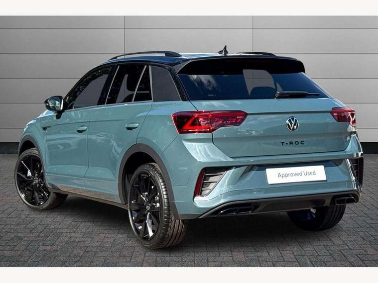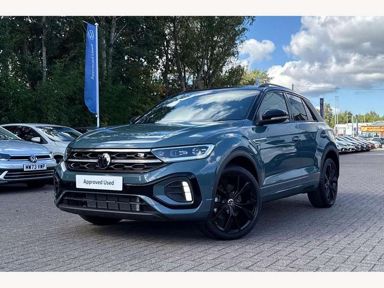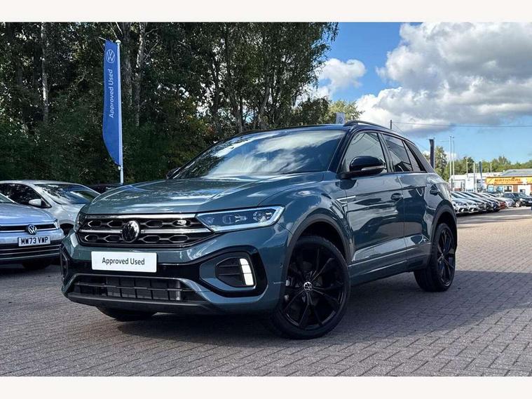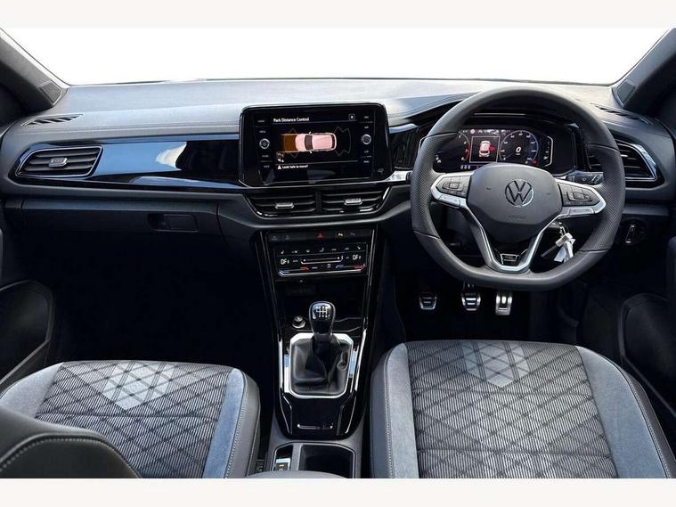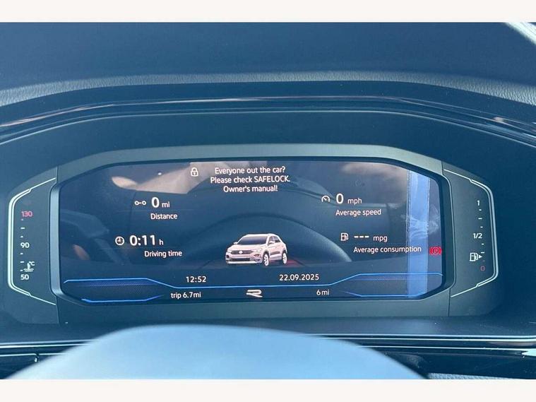 10.25" Digital cockpit pro, Advanced driver attention and drowsiness monitor, Emergency call service, Lane keeping system Lane Assist, Mobile phone interface, Modified key software - reduce switch off time for key status change to Long no motion, Online services, Park assist including front and rear parking sensors, Power assisted speed sensitive steering, Service interval indicator, Tailgate/trunk lid release from outside, Think blue trainer driver tips and journey analysis, Warning sound and light for front seatbelts unfastened, Wireless app connect, Battery regeneration during braking, Rear shock absorption chassis with increased ride height, Start/stop function with battery regeneration, DAB Digital radio, Diversity antenna for FM reception, Front and rear 6 speakers, Music playback - MP3, WMA and AAC files, Premium USB cable in choice of either Apple or Android smartphone compatibility, SD card slot, Simultaneous pairing of 2 compatible mobile devices, Title and cover art display, We Connect and We Connect Plus functionality, Auto dimming interior rear view mirror, Automatic hazard lights activation under emergency braking, Automatic headlight control with LED separate daytime running lights with coming/leaving home function, Dynamic cornering light, Electrically adjustable and heated door mirrors, Extended roof spoiler, Exterior mirrors aspherical on driver side, convex on front passenger side, External USB type C socket and charging sockets, Front windscreen wiper with intermittent wipe and 4 position delay, Heated rear window, Illuminated front grille, IQ LED matrix headlights, LED 3rd brake light, LED rear number plate lights, LED rear tail lights with dynamic turn signal, Light mode for poor weather, rain, fog or snow, Power windows with comfort operation and circuit breaker, R-Line design body coloured bumpers, Rain sensor, Rear exhaust tailpipe, Rear fog light on one side and reversing lights on both sides, Rear side wing doors, Rear wash/wipe with intermittent wipe setting, Remote electrically foldable door mirrors, puddle lights and reverse activated passenger's door mirror, 12V power socket in centre console, 3 rear head restraints, 3 seat bench in 2nd row, 4 load lashing points in luggage compartment, Air care climatronic air conditoning system with active combination filter and 2-zone temperature control, Artvelours cloth upholstery, Black roof lining, Chrome plated radiator grille inserts, air vent surrounds and light switch surrounds, Door and side trim panel with leatherette insert, Drawer under drivers seat, Driver seat height adjust, Driver's seat lumbar support, Front + rear carpet mats, Front centre armrest, Front comfort sports seats, Front cupholders x 2, Front footwell illumination, Front reading light, Front scuff plates with R Line logo, Front seat back storage pockets, Glove compartment door with light, Instrument lighting, white adjustable panel illumination, Interior ambient lighting and surround lighting, Interior light delay, Isofix child seat preparation, Leather gearshift handle, Load-through provision with cup holder when folded down ('Unsplit rear seat bench, split folding backrest, with centre armrest), Luggage compartment lighting, Non-folding front passenger seat backrest, Passenger seat height adjuster, Passenger seat lumbar support, Single front passenger seat, Stainless steel pedals, Storage compartment in left and right luggage area, Storage compartment in rear doors, Storage compartments in driver and front passenger doors, Sunvisors with illuminated vanity mirrors, Variable boot floor, height adjustable and removable, Winter pack without heated windscreen washer jets - T-Roc, 3 point height adj front seatbelts + pretensioners, 3 point seatbelts in outer rear with ECE label, ABS, Child locks on rear doors, City emergency braking and pedestrian monitoring, Driver and front passenger airbag with front passenger airbag deactivation, Driver and front passenger safety-optimised head restraints, Drivers seatbelt reminder, Electronic parking brake, Electronic Stability Control (ESC) inc EDL (Electronic Differential Lock) and ASR (Traction Control), Front and rear passengers curtain airbag system including front side airbags, Front disc brakes, Hill start assist, Predictive pedestrian protection, Rear disc brakes, Two tone horn, Tyre pressure loss indicator, Volkswagen roadside assistance, Tool kit, Trims for alloy wheels, Tyre mobility kit including compressor and sealing foam,