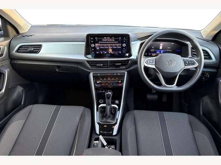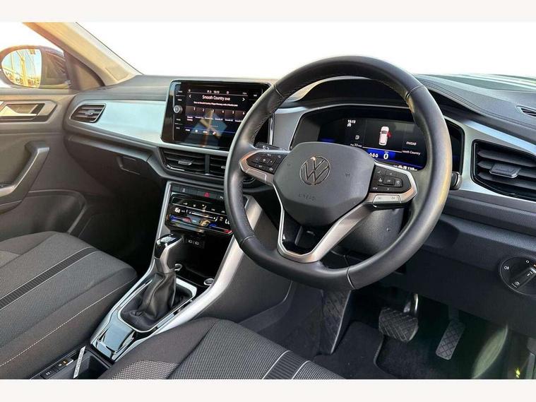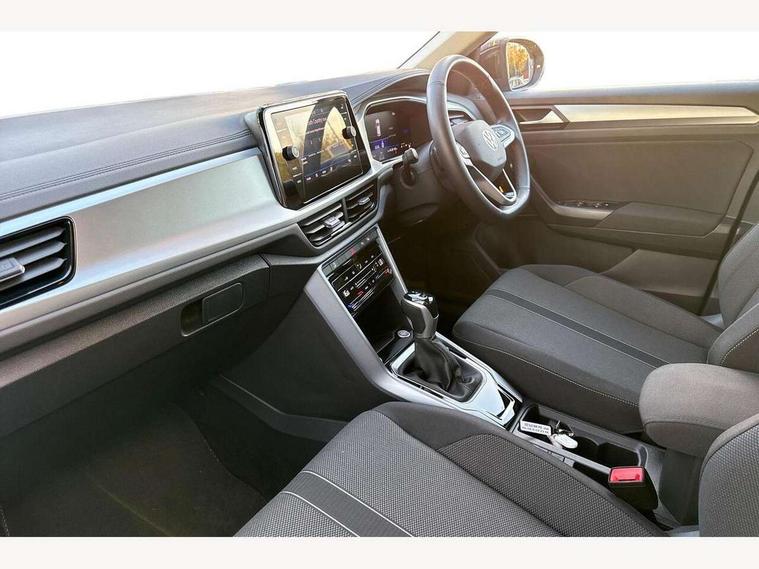 Advanced driver attention and drowsiness monitor, Dynamic road sign display, Emergency call service, Lane keeping system Lane Assist, Mobile phone interface, Modified key software - reduce switch off time for key status change to Long no motion, Online services, Park assist including front and rear parking sensors, Power assisted speed sensitive steering, Rear view camera, Service interval indicator, Tailgate/trunk lid release from outside, Think blue trainer driver tips and journey analysis, Warning sound and light for front seatbelts unfastened, Wireless app connect, Battery regeneration during braking, Front shock absorption, Rear shock absorption chassis with increased ride height, Start/stop function with battery regeneration, DAB Digital radio, Diversity antenna for FM reception, Front and rear 6 speakers, Music playback - MP3, WMA and AAC files, Premium USB cable in choice of either Apple or Android smartphone compatibility, SD card slot, Simultaneous pairing of 2 compatible mobile devices, Title and cover art display, We Connect and We Connect Plus functionality, Auto dimming interior rear view mirror, Automatic hazard lights activation under emergency braking, Automatic headlight control with LED separate daytime running lights with coming/leaving home function, Black roof rails, Body coloured bumpers and radiator grille with chrome trim and front fog lamps with chrome bezel, Body coloured exterior mirror housings and door handles, Electrically adjustable and heated door mirrors, Extended roof spoiler, Exterior mirrors aspherical on driver side, convex on front passenger side, External USB type C socket and charging sockets, Front windscreen wiper with intermittent wipe and 4 position delay, Heated rear window, LED 3rd brake light, LED rear combination lamps, LED rear number plate lights, Power windows with comfort operation and circuit breaker, Privacy glass for rear side windows and rear window, Rain sensor, Rear exhaust tailpipe, Rear fog light on one side and reversing lights on both sides, Rear side wing doors, Rear wash/wipe with intermittent wipe setting, Remote electrically foldable door mirrors, puddle lights and reverse activated passenger's door mirror, 12V power socket in centre console, 3 rear head restraints, 3 seat bench in 2nd row, 4 load lashing points in luggage compartment, Air care climatronic air conditoning system with active combination filter and 2-zone temperature control, Black stitching for floor mats, Ceramique roof liner, Cloth upholstery, Door and side trim panel in cloth, Drawer under drivers seat, Driver/front passenger seat height adjustment, Front centre armrest, Front comfort sports seats, Front cupholders x 2, Front reading light, Front seat back storage pockets, Glove compartment door with light, Instrument lighting, white adjustable panel illumination, Interior ambient lighting and surround lighting, Interior light delay, Isofix child seat preparation, Leather gearshift handle, Load-through provision with cup holder when folded down ('Unsplit rear seat bench, split folding backrest, with centre armrest), Luggage compartment lighting, Lumbar support for driver's and front passengers seat, Non-folding front passenger seat backrest, Single front passenger seat, Storage compartment in left and right luggage area, Storage compartment in rear doors, Storage compartments in driver and front passenger doors, Sunvisors with illuminated vanity mirrors, Variable boot floor, height adjustable and removable, Driver assistance pack without proactive passenger protection - T-Roc Life/Match, 3 point height adj front seatbelts + pretensioners, 3 point seatbelts in outer rear with ECE label, ABS, Child locks on rear doors, City emergency braking and pedestrian monitoring, Driver and front passenger airbag with front passenger airbag deactivation, Driver and front passenger safety-optimised head restraints, Drivers seatbelt reminder, Electronic parking brake, Electronic Stability Control (ESC) inc EDL (Electronic Differential Lock) and ASR (Traction Control), Front and rear passengers curtain airbag system including front side airbags, Front disc brakes, Hill start assist, Predictive pedestrian protection, Rear disc brakes, Two tone horn, Tyre pressure loss indicator, Volkswagen roadside assistance, Alarm with interior protection, Keyless locking and starting system keyless access with safelock, Pewter matt decorative inserts for intrument panel, centre console and door panels at the front, Trims for alloy wheels,