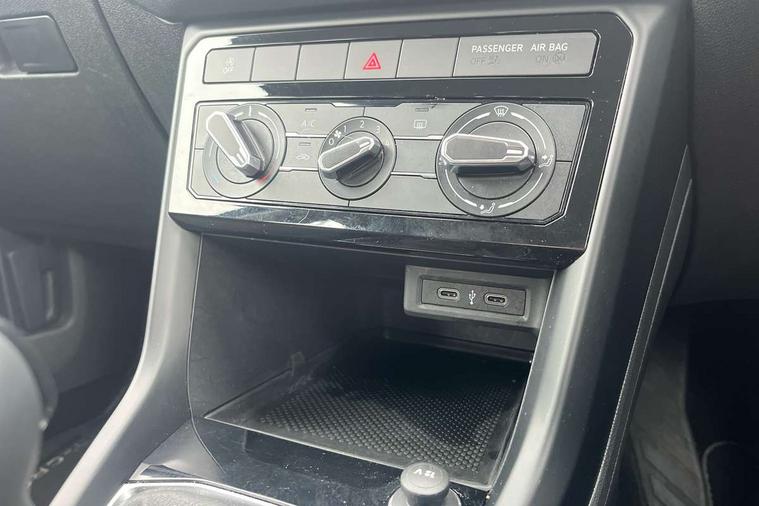 'Lights On' Reminder warning buzzer, Adaptive cruise control including front assist, forward collision warning, autonomous emergency braking, speed limiter, Blind spot monitoring, Bluetooth telephone and audio connection for compatible devices, Car information display, Digital cockpit, Driver alert system, eCall emergency call system, Lane assist, Low washer fluid warning light, Multifunction computer with visual gear change recommendation for fuel consumption, Operating permit alteration, Power assisted speed sensitive steering, Speedo, rev counter, electronic odometer, trip, service interval display, exterior temperature and fuel gauge, Stop/start system, Warning sound and light for doors and tailgate open, Warning sound and light for front seatbelts unfastened, We Connect Go Dongle, Wireless Car net app connect with Apple CarPlay, combined functionality of Apple CarPlay/Android Auto and MirrorLink, Battery regeneration during braking, Misfuel prevention device, 2x USB connection with USB charging sockets and in rear centre console, DAB Digital radio receiver, Diversity antenna for FM reception, Multi device interface (MDI) with USB connection, Music playback - MP3, WMA and AAC files, Premium USB cable for Apple or Android smartphone compatibility, Simultaneous pairing of 2 compatible mobile devices, Title and cover art display, Automatic hazard lights activation under emergency braking, Black roof rails, Body colour door handles, Body colour door mirrors with integrated indicators, Body coloured bumpers, Dusk sensor + automatic driving lights, Electrically foldable, adjustable and heated door mirrors with reverse activated kerb view adjustment on passenger's side, Front and rear electric windows, Front fog lights with static cornering function, Galvanised body, Heated rear window, LED third brake light, Lower door sills and door pillars in black, Radiator grille with high gloss surface and chrome strip, Rear fog light on one side, reversing light on both sides, Rear lights incorporating LED technology, Rear side wing doors, Rear window aerial, Rear windscreen washer and wiper with interval delay, Reflectors in all doors, Tailgate with integrated roof spoiler, Windscreen wipers/ intermittent wipe + 4 position delay, 12V Accessory socket in centre console, 3 rear head restraints and 3 rear three point seat belts with ECE label, 3 seat bench in 2nd row, 60/40 split folding rear seat backrest, Drawer under drivers seat, Driver and front passenger sunvisor with vanity mirror, Driver's sunvisor with ticket holder, Dust and pollen filter, Front and rear reading lights X 2, Front centre armrest with storage compartment, Front seat back storage pockets, Front seats with adjustable lumbar support, Glovebox, Heating and fresh air system with 4 stage blower, Height/reach adjust steering wheel, Instrument lighting white adjustable panel illumination, Interior light with delay, Isofix child seat preparation for 2 rear child seats, Luggage compartment cover, Luggage compartment lighting, Manual air conditioning, Manual front seats with height adjustment, Moveable and foldable Rear bench seat, Single front passenger seat, Storage compartment in drivers and front passengers door, Three spoke multi-function leather trimmed steering wheel and gearknob, Triangle ties/pearl cloth upholstery, Variable boot floor, Anti-lock Braking System (ABS) with Hydraulic Brake Assist (HBA), Automatic post collision braking system, Driver and front passenger safety-optimised head restraints, Drivers and Front Passengers airbags with front passengers airbag deactivation switch, ESC with EDL, ASR, EDTC and trailer stabilisation function, Front and rear curtain airbags, Front seat side impact airbags, Height-adjustable front three-point seat belts with tensioners, Hill start assist, Pre crash preventive occupant protection, Rear door child safety locks, Rigid safety cell with front and rear crumple zones, Single torn horn, Tyre pressure loss indicator, Volkswagen roadside assistance, Alarm with interior protection and deactivation via infotainment system, Child security locks in rear doors, Electronic engine immobiliser, Remote tailgate unlocking using key fob, Pineapple decorative inserts in dash and doors, 17" Clayton alloy wheels + anti theft wheel bolts, Breakdown kit,