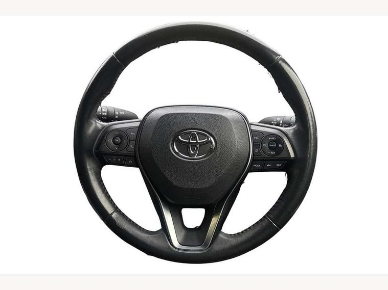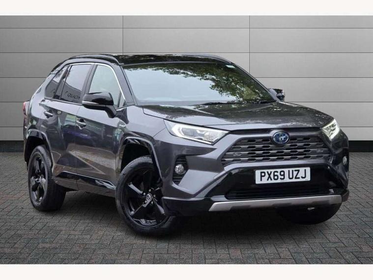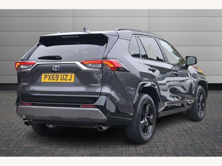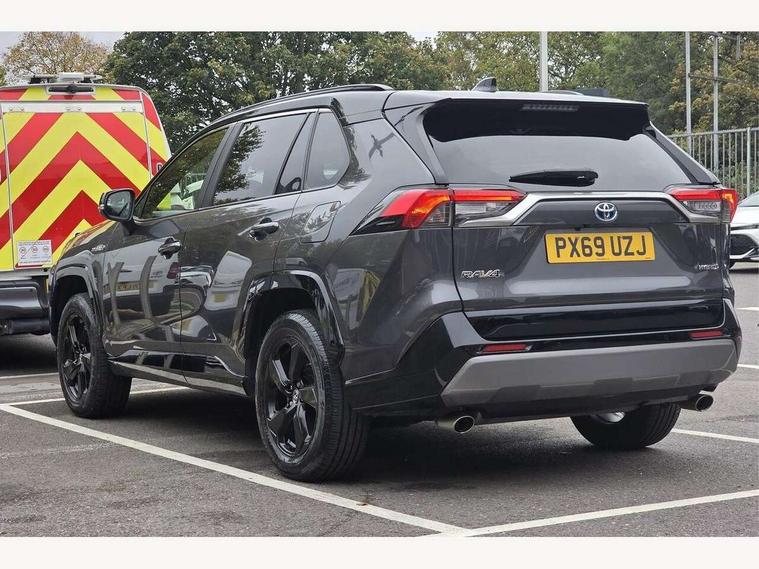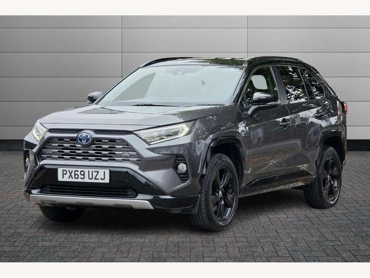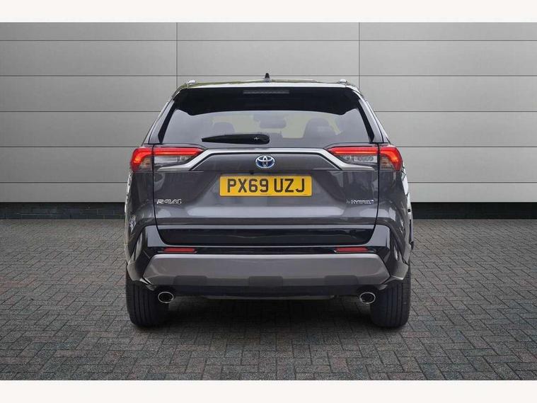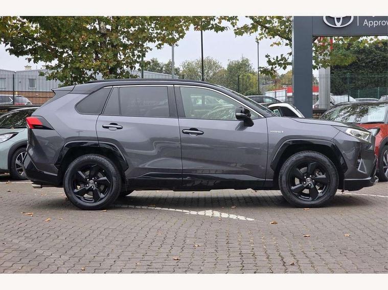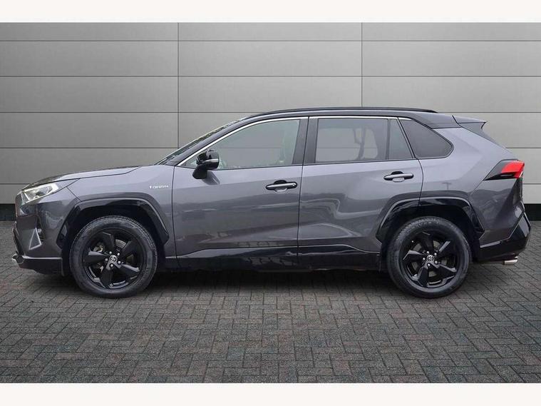 7" colour TFT display, Adaptive cruise control with lane trace assist, Adjustable speed limiter, Blind spot monitoring with rear cross traffic alert, Bluetooth system, Cyclist Detection, Drive mode selector, eCall emergency call system, ECO-driving indicator, Electric power steering, Hybrid system indicator, Lane departure warning system, Lights on warning, Night Time Pedestrian Detection, Pedestrial detection, Power boot opening and closing, Rear parking camera, Rear parking sensors, Remote boot door release in cabin, Tachometer, Touch 2 Go navigation system including 3D maps and voice control, Traffic sign recognition, Trip computer, Voice control system, Vehicle Stability Control (VSC), 6 speakers, 8" Multimedia display touch screen, Auxiliary socket for external MP3 player, DAB audio, Steering wheel mounted audio controls, Toyota touch media system, USB connection, Auto dimming interior mirror, Auto high beam, Automatic headlamp levelling, Automatic headlights, Automatically retractable door mirrors, Bi-tone black roof, Black door mirrors, Black rear spoiler, Black roof rails, Black Shark-fin antenna, Body colour door handles, Body coloured bumpers, Door mirror puddle lights, Electric adjustable door mirrors, Emergency brake-light signal (EBS), Follow me home headlights, Front fog lights, Gloss black front bumper insert, Gloss black rear bumper insert, Headlight cleaners, Heated door mirrors, LED daytime running lights, LED High mounted stop lamp, LED rear lights, Meshed upper front grille, Power front windows, Power rear windows, Privacy glass, Projector LED headlights, Rear screen wiper - intermittent, Rear windscreen defogger, Silver front under-run, Silver rear under-run, Trailer Sway Control, Turning signal integrated indicators in door mirrors, 3 rear headrests, 60/40 split fold rear seat back, Black roof lining, Boot light, Clean air filter, Driver and front passenger personal light, Driver and front passenger Whiplash Injury Lessening seats, Driver and passenger sunvisors with illuminated vanity mirrors, Dual sided deck board in boot, Dual zone automatic air conditioning, Floor mats, Folding rear centre armrest, Front and rear bottle holders, Front centre armrest, Front footwell lights, Front headrests, Front seat and rear pockets, Front sport seats, Front/rear roof mounted assist grips, Heated driver and front passenger seats, Isofix child seat preparation, Leather gear shift with chrome surround, Light blue ambient lighting on front cupholders and open tray, Manual telescopic and tilt 3-spoke leather steering wheel with Chrome insert, Manually reclining and sliding front passenger seat, Pollen filter, Power height-adjustable sliding reclining and lumbar support for driver seat, Rear coat hooks, Rear door armrests, Rear passenger air vents, Reclining rear seats, Satin chrome interior door handles, Sunglasses holder, Synthetic leather upholstery, Parking pack - Rav4, 3x3 point rear seatbelts, ABS/EBD, Adjustable front driver and passenger seat belt extender, Brake assist function, Child proof door locks, Collision mitigation braking system, Driver/Front Passenger airbags, Driver/front passenger side airbags, Drivers knee airbag, Electronic parking brake, Electronic Stability Programme (ESP), Emergency brake light system (EBS), Front and rear curtain airbags, Front and rear seatbelt reminder, Hill start assist, Passenger airbag cut-off device, Seatbelt pretensioners with load limiters, Traction control, Tyre pressure warning, Alarm/immobiliser, Glass-breaking alarm sensors, Light - on and Key in reminder, Remote central locking, Smart entry + Smart start, Speed sensitive auto door locking, Tilt detection sensors, Piano black centre console with silver insert, Soft-touch black lower dashboard, Soft-touch black upper dashboard with silver insert, Full size spare wheel,