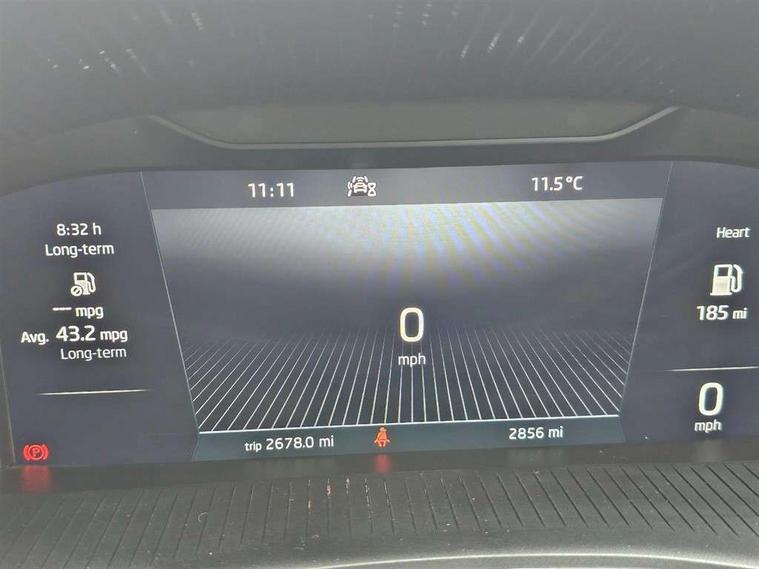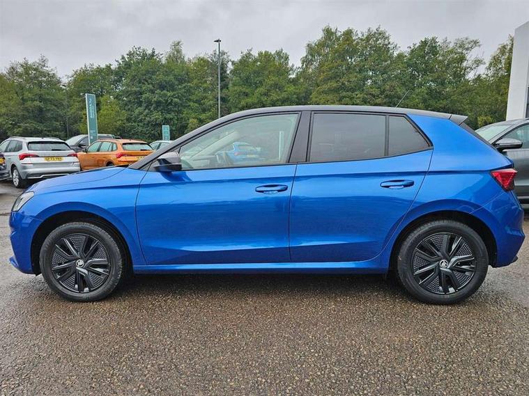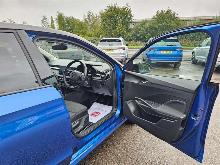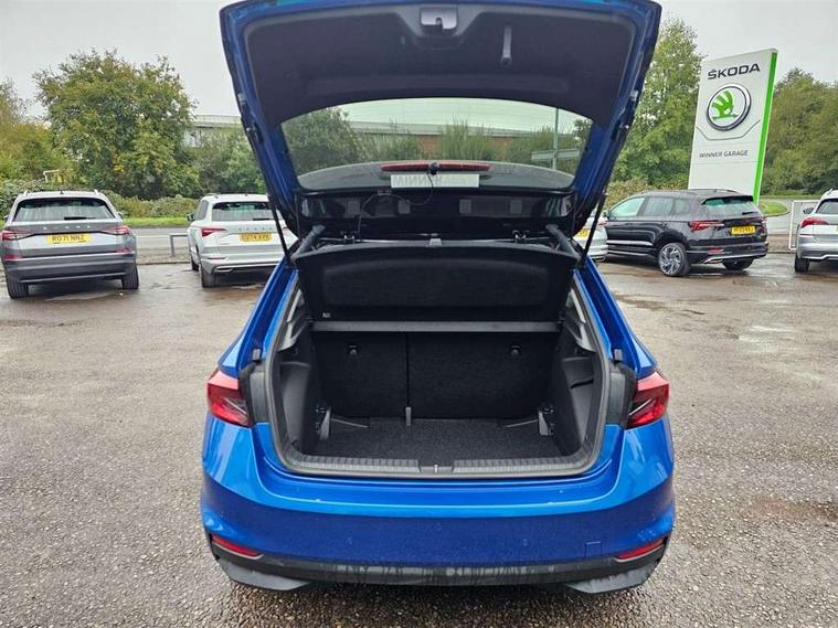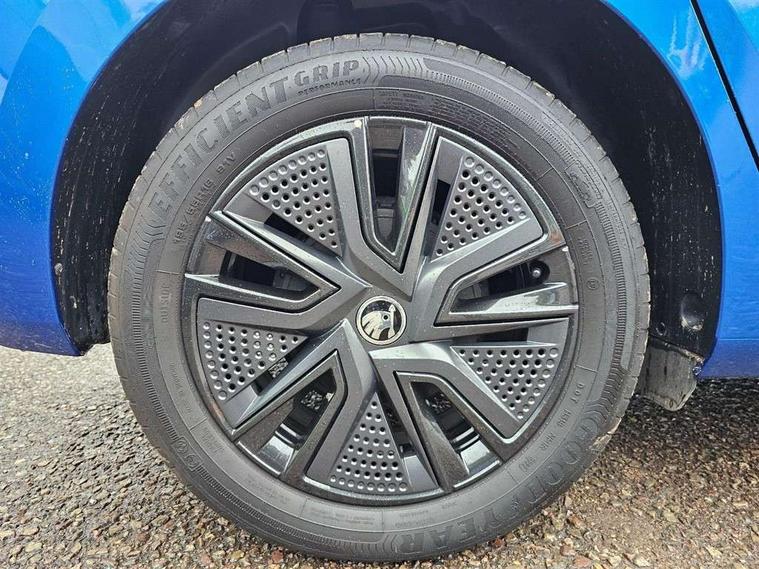 Bluetooth connection, Driver alert system - DAS, Electromechanical power steering, Exterior temperature gauge, Lane assist including road edge detection, Service interval indicator, Virtual cockpit with 10.25" colour display, 2x USB-C in the front (for data transmission and charging), 6 Speakers (4 in front and 2 in rear), Auxiliary socket for external MP3 player, Bolero radio with 8" colour display, DAB digital radio reception, Basic rear lights, Body coloured bumpers, Dimming rear view mirror with black frame, Door mirror integrated indicators, Electrically adjustable and heated door mirrors, Electrically adjustable front windows with function auto up/down, Front window wiper intermittent control, Headlight range control - Automatic, Ice scraper in fuel cap, LED daytime running lights with coming and leaving home feature, Mechanical adjustable rear windows, Privacy glass, Rear LED fog light, Rear side wing doors, Rear window wiper with washing nozzles, Roof mounted spoiler, SKODA tailgate lettering in chrome, Third brake light, 3 rear headrests, Backrest split and folding, Central console with fixed cup holder and storage box, Chrome handbrake release button, Fabric upholstery, Gearshift knob/handle in leather, Grain satin black interior door handles, Hand brake lever handle in leather, Height adjustable front headrests, Height adjustable steering wheel, ISOFIX and TopTether anchorage points to the outer rear seats, ISOFIX and TopTether on the front passenger seat, Luggage compartment lighting, Pollen filter, Rear seat bench unsplit, Single front passenger seat, Storm grey headlining, Sun visors with mirror and airbag label on passenger side, Ticket holder, Umbrella in drivers door, 3-point height adjustable front seats belts with pretensioner and force limiter, Automatic warning lights in case of crash, Driver and passengers airbag with switch off function, e-Call+, ESC including ABS, MSR, ASR, EDS, HBA and XDS, Front and rear seat belt warning, FRONT ASSIST (AEB City and AEB Inter Urban), Front side airbags, Head airbags, One tone horn, Pedestrian protection, Three rear 3-points safety seat belts with pretensioner and force limiter including stop function for outer rear seat belts, Tyre pressure monitoring system, Anti-theft alarm system including immobiliser, interior monitoring, backup horn, and towing protection, Anodized cross line upper decorative trim, Colour Edition air vents, Grain satin black central console cover, Grain satin black lower decorative trim, Satin black door and side trim panel in front, Anti-theft wheel bolts protection, Super-low rolling resistance tyres,