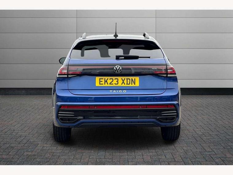 App-Connect including App-Connect Wireless, Digital cockpit pro - 10.25" high resolution TFT dash display screen with customizable menus and information, Driver alert system, Driving profile selection, e-Call (emergency call), Power Steering, Travel assist including emergency assist, Washer fluid level indicator, Wireless Charging including Bluetooth, Start-stop system with battery regeneration (recuperation - energy recovery during braking), XDS electronic differential lock for improved traction and handling, Digital radio reception (DAB+), Diversity antenna for FM reception, WeConnect plus, Aspherical driver's exterior mirror, Auto headlights, Body coloured bumpers, Body coloured exterior mirror housings and door handles, Bumpers in R-Line style, Electric windows, External USB type C socket and charging sockets, Front fog lamps with cornering function, Front scuff plates with R-Line logo, Headlight range control, LED headlamps, LED rear combination lamp, LED third brake light, Left convex exterior mirror, Power folding adjustable/heated exterior mirrors and front passenger exterior mirror lowering function, Rear fog light on one side, reversing light on both sides, Rear side wing doors, Rear wash/wipe with intermittent wipe setting, 12V socket in centre console, 2 front reading lights, 3 rear head restraints, 3 seat bench in 2nd row, Air care climatronic air conditoning system with active combination filter and 2-zone temperature control, Ambient lighting with logo projection, Black carpets, Black roof lining, Child seat anchor for child seat system i-Size, 2x top tether and child seat anchor in front on front passenger side, Chrome bezel for instrument cluster, vents, door handles + gear shift, Driver and front passenger seat height adjustment, Front + rear carpet mats, Front centre armrest, Front footwell illumination, Front sports comfort seats, Height and reach adjustable steering wheel, Interior ambient lighting and surround lighting, Karoso artvelours cloth upholstery, Leather trimmed gear knob, Leather wrapped multifunction steering wheel, Luggage compartment floor, Luggage compartment light, Lumbar support for driver's and front passengers seat, Seat covers in grey + titanium black, Single front passenger seat, Split folding backrest with centre armrest and unsplit rear seat bench, Stainless steel pedals, Storage compartment under front seats, Sun visors with illuminated vanity mirrors, Chrome Package - Taigo, Drivers assistance pack - Taigo, Light and Sight pack including High beam assist - Taigo, 2 x 3-point seatbelts/outer rear seats with ECE label, 3-point seat belts in front with pretensioner and height adjustment, 3-point seatbelt for centre rear seat, Driver and front passenger airbags with front passenger airbag de-activation, front side and curtain airbags, Driver and front passenger safety-optimised head restraints, Electronic stability control, Extended and predictive pedestrian/ cyclist protection, Front and rear disc brakes, Front curtain and side airbags with center airbag, Hill start assist, Manual rear child locks, Single tone horn, Tyre pressure loss indicator, Anti-theft alarm system with interior monitoring, backup horn, and towing protection, Anti-theft wheel bolts, Grey anodised matte decorative inserts in dash and front door panels, Low rolling resistance tyres,