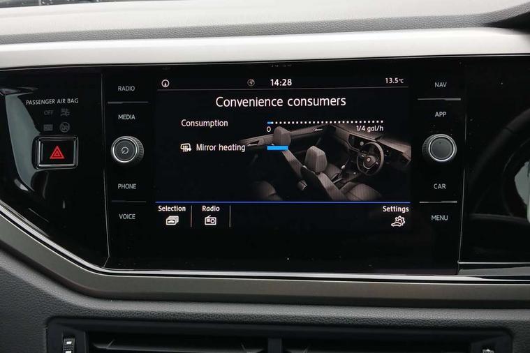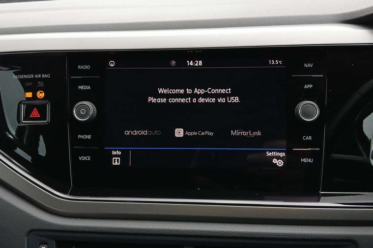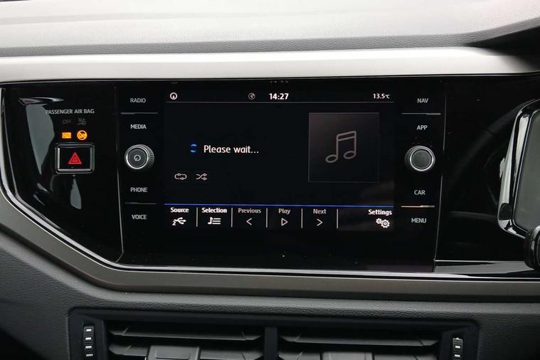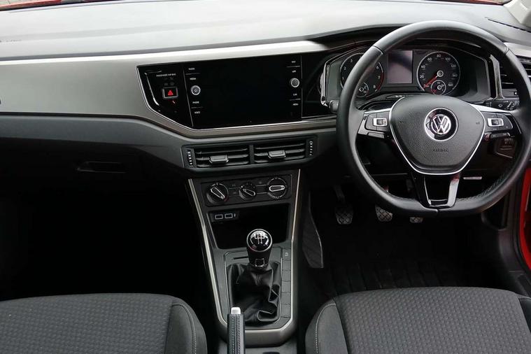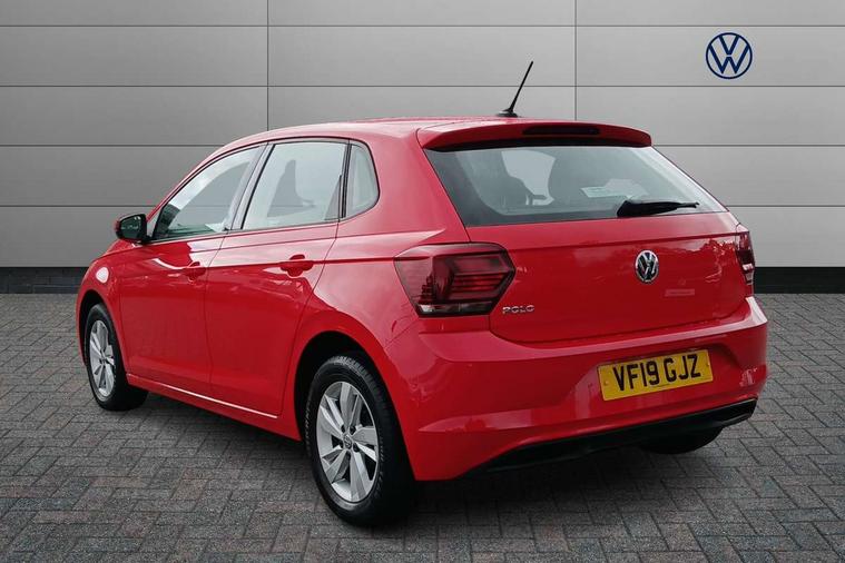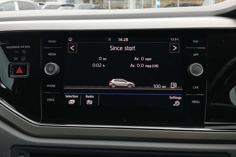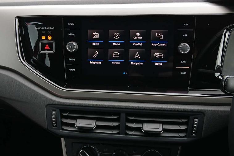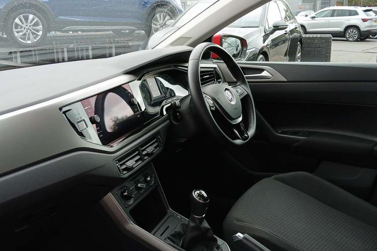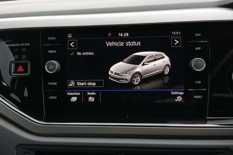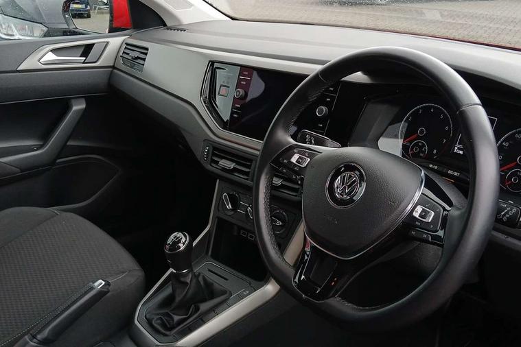 App-Connect, Bluetooth Telephone preparation, Discover navigation + European map data, Driver alert system, Multifunction colour display, PAS - speed related, Service interval indicator, Start/stop system, Trip computer, Warning buzzer and light for front seatbelts unfastened, Battery regeneration during braking, 6 speakers, Composition media system with radio, glovebox mounted CD, colour touch screen, SD card, aux-in, USB, multimedia interface, DAB Digital radio, Black grille with chrome surround, Black radiator grille with chrome insert, Body colour bumpers, Body colour door handles, Body colour rear spoiler, Body coloured side sills, Electric front windows, Front wash/wipe with interval delay, Fully galvanised body, Heat insulating tinted glass, Heated rear window with auto timer, High level 3rd brake light, LED daytime running lights, LED rear number plate lights, Rear electric windows, Rear windscreen washer and wiper with interval delay, 12V power socket in centre console, 2 bag hooks in luggage compartment, 2 cupholders, 3 rear head restraints, 3 spoke steering wheel, 4 grab handles, 60/40 split folding rear seat, Centre console storage, Chrome interior door handles, Chrome plated light switch, Driver/front passenger seat height adjustment + underseat drawers, Driver/passenger sunvisors with illuminated vanity mirrors, Dust/pollen filter, Front door pockets, Front seat backrest storage nets, Front/rear reading lights, Gear lever gaiter in high glass black trim surround, Glovebox, Handbrake grip button in chrome effect, Height/reach adjustable steering column, Instrument lighting, white adjustable panel illumination, Interior light with delay, Isofix Preparation 2 Rear child seats, Jack and tool kit, Luggage compartment cover, removable, Luggage compartment lighting, Multifunction leather steering wheel with leather gear knob/handbrake grip, Storage compartment in front doors, Storage compartment in rear doors, Storage compartment under front seats, Sunglasses holder, Variable boot floor, Variable Luggage compartment, Light and sight pack - Polo, 3 point height adj front seatbelts + pretensioners, 3x3 point rear seatbelts, ABS, Automatic post collision braking, Driver/front passenger airbag, Driver/Passenger whiplash optimised head restraints, ESP with EDL + ASR, Front and rear passengers curtain airbag system including front side airbags, Front disc brakes and rear drum brakes, Front passenger airbag deactivation, Hill hold control, Hydraulic Brake Assist (HBA), Two tone horn, Tyre pressure monitoring system, Alarm with remote central locking and interior protection, Electronic engine immobiliser, Air vents in High gloss black, Black high gloss trim, Full size spare wheel,