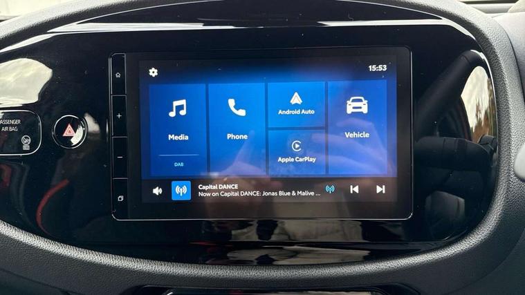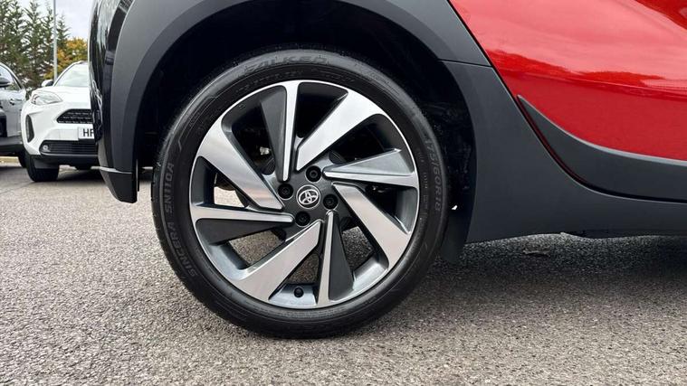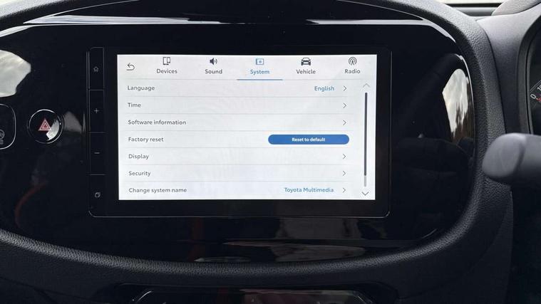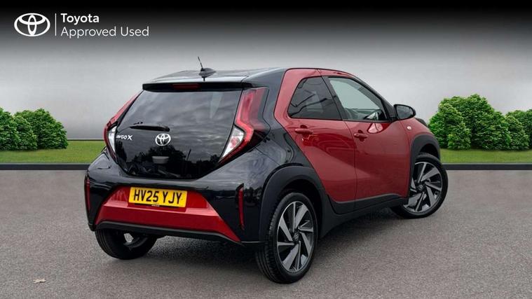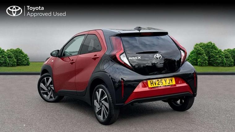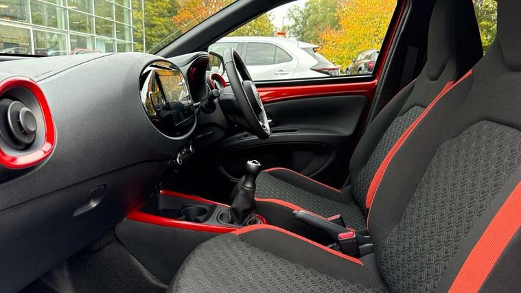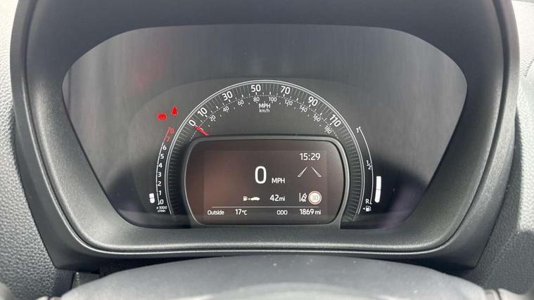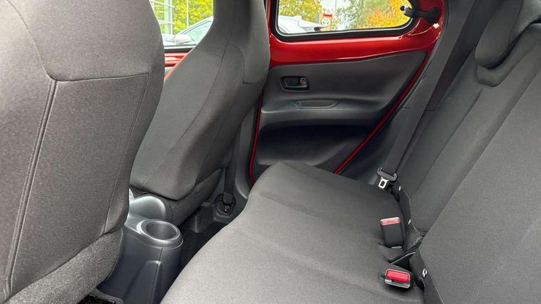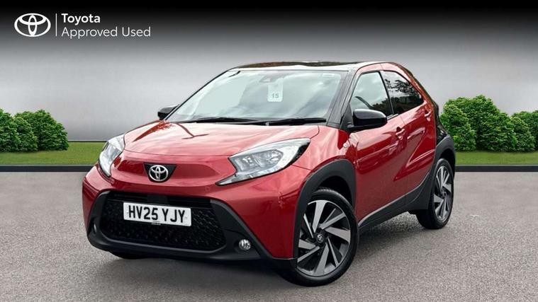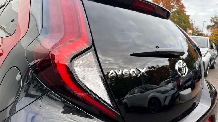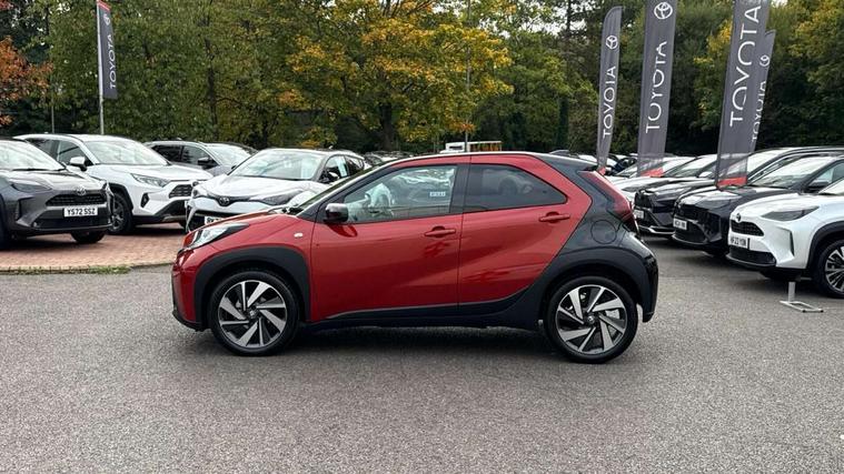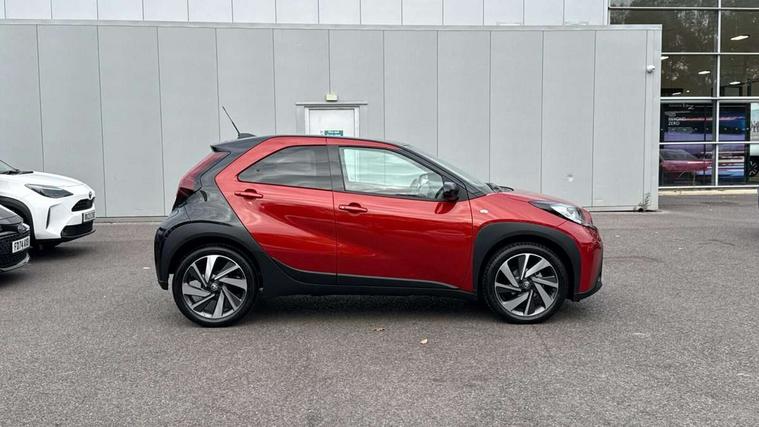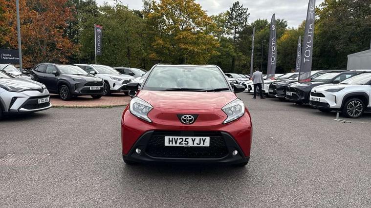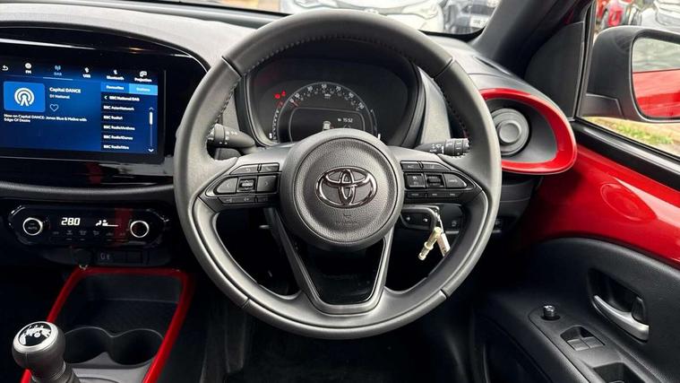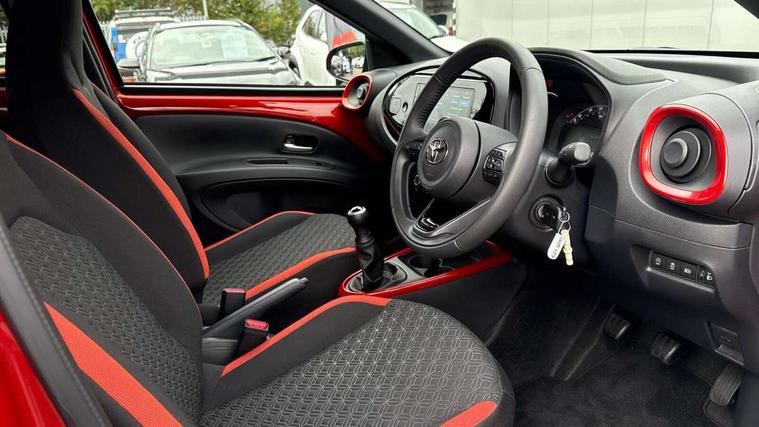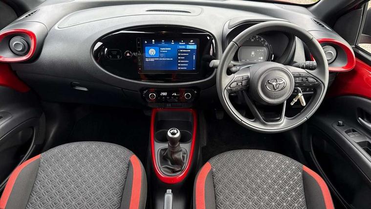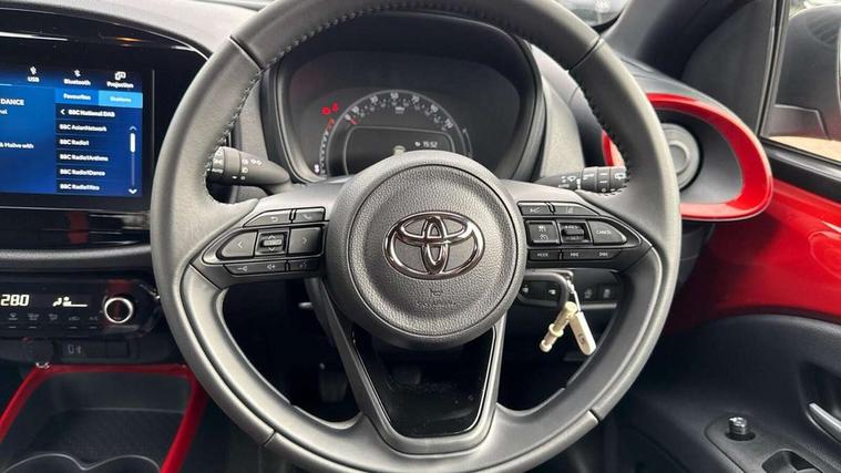 4.2" TFT colour screen, Adjustable speed limiter, Analogue speedometer, Bluetooth connectivity, Digital tachograph, Driver attention alert system, eCall emergency call system, Electric power steering, Intersection turn assist, Key reminder warning, Noise reduction kit, Pre collision system with emergency steering assist, Reversing camera with static guide lines, Smart phone integration with Apple car play/Android Auto, Speed limit display, Start and stop, Vehicle Stability Control (VSC), 4 speakers, 9" HD multimedia display touch screen with Toyota smart connect, DAB digital audio broadcast, USB connector, Auto headlights, Auto wipers, Automatic headlights cut-off, Bicycle towing hook, Black contrast roof, Black side protection mouldings, Black wheel arch mouldings, Body colour door handles, Body coloured front bumper, Boot door scuff plate, Eclipse black rear bumper, Electric heated door mirrors, Follow me home headlights, Front fog lights, Front power windows, Gloss black door mirrors, Gloss black upper front grille, Headlight cut-off reminder, LED daytime running lights, LED front light guide, LED High mounted stop lamp, Manual day/night rear view mirror, Manual headlight levelling, Pagoda roof, Power adjustable door mirrors, Power back door, Privacy glass, Projector halogen headlights, Rain sensor, Rear combination lights LED bulb type, Rear side wing doors, Rear windscreen defogger, Rear windscreen wiper, Short antenna, Variable intermittent windscreen wipers, 12v power outlet - front, 2 seat bench in 2nd row, 3 spoke leather steering wheel, 50/50 split folding rear seat, Adhesive roof headlining, Adjustable speed limiter switch on steering wheel, Audio and telephone switches on steering wheel, Auto air conditioning, Black insert on steering wheel, Black roof lining, Boot light, Centre room light, Chrome interior door handles, Chrome surround on air conditioning buttons, Clean air filter, Console box storage in body color, Fabric upholstery, Floor mats, Front and rear cup holders, Front head rest deco art, Front head restraints, Height adjustable driver seat, Intelligent adaptive cruise control switch on steering wheel, ISOFIX child restraint system on rear seats, Lane departure alert switch on steering wheel, Leather gearshift knob, Manual tilt steering wheel, Manually reclining and sliding driver seat, Manually reclining and sliding front passenger seat, Multimedia switches on steering wheel, Pollen filter, Rear door pockets, Rear head restraints, Satin silver insert on gear shift knob, Single compartment glovebox with lights, Single front passenger seat, Soft tonneau cover, Sun visors with mirror on driver and passenger side, Voice recognition switch on steering wheel, Toyota safety sense pack - Aygo X, Anti lock braking system + Electronic brake force distribution, Child safety door lock, Emergency brake light signal (EBS), Hill start assist control (HAC), Passenger airbag on/off switch, Seat belt reminder for front and rear seats, Supplement restraints system (SRS) - 6 airbags, Traction control, Tyre pressure warning system, Immobiliser, Remote power door locks, Black wheel centre caps, Tyre repair kit,