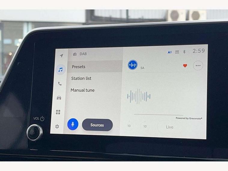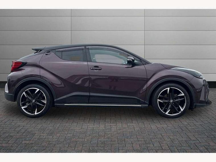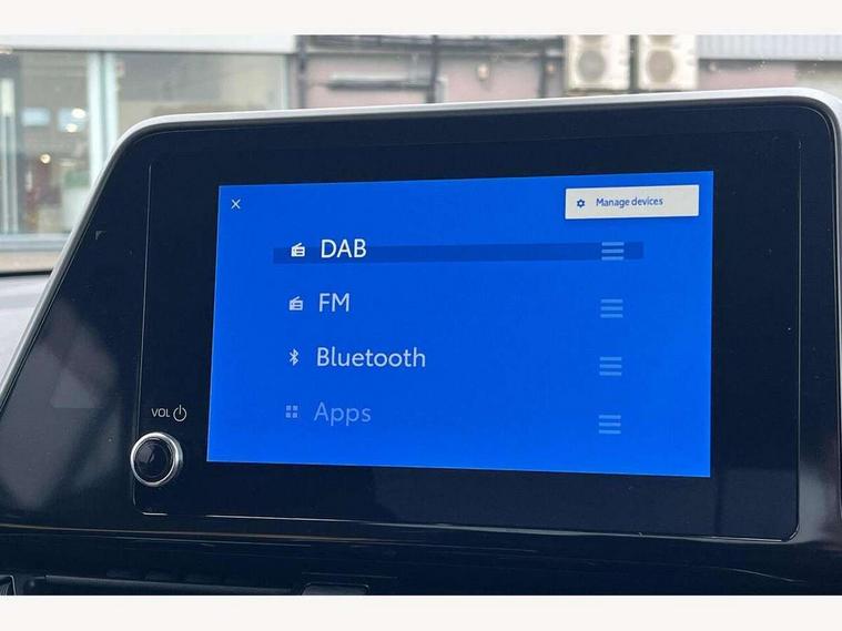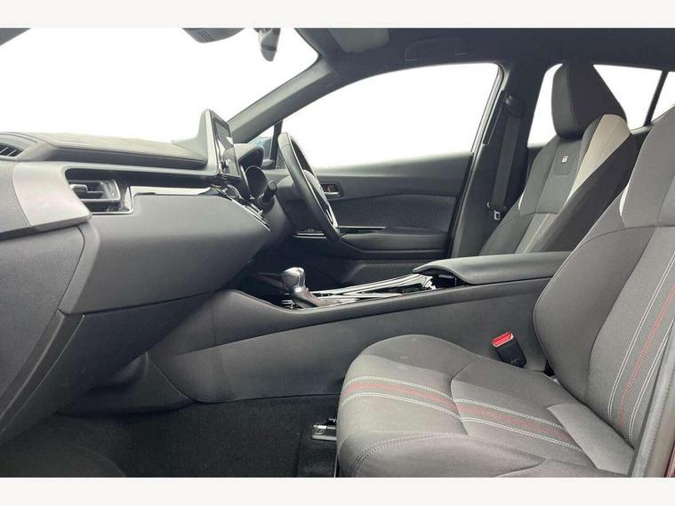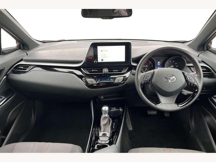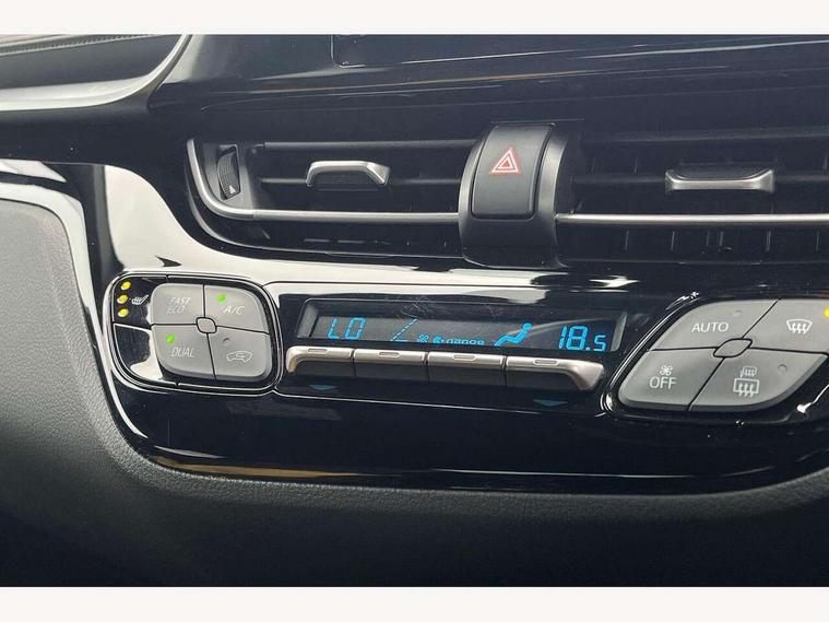 4.2" coloured TFT screen for multi-information display, Adaptive cruise control, Bluetooth connectivity, E-call, Electric power steering, Hybrid system indicator, Lane departure alert with steering control, Lane trace assist, Push button tailgate release, Remote boot door release in cabin, Remote boot door release in key, Reversing camera, Road sign assist - RSA, Simple Intelligent parking assist, Smart voice assist, Touch 2 Go navigation system, Trip computer, Voice recognition, Wireless smartphone integration, Vehicle Stability Control (VSC), 6 speakers, AM/FM radio, DAB Radio (Digital Audio Broadcasting), Toyota touch 2 multimedia system with 8" display, USB connector, Wi-fi connectivity, Adaptive front light system, Adaptive LED Headlights, Anti-jam protection on power windows, Auto high beam, Auto up and down function on all power windows, Automatic headlight levelling, Automatic headlights, Automatic headlights cut-off, Black and body coloured rear bumper, Black upper front grille, Body colour door handles, Body colour door mirrors, Body coloured front bumper, Boot door release with push button, Chrome front lower bumper, Electric heated door mirrors, Follow me home headlights, Front and rear power windows, Front spoiler lip in black, Headlight cut off reminder, Honeycomb lower front grille, LED daytime running lights, LED fog lights, LED front light guide, LED High mounted stop light, LED rear brake lights, LED rear combination lights, Noise reduction layer on front windows and windscreen, Power adjustable door mirrors, Privacy glass, Rain sensor, Rear sequential indicators, Rear side wing doors, Rear spoiler, Rear tailgate, Rear window defogger, Rear window wiper, Shark fin antenna, UV-filter on driver and passenger windows, UV-filter on rear windows, 12v power outlet - front, 3 rear headrests, 3 seat bench in 2nd row, 3 spoke perforated leather steering wheel, 60/40 split folding rear seat, Adjustable rear headrests, Adjustable speed limiter switch on steering wheel, Assist grips front and centre pillar, Audio and telephone switches on steering wheel, Black front door assist grips, Blue ambient lighting on front cup holders, Blue ambient lighting on front doors, Boot light, Chrome interior door handles, Cloth upholstery, Driver and front passenger personal light, Driver and front passenger Whiplash Injury Lessening seats, Driver and passenger seatback pockets, Dual zone automatic air conditioning, Floor mats, Front cupholders, Front head restraints, Front sports seats, Glovebox with internal light, Hard tonneau cover, Heated driver and front passenger seats, Hooks for luggage holding net, Humidifying Nanoe air purifier, Illuminated entry system, Isofix attachments on outer rear seats, Leather gearshift, Light on driver sun visor, Light on passenger sun visor, Manual telescopic steering wheel, Manual tilt steering wheel, Manually height adjustable driver seat, Manually height adjustable front passenger seat, Manually reclining driver seat, Manually reclining front passenger seat, Manually sliding driver seat, Manually sliding front passenger seat, Microphone on front personal light, Mirror on driver sun visor, Mirror on passenger sun visor, Multimedia switches on steering wheel, Pollen filter, Power adjustable lumbar support on driver seat, Shopping bag hooks, Single front passenger seat, Slow opening on lower glovebox, Voice recognition switch on steering wheel, Tech with parking sensor pack - C-HR, 16 Disk front wheel brake, 3x3 point rear seatbelts, ABS+EBD+Brake assist, Electronic parking brake, Front and rear seatbelt reminder, Front passenger airbag on/off switch, Hill start assist control (HAC), Pre collision system with pedestrian detection, Pre-tensioners and force limiters, Rear door child safety locks, SRS Airbags - Driver + Front passenger, front side, front and rear curtain and driver's knee airbags, Toyota safety sense, Tyre pressure monitoring system, Tyre pressure warning system, Acoustic vehicle alert system (AVAS), Glass-breaking alarm sensors, Immobiliser, Intrusion alarm, Intrusion sensor, Motion sensor alarm, Power door locks, Power passenger window lock, Remote central locking, Black lower dashboard, Black upper dashboard, Piano black console, Silver deco line on upper dashboard, 19" Black machined alloy wheels, Tyre repair kit,