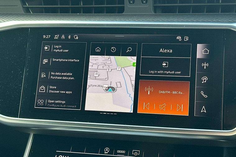Audi connect safety and service (e-call), Audi connect with Amazon Alexa Integration, Audi drive select, Audi parking system plus - acoustic and visual park assist system for front and rear, Audi virtual cockpit, Automatic start/stop system with coasting functionality, Bluetooth interface, Camera based traffic sign recognition, Electric boot lid release, Lane departure warning system, MMI navigation plus with 10.1" and 8.6" touch screens, Progressive steering, Rear view camera, Service interval indicator, Smartphone interface includes wireless Apple carplay/Android Auto, Voice control system, 3 pin 10 amp domestic charging cable, 52 litre fuel tank, 7.4 kW onboard charger, Compact charging system, Hybrid propulsion system, Industrial connector CEE 32A, 230V, long and straight for the e-tron charging system, Mode 3 charging cable for public charging (AC), Sports suspension, Type 2 socket for AC charging, Audi front music interface, Audi sound system, Auxiliary input socket, DAB Digital radio, USB connection, Audi beam, Electric front/rear windows, Electrically adjustable heated and folding + automatically dimming exterior mirrors with memory function, Frameless auto dimming interior rear view mirror, Front intermittent wipers, Heat insulating darkened glass in side and rear windows, Heat insulating glass in windshield, LED rear lights with dynamic indicators, LED signature front daytime running light, LED third brake light, Matrix LED headlights, Matt black rear diffuser with diffuser strip and tailpipes in chrome, Matt black side air intake grille with inlay in matt aluminium, Omission of output/technology badging, Privacy glass, Radiator grille in anthracite black matt, single frame in chrome and horizontal struts in matt aluminium silver, Rain and light sensors, Rear boot, Rear side wing doors, 4 zone deluxe automatic climate control, 40/20/40 split folding 3 rear seat bench in 3 parts with rear centre armrest, Audi phone box light, Black cloth headlining, Electrically adjustable front seats including seat height, fore/aft position, backrest angle and 4-way lumbar with memory for driver's seat, Front and rear floor mats, Front centre armrest, Front head restraints, Heated front seats, Height/reach adjust steering wheel, Illuminated door sill trims with S logo, Illuminated sun visors with vanity mirrors, Leather gear knob, Rear headrests, Single front passenger seat, Stainless steel pedals and foot rest, Tool kit and car jack, Black styling package plus - A6 Black edition, LED Interior Ambient Lighting Pack - A6, Non smoking pack - A6, S line exterior style pack - A6, 3 point seatbelts on all seats, Airbags - Front side, front and rear including head, Audi pre-sense front, EBD - Electronic brakeforce distribution, Electromechanical parking brake, Electronic Stability Control (ESC) including ABS, ASR and EDL, Extended pedestrian protection measures, ISOFIX child seat mounting for front passenger seat and ISOFIX child seat mounting with Top Tether for outer rear seats, Manual child proof rear door locks, Seatbelt monitoring, Tyre pressure warning light, Warning triangle and first aid kit, Anti theft alarm with tow away protection, Anti-theft wheel bolts and wheel loosening detection, Immobiliser, Keyless Go, Remote central locking, Carbon twill inlays, Tyre repair kit,