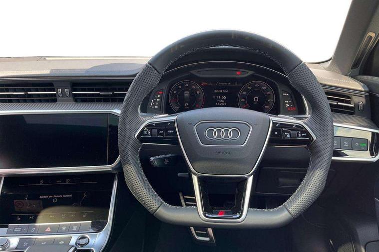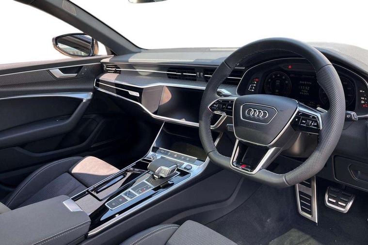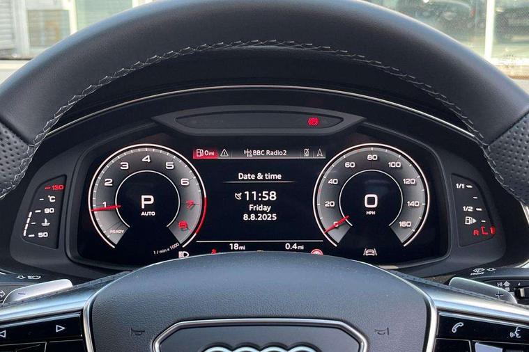 Audi connect safety and service (e-call), Audi connect with Amazon Alexa Integration, Audi drive select, Audi parking system plus - acoustic and visual park assist system for front and rear, Audi virtual cockpit, Automatic start/stop system with coasting functionality, Bluetooth interface, Camera based traffic sign recognition, Lane departure warning system, MMI navigation plus with 10.1" and 8.6" touch screens, Power operated tailgate, Progressive steering, Rear view camera, Service interval indicator, Smartphone interface includes wireless Apple carplay/Android Auto, Voice control system, Sports suspension, Audi front music interface, Audi sound system, Auxiliary input socket, DAB Digital radio, USB connection, Audi beam, Black roof rails, Body colour rear roof spoiler, Electric front/rear windows, Electrically adjustable heated and folding + automatically dimming exterior mirrors with memory function, Frameless auto dimming interior rear view mirror, Front intermittent wipers, Heat insulating darkened glass in side and rear windows, Heat insulating glass in windshield, LED rear lights with dynamic indicators, LED signature front daytime running light, LED third brake light, Matrix LED headlights, Matt black rear diffuser with diffuser strip and tailpipes in chrome, Matt black side air intake grille with inlay in matt aluminium, Omission of output/technology badging, Privacy glass, Radiator grille in anthracite black matt, single frame in chrome and horizontal struts in matt aluminium silver, Rain and light sensors, Rear side wing doors, Rear wiper, 2 zone deluxe electronic climate control, 40/20/40 split folding 3 rear seat bench in 3 parts with rear centre armrest, Audi phone box light, Black cloth headlining, Electrically adjustable front seats including seat height, fore/aft position, backrest angle and 4-way lumbar with memory for driver's seat, Front and rear floor mats, Front centre armrest, Front head restraints, Heated front seats, Height/reach adjust steering wheel, Illuminated door sill trims with S logo, Illuminated sun visors with vanity mirrors, Leather gear knob, Luggage compartment system, Rear headrests, Single front passenger seat, Stainless steel pedals and foot rest, Tool kit and car jack, Black styling package plus - A6 Black edition, LED Interior Ambient Lighting Pack - A6, Non smoking pack - A6, S line exterior style pack - A6, 3 point seatbelts on all seats, Airbags - Front side, front and rear including head, Audi pre-sense front, EBD - Electronic brakeforce distribution, Electromechanical parking brake, Electronic Stability Control (ESC) including ABS, ASR and EDL, Extended pedestrian protection measures, ISOFIX child seat mounting for front passenger seat and ISOFIX child seat mounting with Top Tether for outer rear seats, Manual child proof rear door locks, Seatbelt monitoring, Tyre pressure warning light, Warning triangle and first aid kit, Anti theft alarm with tow away protection, Anti-theft wheel bolts and wheel loosening detection, Immobiliser, Keyless Go, Remote central locking, Carbon twill inlays,