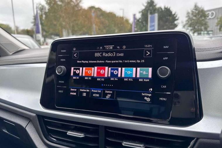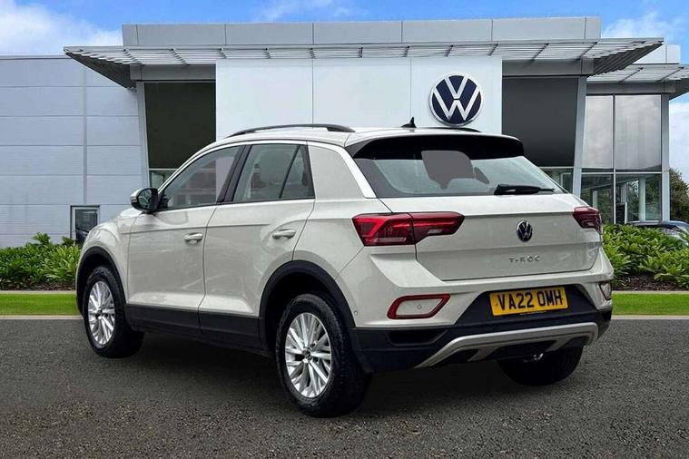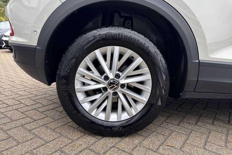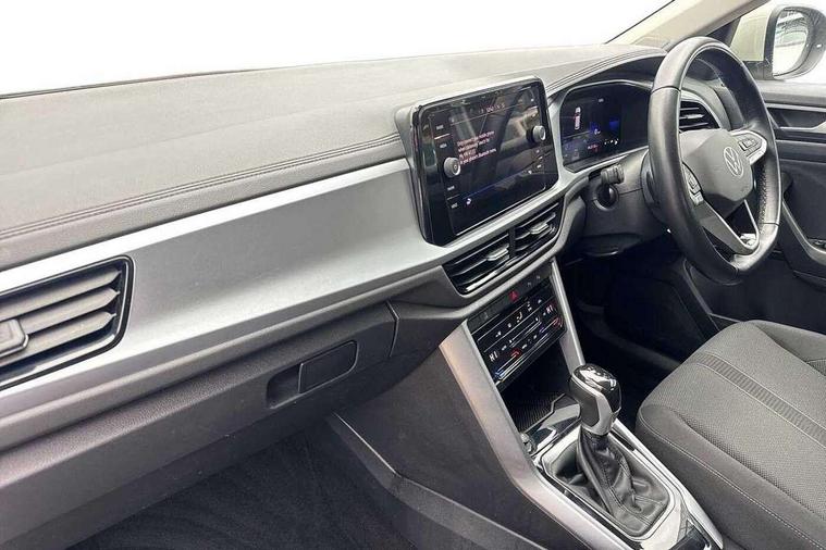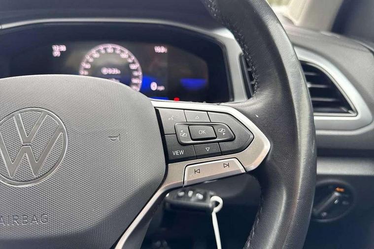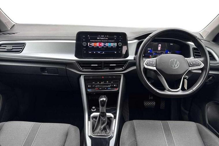 Bluetooth mobile phone interface, Driver alert system with fatigue detection, Driver tips and journey analysis, Emergency call service, Lane keeping system Lane Assist, Modified key software - reduce switch off time for key status change to Long no motion, Online services, Park assist including front and rear parking sensors, Power assisted speed sensitive steering, Service interval indicator, Tailgate/trunk lid release from outside, Think blue trainer driver tips and journey analysis, Warning sound and light for front seatbelts unfastened, Wireless app connect, Battery regeneration during braking, Front shock absorption, Rear shock absorption chassis with increased ride height, Start/stop function with battery regeneration, DAB Digital radio, Diversity antenna for FM reception, Front and rear 6 speakers, Music playback - MP3, WMA and AAC files, Premium USB cable in choice of either Apple or Android smartphone compatibility, SD card slot, Simultaneous pairing of 2 compatible mobile devices, Title and cover art display, We Connect and We Connect Plus functionality, 3rd brake light, Auto dimming interior rear view mirror, Automatic hazard lights activation under emergency braking, Automatic headlight control with LED separate daytime running lights with coming/leaving home function, Black roof rails, Body coloured bumpers and radiator grille with chrome trim and front fog lamps with chrome bezel, Body coloured exterior mirror housings and door handles, Extended roof spoiler, Exterior mirrors aspherical on driver side, convex on front passenger side, External USB type C socket and charging sockets, Front windscreen wiper with intermittent wipe and 4 position delay, Heated rear window, LED Headlights, LED rear combination lamps, LED rear number plate lights, LED tail lamp rear comination lamps, Power windows with comfort operation and circuit breaker, Rain sensor, Rear exhaust tailpipe, Rear fog light on one side and reversing lights on both sides, Rear side wing doors, Rear wash/wipe with intermittent wipe setting, Remote electrically foldable door mirrors, puddle lights and reverse activated passenger's door mirror, 12V power socket in centre console, 3 rear head restraints, 3 seat bench in 2nd row, 4 load lashing points in luggage compartment, Air care climatronic air conditoning system with active combination filter and 2-zone temperature control, Ambient lighting with mirror logo projection, Cloth upholstery, Door and side trim panel in cloth, Drawer under drivers seat, Driver/front passenger seat height adjustment, Front centre armrest, Front comfort sports seats, Front cupholders x 2, Front reading light, Instrument lighting, white adjustable panel illumination, Interior light delay, Isofix child seat preparation, Leather gearshift handle, Load-through provision with cup holder when folded down ('Unsplit rear seat bench, split folding backrest, with centre armrest), Luggage compartment lighting, Lumbar support for driver's and front passengers seat, Non-folding front passenger seat backrest, Single front passenger seat, Storage compartment in left and right luggage area, Storage compartment in rear doors, Storage compartments in driver and front passenger doors, Sunvisors with illuminated vanity mirrors, Variable boot floor, height adjustable and removable, Driver assistance pack without proactive passenger protection - T-Roc, 3 point height adj front seatbelts + pretensioners, 3 point seatbelts in outer rear with ECE label, ABS, Child locks on rear doors, Driver and front passenger airbag with front passenger airbag deactivation, Driver and front passenger safety-optimised head restraints, Drivers seatbelt reminder, Electronic parking brake, Electronic Stability Control (ESC) inc EDL (Electronic Differential Lock) and ASR (Traction Control), Front and rear passengers curtain airbag system including front side airbags, Front assist with city emergency braking and pedestrian monitoring, Front disc brakes, Front seat side impact airbags, Hill start assist, Predictive pedestrian protection, Rear disc brakes, Single tone horn, Tyre pressure loss indicator, Volkswagen roadside assistance, Alarm with interior protection, Anti-theft alarm system with interior monitoring, backup horn, and towing protection, Remote central locking with SAFELOCK, radio remote control with 2 remote control folding keys, Pewter matt decorative inserts for intrument panel, centre console and door panels at the front, Trims for alloy wheels,