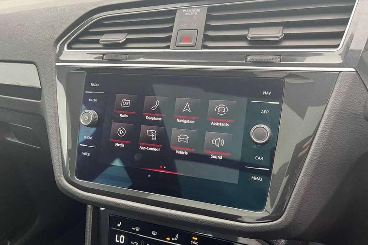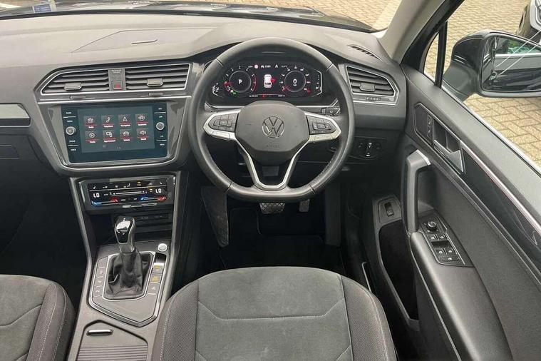 Adaptive cruise control ACC stop and go including speed limiter, App-Connect incl. App-Connect Wireless for Apple CarPlay and Android Auto, Bluetooth phone integration system, Digital Cockpit Pro - Active info display, Distance control assist, Driver alert system, Driver profile selection, Dynamic road sign display, eCall emergency call system, Electromechanical speed sensitive power steering, Engine start/stop button, Lane keeping system Lane Assist, Lights on warning, Motorised electric tailgate operated via key fob, drivers door and foot movement under tailgate, Multifunction front facing camera, Outside temperature display, Premium multifunction display with multi colour display, Remote control boot opening, Rev counter, Revision / skills operating concept travel assistant, Service interval indicator, Speed limit display, Start/stop system with regenerative braking, Tailgate/trunk lid unlocking from outside, Trip computer, Warning sound and light for doors and tailgate open, Battery regeneration during braking, XDS electronic differential lock for improved traction and handling, 2 USB-C ports in the front, 1 USB-C charging socket on the center console in the rear, Diversity antenna for FM reception, Radio, SD card slot, Simultaneous pairing of 2 compatible mobile devices, SMS functionality - read, compose and send SMS messages using touch-screen display, Title and cover art display, Aluminium door sill protectors, Auto dimming interior rear view mirror, Automatic headlight control system, Body colour door handles, Body coloured bumpers, Body coloured door mirrors with integrated indicators, Coming/leaving home lighting function, Dynamic headlight range control, Front and rear electric windows, Heated rear window, High level 3rd brake light, IQ light with advanced high beam control and dynamic light assist for LED matrix headlamps + Dark red rear combination lamp in LED technology, Laminated safety glass windshield, heat and sound insulating, LED rear number plate lights, LED separate daytime running light, Poor weather light and cornering light, Privacy glass for rear side windows and rear window, Rain sensor windscreen wipers, Rear exhaust tailpipe, Rear fog lamp, Rear windscreen washer and wiper with interval delay, Side and rear windows in heat insulating glass, Third brake light, Tilting and sliding panoramic sunroof with rear panoramic sunroof, Trailer Stability Programme, Windscreen wipers/ intermittent wipe + 4 position delay, 12V outlet in center console rear and in luggage compartment, 2 cup holders in front, 2 LED front reading lights, 2 LED rear reading lights, 3 rear headrests, 4 load lashing points, 40:20:40 split folding rear seats, Air Care Climatronic 3 zone automatic climate control with enhanced air filter and controls in the rear, Backrest release for left front seat, Climate control unit rear with touch function, Door and side trim panel in foam film and woven fabric, Front + rear carpet mats, Front centre armrest, Front footwell illumination, Front seats head restraints (x-adjustment), Height adjustable front seats, Height/reach adjust steering wheel, Instrument lighting white adjustable panel illumination, Interior light with delay, Isofix Preparation 2 Rear child seats, Leather gear knob, Lockable cooled glovebox, Luggage compartment lighting, Luggage net, Rear bench seat asymetrically split folding, longitudinally movable and folding with load-through hatch and center armrest, Remote unlocking for rear seat backrest, Removable luggage cover, Safety optimised front head restraints, Sliding/reclining rear seats, Standard rear seat release, Storage compartment in driver's door, Storage compartment in passenger's door, Storage compartment in rear doors, Storage compartments in luggage area left and right, Storage tray on dashboard, Sun visors with illuminated vanity mirrors, Variable boot floor, height adjustable and removable, Ambience pack - Tiguan, Chrome pack - Tiguan, Easy open and close pack with safelock - Tiguan, 3 point seat belt for centre rear seats, 3 point seat belts with seat belt pretensioners for the outer rear seats, Active bonnet, Curtain airbags for front and rear passengers, Driver/Front Passenger airbags, Drivers knee airbag, Electronic parking brake with auto hold, Electronic Stability Control with driver steering recommendation, ABS, ASR, EDL, EDTC and trailer stabilization, Front assist with autonomous emergency braking (for Adaptive Cruise Control ACC up to 130 mph), Front disc brakes, Front passenger airbag deactivation, Front side airbags, Height adjustable front 3 point seatbelts + pretensioners, Hill hold control, Pedestrian monitoring system, Power assisted brakes, Proactive passenger protection system in combination with front assist, Rear disc brakes, Rigid safety cell with front and rear crumple zones, Two tone horn, Warning sound and light for front seat belts if unfastened, Anti theft alarm system with interior monitoring, backup horn and towing protection, Anti theft wheel bolts, Central locking system with safelock radio remote control and 2 remote control folding keys, Electronic engine immobiliser, Tool kit,