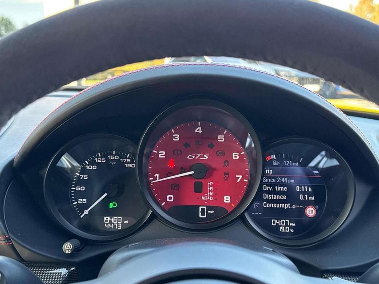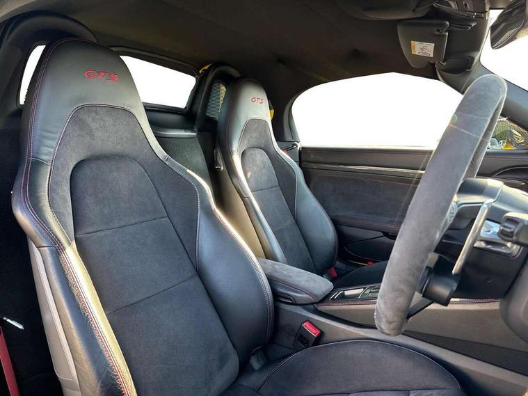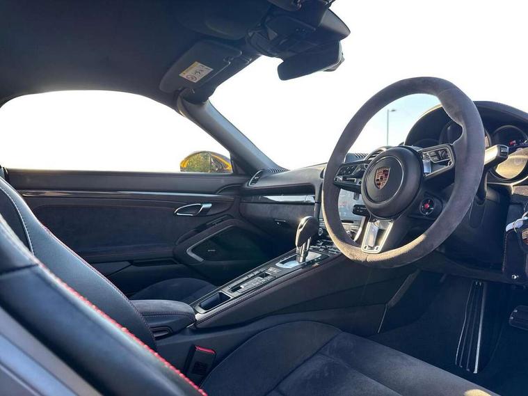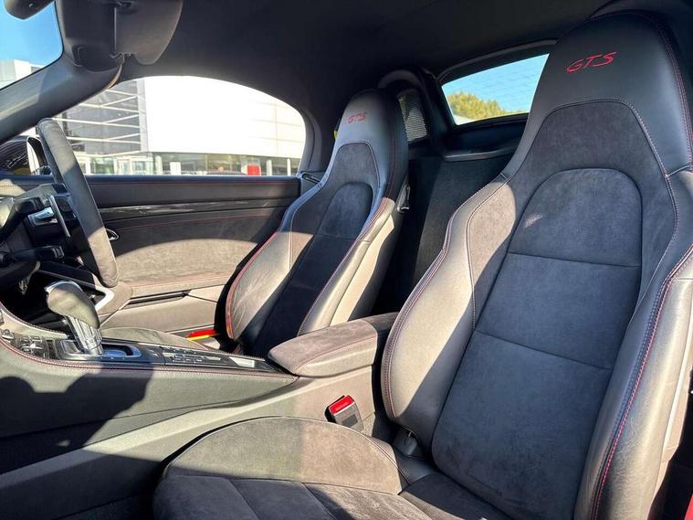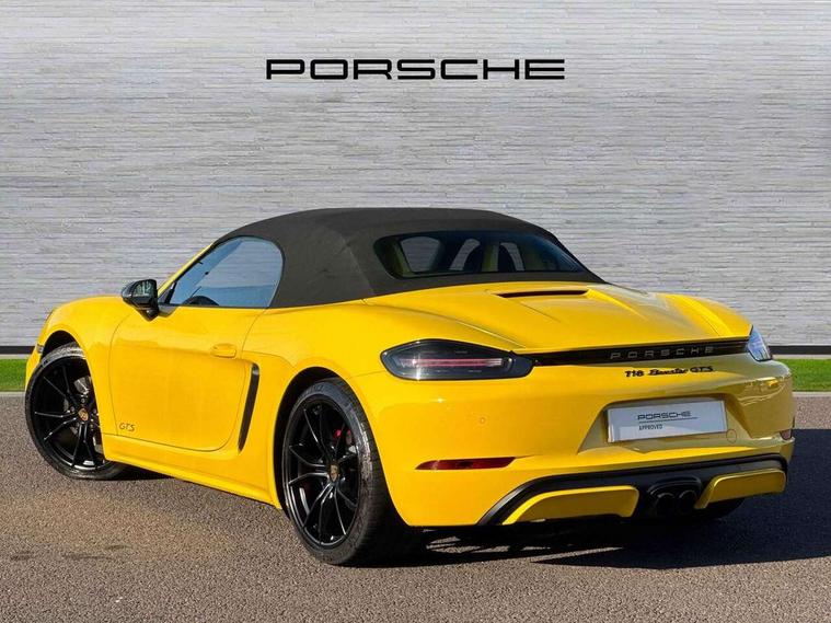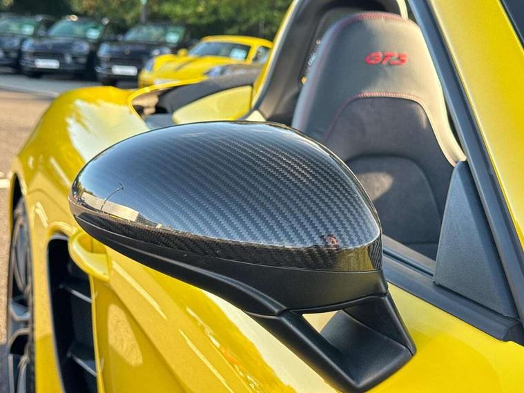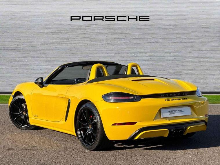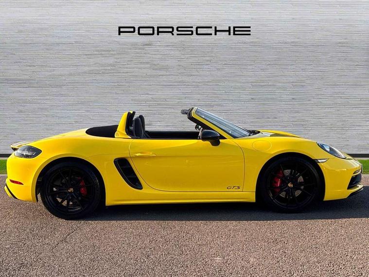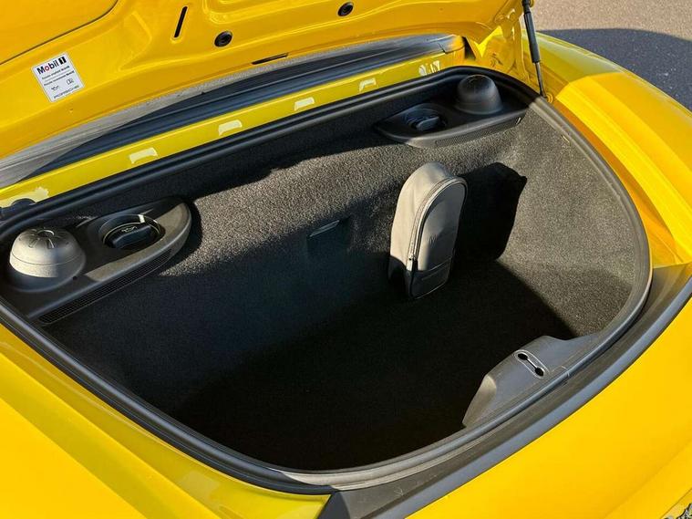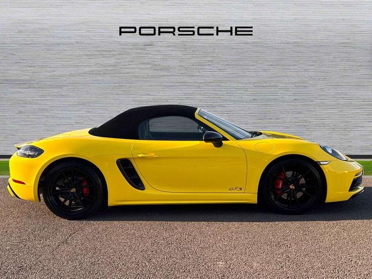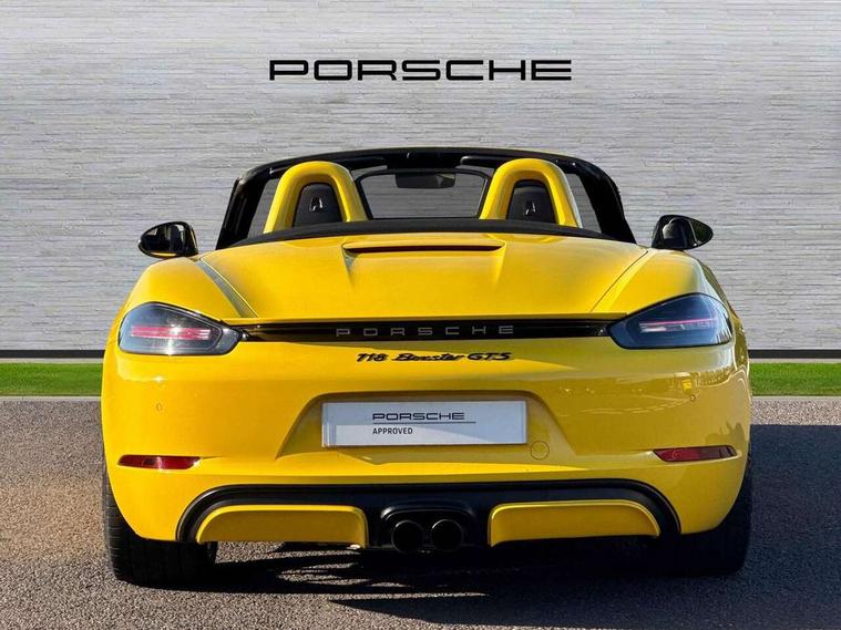 Black rev counter, Multi function display, On board computer, PCM navigation module, PCM voice control, Porsche communications management, Porsche Connect Plus, Sports button, Telephone module for PCM, 64 litre fuel tank, Porsche Active Suspension Management (PASM), Porsche stability management (PSM), Porsche TORQUE Vectoring (PTV), Connect Plus with Apple CarPlay, wireless internet access, Carfinder, Remote Vehicle Status and Remote Services, DAB Digital radio, 2 speed front wipers + intermittent wipe, Automatic headlights, Automatically extending rear boot spoiler, Black model designation on doors, Body colour bumpers, Coming home function, Door entry guards with logo, Electric heated rear glass window, Electric windows one touch open/close, Electrically operated hood with heated rear window, Green tinted glass, LED daytime running lights, LED rear lights, Painted Porsche logo and model designation, Painted rear apron, Sports exhaust system including sports tailpipes in black, Top tinted windscreen, Water repellent side windows, Wind deflector, Windscreen with grey top tint, 12V sockets in front centre console and passenger footwell, 2 cupholders, Active carbon filter, Air recirculation system, Clothes hooks on front seat backrests, Defrost switch, Door panel armrests and centre console main storage compartment lid in smooth finish leather, Electrically adjustable backrest, Footwell illumination, Front and rear luggage compartments, Front centre console storage box, Glovebox illumination, GT alcantara sports steering wheel and PDK gear selector, Height/reach adjust steering wheel, Ignition Lock illumination, Illumination of luggage compartment, Interior orientation lighting, Interior roof lining, LED reading lights, Lockable glovebox, Steering wheel, gear lever and door pulls in smooth finish leather, Storage compartments in doors, Sport Chrono Pack - Boxster (PDK), 3 point automatic seatbelts, ABS+ABD, ASR, Driver and passenger airbags, Electronic parking brake, Front seatbelt pretensioners + load limiters, Head airbags, Passenger airbag deactivate switch, POSIP, Red painted brake calipers, Side (thorax) airbags, Tyre pressure monitoring system, Alarm, Porsche vehicle tracking system (VTS), Remote control central locking, Transponder engine immobiliser, Tyre repair kit, including sealant foam,