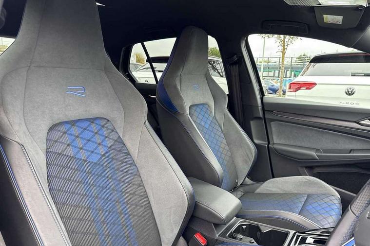 Activated carbon canister, Adaptive cruise control (ACC), Advanced driver attention and drowsiness monitor, Dynamic road sign display, E-Sim card for online connectivity, eCall emergency call system, Electronic maximum speed limit increased to 270 km/h, includes driving Modes 'drift' and 'special', larger roof spolier and GPS laptimer + G-Meter, Multi-color Digital cockpit pro, selection of different info profile possible, Multifunction front facing camera for distance control, Navigation system, Oncoming vehicle braking when turning including swerve support, Preparation for light assist system, Progressive steering, Side assist blind spot lane change system, rear traffic alert and exit warning system, Speed limiter, Speedo, rev counter, electronic odometer, trip, service interval display, exterior temperature and fuel gauge, Traffic jam assist, Voice enhancer and voice control, Warning signal and warning light for front and rear seatbelts not fastened, We connect plus preparation, We connect preparation, Wireless app connect, All wheel drive - 4Motion, Petrol Particulate Filter, Sports suspension, Start-stop system with battery regeneration (recuperation - energy recovery during braking), XDS electronic differential lock for improved traction and handling, 2 USB C ports in front, 2 USB charging sockets on the centre console in the rear charging capacity upto 45W, Comfort telephony + wireless charging, without wireless aerial connection, Digital radio reception (DAB), Diversity antenna for FM reception, Gaming platform via car app, Infotainment system with 12.9" display, Mobile phone interface with inductive charging feature, 3rd brake light, Auto dimming rear view mirror, Auto headlights, Automatic headlamp activation with Coming home and Leaving home feature, Black badge on B-pillar, Black mirror caps, Black strips on radiator grille and headlights, Body colour door handles, Darkened headlights, Darkened R Logos and VW logos in front, rear and on fender, Exhaust system with black tailpipe, Exterior ambient lighting with illuminated lighting animation and wake up/goodbye scenario, Exterior mirrors convex on the left and aspherical on the right, Front and rear electric windows, Front fog lamps and cornering light, Heat insulating windshield made of laminated glass, LED daytime running lights, LED matrix headlights with ambient light V2, advanced high beam, dynamic range contol with cornering, LED rear lamp with indicator, poor weather, R name plate, Rain sensor, Rear fog light on one side and reversing lights on both sides, Rear side wing doors, Rear tinted glass 65% light absorbing from B pillar backwards, Rear windscreen washer and wiper with interval delay, Remote electrically foldable door mirrors, puddle lights and reverse activated passenger's door mirror, Welcome light with surround lighting, 12V socket in front centre console, 12V socket in luggage compartment, 3 rear head restraints, 3 seat bench in 2nd row, 30 colour ambient lighting, illuminated center console storage compartment in front, Air care climatronic 3 Zone automatic climate control with rear air conditioning control panel, Aluminium gearshift handle, Brushed stainless steel pedals, Carpet mats, front and rear, Front centre armrest, Integrated front head restraints, ISOFIX anchors for child seats on outer rear bench seats and on front passanger seat compatible for i-Size, Luggage compartment lighting, Rear cupholder and loadthough, Single front passenger seat, Soul black instrument panel, Split folding backrest with centre armrest and unsplit rear seat bench, Storm grey roof lining, Sun visors with illuminated vanity mirrors, Driver assistance pack - Golf DSG Estate/Hatchback, R styling pack - Golf, Technology park and comfort pro package - Golf Hatchback, 3 point height adj front seatbelts + pretensioners, 3 rear three point seatbelts, ABS, Autonomous emergency braking front assist with pedestrian and cyclist monitoring, Child locks on rear doors, Disc brakes in rear incl. brake calipers in black with darkened R-logo, Driver and front passenger airbag with front passenger airbag deactivation, Electronic parking brake with auto hold, ESC (Electronic Stability Control), Extended pedestrian protection measures, Hill start assist, Two tone horn, Tyre pressure loss indicator, Volkswagen roadside assistance, Anti theft wheel bolts, Preparation for alcohol interlock, Wheel hub cover with darkened R-logo,