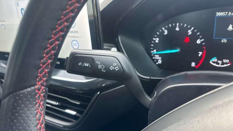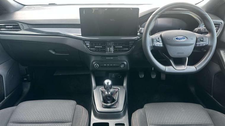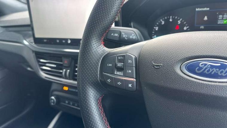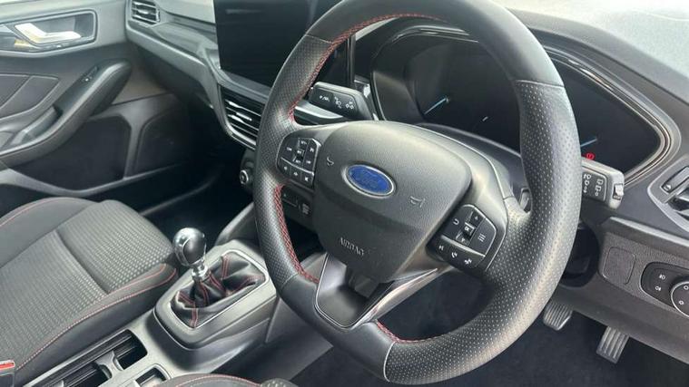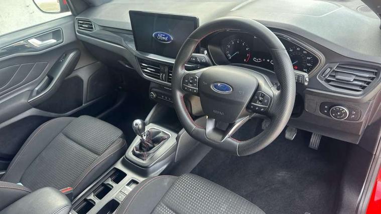 4.2" Colour TFT Ice blue illumination analogue cluster with trip computer, Bluetooth system, Digital clock, Easy fuel capless refuelling system, Eco mode, Ford SYNC 4 Navigation with 13.2'' touchscreen, DAB radio, Emergency Assistance, Apple Carplay & Android Auto, 6 speakers & FordPass Connect, Lane keeping system - lane keeping alert and lane keeping aid, PAS, Rev counter, Selectable drive mode, Service interval indicator, Sports tuned suspension, 2 USB ports, Auto headlamps (on/off), Body coloured door handles, Electrically operated front and rear windows with one touch opening and closing, Electrically operated heated power fold door mirrors with puddle lamp with side indicators, Front variable intermittent wipers with electric wash, Full fixed LED headlamps, Heated rear window, LED daytime running lamp, LED rear lamps, LED third brake light, Polished twin tailpipe, Privacy glass, Quickclear heated windscreen, Rain sensor, Rear side wing doors, Tailgate wash/wipe, Unique ST-Line grille, full bodystyling kit, and large body coloured rear spoiler, 3 rear headrests, 3 seat bench in 2nd row, Cloth upholstery, Dual zone electronic air temperature control, Height adjustable front headrests, Isofix child seat preparation, Reach + rake adjustable steering column, Single front passenger seat, 3x3 point rear seatbelts, ABS+Electronic Brake force Distribution, Auto hold function, Driver airbag, EDL traction control, Electronic parking brake, Electronic stability control, Front and rear seatbelt reminder, Front inertia reel height adjustable seatbelts with pre-tensioners, Front passenger airbag, Front side airbags, Passenger airbag deactivate switch, Post collision braking, Pre collision assist with autonomous emergency braking and pedestrian/cyclist detection, Remote/power child rear door locks, Side curtain airbags, Three rear inertia reel lap/diagonal seatbelts, Tyre pressure monitoring system, Keyless entry and keyless start, MyKey system, Remote central locking & engine immobiliser, Thatcham alarm with power door dead locks, 17" 5 spoke Rock mettalic finish alloy wheels with mini spare wheel,