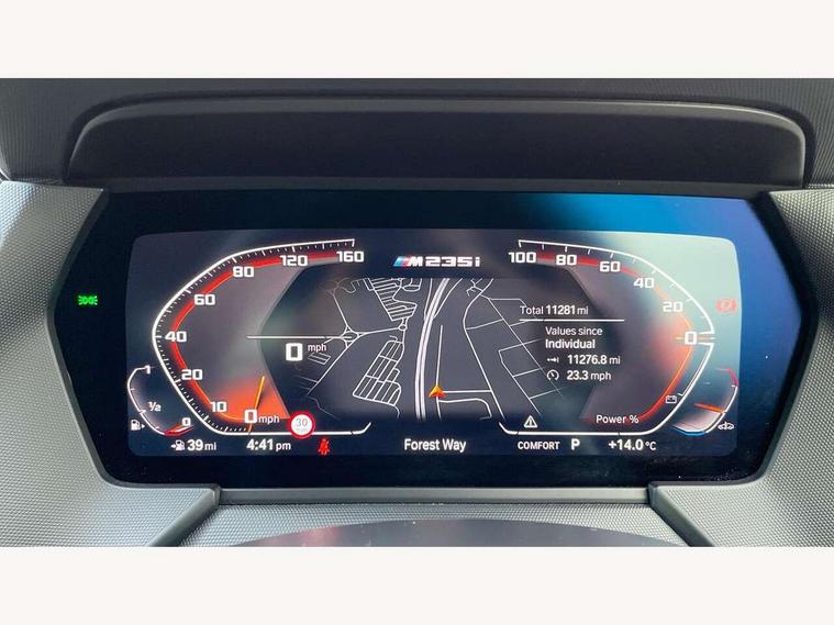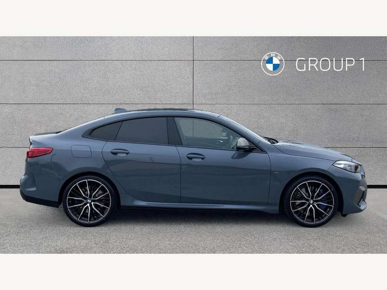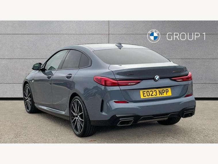 Active guard plus, Attentiveness assist, Auto start-stop, BMW ConnectedDrive online services, BMW Intelligent Personal Assistant, BMW Live Cockpit Professional with 10.25" high resolution instrument and control display, BMW Online services, BMW operating system with 7.0 mid interface, BMW Teleservices, Check Control warning system for monitoring of lights and door/luggage compartment open warning, Cruise control with braking function, Electro hydraulically controlled multi plate clutch in rear axle, Energy efficient operating strategy, iDrive controller with 7 short cut favourite buttons on centre console, Integrated navigation data with map data via USB +features such as 3D landmarks and micro city models, Integrated owners handbook, Intelligent voice assistant, Lane departure warning system, M Sport steering with M235i xDrive M performance specific settings, On board computer - average speed+fuel consumption, service interval, clock/date, odometer/trip meter, outside temperature display and ice warning, Optimum shift indicator, Personal Profile, Pull away assistant, Speed limiting function, 2 balance shafts, 8 speed sport automatic transmission with electronic selector lever, auto P function, coasting idle, race track, sport, gearchange display manual mode, Aluminium lightweight construction, BMW TwinPower twin-scroll Turbo four-cylinder petrol engine, Double VANOS, Drive performance control with ECO PRO comfort + sport mode, Electronic differential lock, Engine cover with M performance designation, High precision injection, Larger fuel tank capacity (50 litres), Launch control, M235i specific heavily de-throttled engine intake air guide, M235i specific high-performance cooling package, M235i specific larger turbocharger with integrated divert-air valve, Performance Control, Petrol Particulate Filter, Power transmission of front wheel drive on the rear axle via angle transmission on the front axle differential and two part cardan shaft, VALVETRONIC engine management, Variable, stepless and infinitely adjustable distribution of drive torque between the front and rear axles, xDrive intelligent all wheel drive with M235i specific reinforced components, 2x USB Type C ports (for charging and data transfer), 4G LTE Connectivity with hard wied 4G network sim card, DAB digital radio, MP3 players and RDS double tuner, Auto wipers, Automatically dimming rear view mirror, Body colour door handles, Direction indicator side lights integrated exterior mirrors, Electric windows - front and rear, with open/close fingertip control and trap release, Exterior mirrors - electrically folding with anti-dazzle, Fading support, Follow me home headlights, Front and rear bumper system with replaceable deformation elements, Front door sill finishers in black plastic with M235i designation, Heated, electrically adjustable exterior mirror aspheric on driver side, convex on passenger side, High gloss black B pillar finish, High gloss shadow line exterior trim, High level third brake light, LED daytime running lights, Lightweight engineering, M Performance exhaust system with valve control and minimised exhaust back pressure, M rear spoiler, Model designation on right side of tailgate includes xDrive designation onleft handside for M235i xDrive, Preparation for high beam assistant, Rain sensor with automatic headlight activation, Rear boot, Rear fog lights, Rear side wing doors, Reinforced crank drive, new pistons and adapted con rods, Reversing light in rear light cluster, Welcome lighting, 12V power socket in centre console, 2 cupholders in front centre console, 3 rear seat head restraints, 3 rear seats, 3 spoke M sports design leather steering wheel finished in nappa leather with specific M badge, Additional under floor storage in luggage compartment, Anthracite finished floor mats with contrasting surround, Anthracite headlining, Automatic two zone climate control air conditioning, Child seat ISOFIX attachment for two outer rear seats and front passenger seat with anchorage points, Conditioned based service, Driver and front passenger seat heating, Front and rear door pockets including bottle trays, Front and rear side armrests integrated into door trim, Front armrest foldable with integrated storage compartment, Front centre interior light over interior mirror and rear centre automatic interior light when door is opened/ignition switched off or via remote key, Front head restraints, Front M Sport seats, Front passenger seat, Glove compartment, Luggage compartment lighting, Manually adjustment steering wheel column, Multi-function controls for steering wheel, Shift-by-wire selector shift, Steering wheel paddles, Sun visors with vanity mirrors and insert tab, Through loading system with 40/20/40 split folding rear seat, Two lashing eyes, Additional interior lighting pack - 2 Series Gran Coupe, Connected pack professional - 2 Series Gran Coupe, Extended storage pack - 2 Series Gran Coupe, M Sport exterior styling aerodynamics pack - 2 Series Gran Coupe 235i, 2 tone horn, Airbag - Front driver and passenger, front and rear head, front side, curtain head protection, manual deactivation of front passenger airbag possible, Anti lock braking system (ABS) with cornering brake control, BMW emergency call, Brake drying, Braking readiness, City braking function, Crash sensor activating of airbags, Unlocking doors, hazard warning lights, interior light, safety battery terminal, Dynamic stability control + (DSC+), Dynamic Traction Control - DTC, Electrically operated hand brake, Integrated torsen mechanical limited slip differential on front axle, M Sport braking system in blue high gloss + blue painted brake calipers with M designation, M sport seatbelt, Rear brake discs, Rear child proof door locks, Seat belt security check for driver and front passenger, Seatbelt warning, Side impact protection, Three point seat belts on all seats including front belt stopper, pyrotechnic belt tensioners and belt force limiters, Trailer s