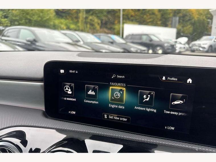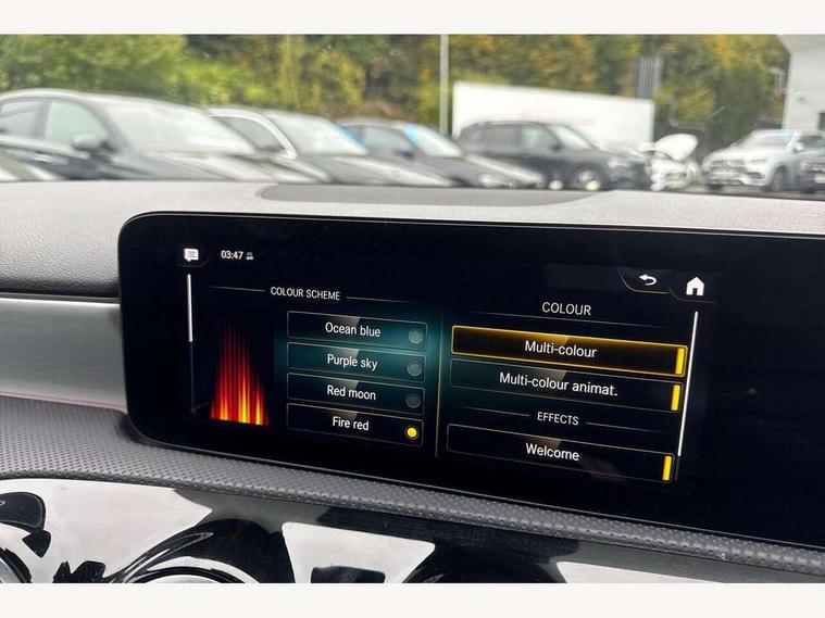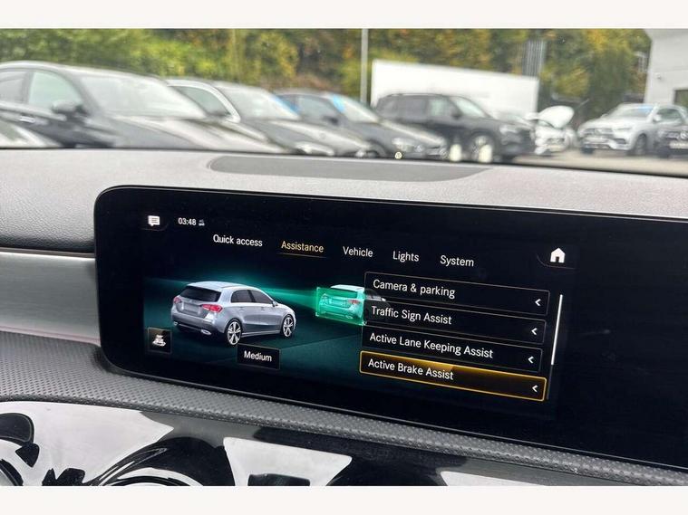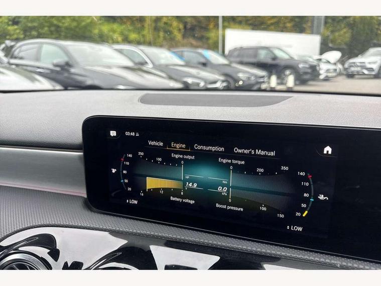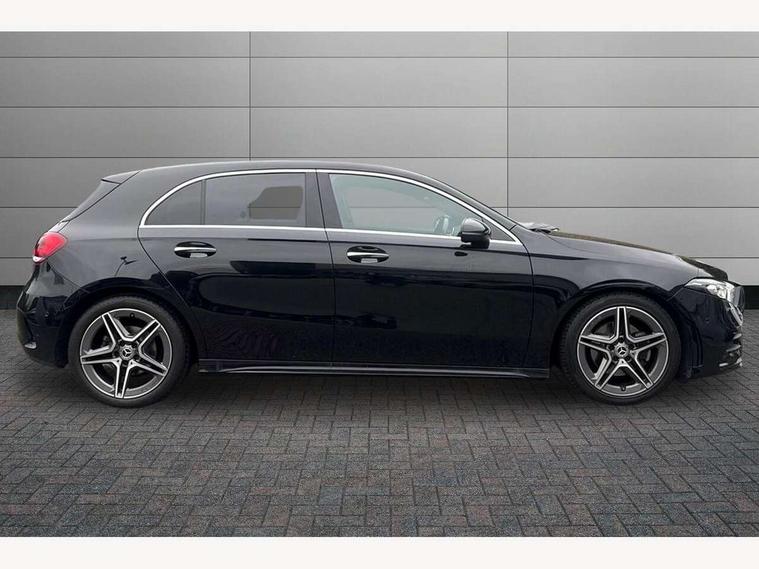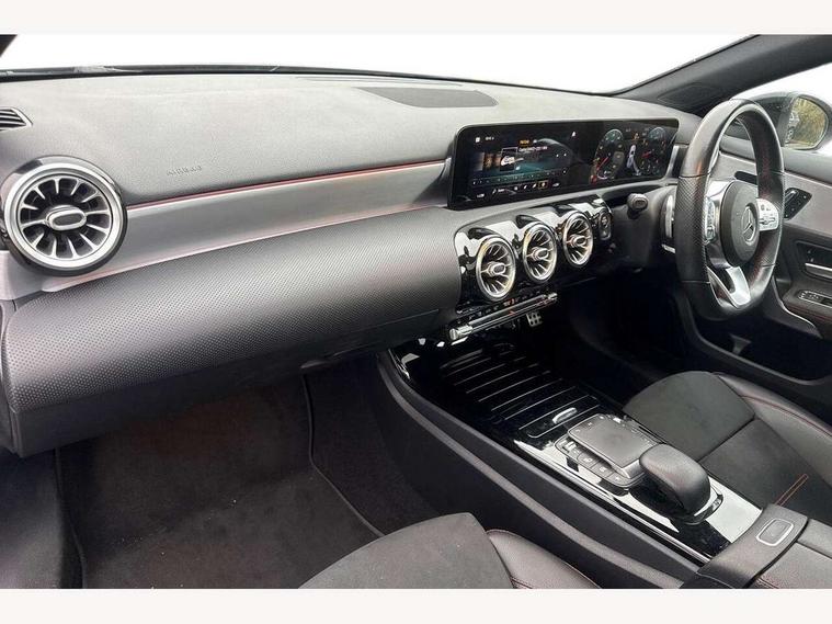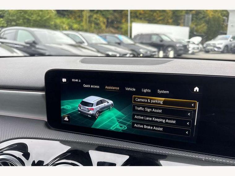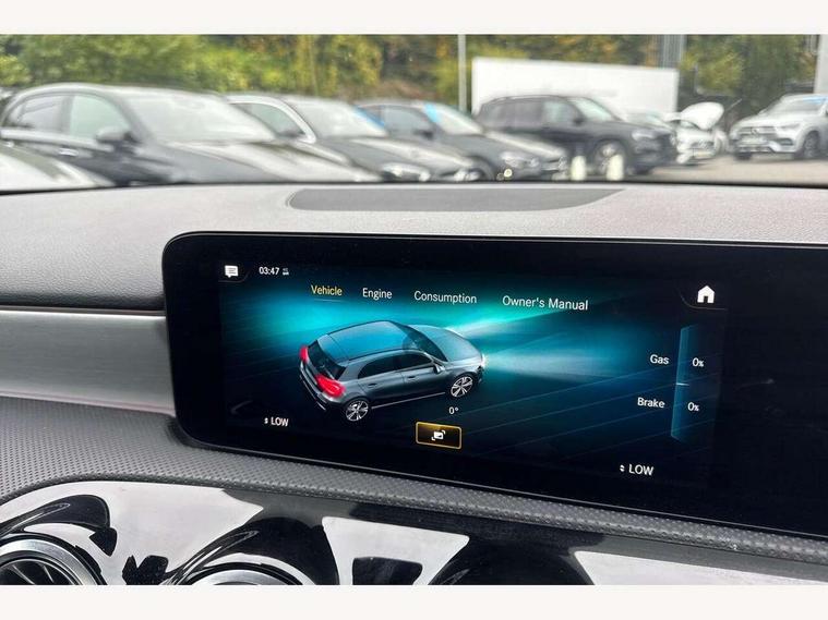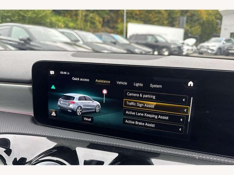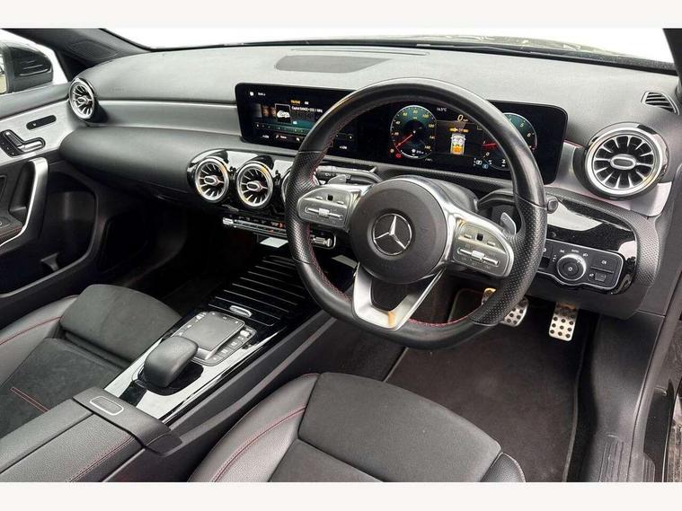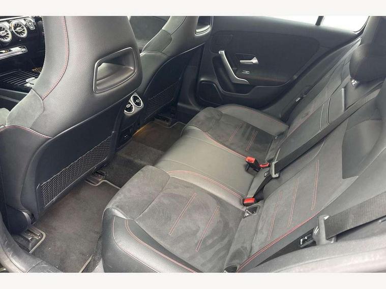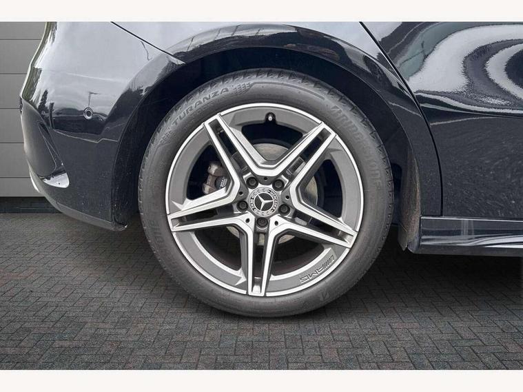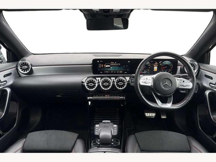 10.25" Digital instrument cluster display screen, 10.25" media display, 180 degree rear view camera with parking guidelines, Active parking assist with visual and audible warning of detected obstacles, Attention assist, Brake pad wear indicator warning light, Car wash mode, Direct steering, Dual bluetooth interfaces, DYNAMIC SELECT with a choice of driving modes (ECO, Comfort, Sport and Individual), ECO start/stop function, Fluid level warning indicator for fuel, oil, coolant and washer fluid, Hard-disk navigation, Hey Mercedes Voice activation, Lamp failure indicator, MBUX augmented reality for navigation, Mercedes me connect including emergency call system, accident recovery, breakdown and maintenance management, Mercedes me remote services, Outside temperature gauge, Owners manual in English, Pre-installation for private car sharing, Preinstallation for Mercedes Benz link, Service indicator (ASSYST), Smartphone integration with Apple CarPlay and Android auto, Traffic sign assist, Trip computer, Ultrasonic sensors positioned in the front and rear bumpers, Wireless charging, Lowered comfort suspension, Rear axle torsion beam, 10 speakers, 2 USB ports (type C) in rear stowage compartment and one in front of center console, DAB Digital radio, MBUX multimedia system with DAB digital radio and touchpad including satellite navigation, Mercedes-Benz advanced sound system - 225W, 4 Electric Front and Rear windows, Adaptive brake lights, AMG bodystyling - Front apron with splitter in chrome, rear apron with chrome trim and chrome visible trim elements in tailpipe, Black weather strip, Body colour bumpers, Body colour door handles, Body colour side skirt, Body coloured door mirrors, Chrome beltline trim, Diamond radiator grille with chrome pins and silver louvre + chrome insert, Electric adjustable and heated door mirrors with integrated LED side indicators, Exhaust system - Twin visible tailpipes in polished stainless steel, Headlamp assist automatic headlamp activation, Heated glass rear windscreen + timer control, LED high performance headlamps with integrated LED daytime running lights, LED tail lamp, LED third brake light, Multibeam LED with adaptive highbeam assist plus, Panoramic sliding sunroof, Privacy glass, Radio aerial, Rain sensing windscreen wipers with two sensitivity settings, Rear fog lights, Rear wiper, Window line trim strip in chrome, 3 Spoke flat bottom leather multi function steering wheel with perforated leather in grip area, 40:20:40 split folding rear seats, Artico man-made leather/Microfibre Dinamica upholstery with red contrast stitching, Auto Mercedes-Benz child seat recognition sensor, Black air vents with surround in silver chrome, Black roof lining, Brushed stainless steel sports pedals with rubber studs, Controller on centre console with chrome surround, Electrically adjustable front memory seats including lumbar support, Floor mats with stitched edging and AMG lettering, Front centre armrest with storage compartment, Front seat backs luggage nets, Front seat cushion length adjustment, Galvanished gear shift paddles on steering wheel, Heated front seats, Height/reach adjustable steering column, Illuminated front door sills with changeable cover, Interior lighting - 64 colour Ambient lighting, Interior mirror with reading lamps in black and frameless, Rear armrest with 2 cupholders, Rear head restraints, Seat occupancy sensor for front passenger seat, Sports seats with integrated headrests, Stowage compartment in centre console with retractable cover, Sunvisors with illuminated vanity mirrors, Touchpad on center console, Twin front cupholders, Two zone thermotronic luxury automatic climate control, Light and sight pack - A Class, Mirror package - A Class, Seat comfort pack - A Class, 3 rear 3 point seatbelts, ABS with Brake Assist, Active bonnet, Adaptive brake assist with hold function and hill start assist, Black seatbelts, Childproof locks manually operated for rear doors and electrically operated for rear power windows, Crash responsive emergency lighting, Driver and passenger head and side airbags, Drivers knee airbag, Dual stage driver/passenger airbags, Electronic parking brake, ESP curve dynamic assist, ESP with ASR, Front and rear seatbelt reminder, Front brake callipers with Mercedes Benz lettering, ISOFIX and top tether child seat fixing points in two outer rear seats, Tyre pressure monitoring system, Warning triangle and first aid kit, Window airbags, Alarm system/interior protection/immobiliser, Keyless entry lock/unlock, Keyless Go, Remote central locking and crash sensor with emergency opening function, Urban guard vehicle protection system with immobiliser and interior protection, Light aluminium with longitudinal grain interior trim, 18" AMG 5 twin spoke light alloy wheels in titanium grey with highsheen finish, Summer tyres, Tirefit sealant kit,