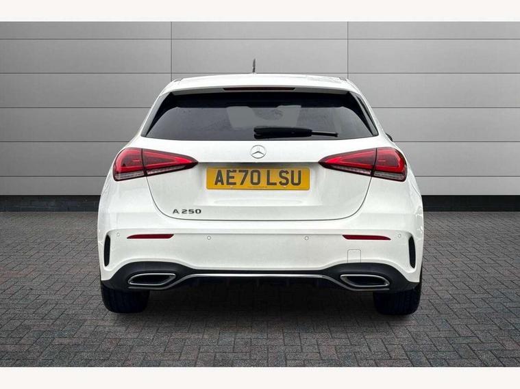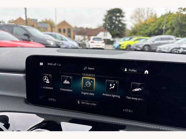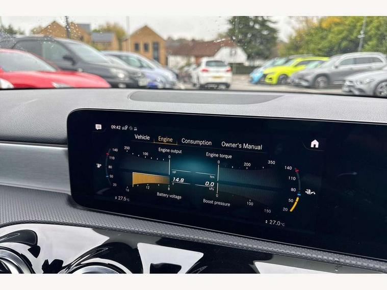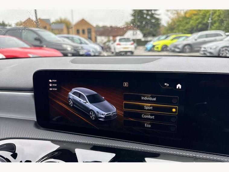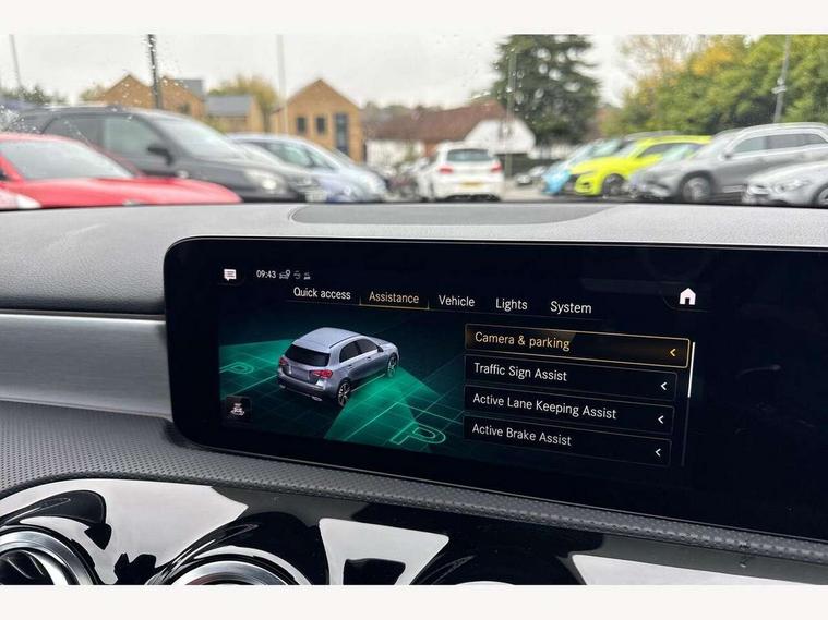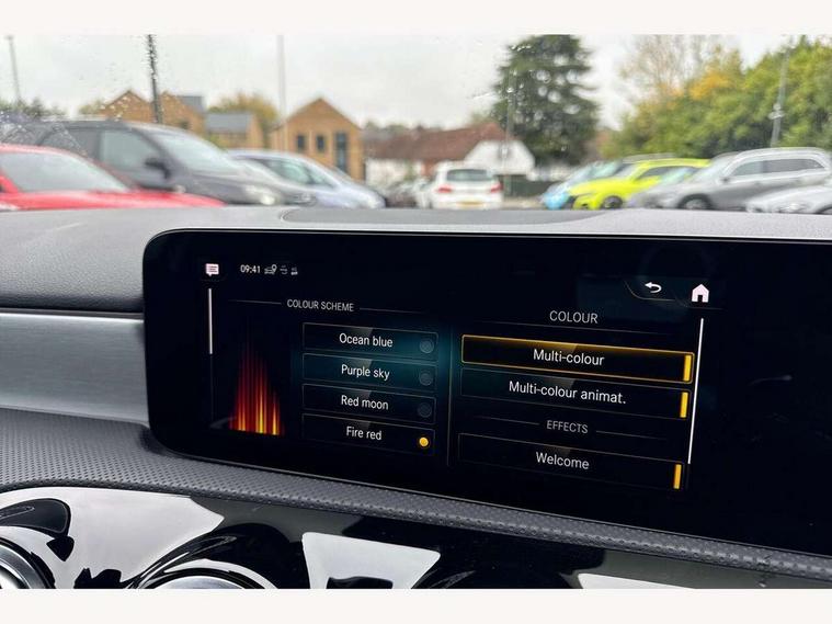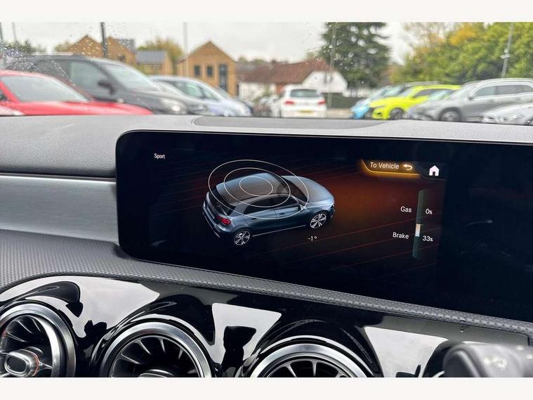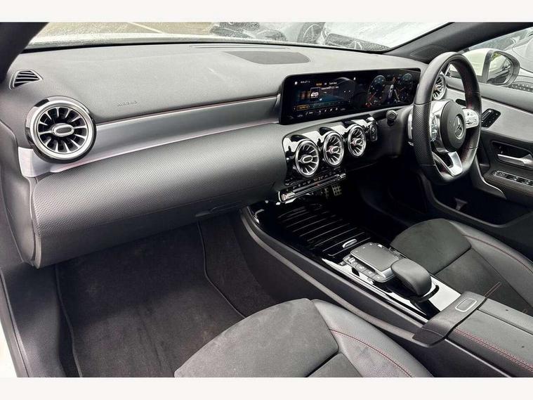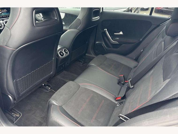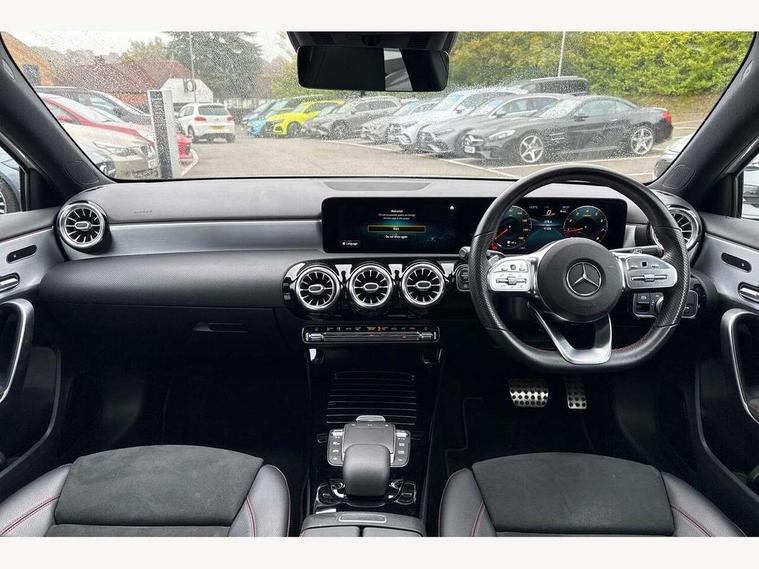 10.25" Digital instrument cluster display screen, 10.25" media display, 180 degree rear view camera with parking guidelines, Active parking assist with visual and audible warning of detected obstacles, Attention assist, Brake pad wear indicator warning light, Car wash mode, Direct steering, Dual bluetooth interfaces, DYNAMIC SELECT with a choice of driving modes (ECO, Comfort, Sport and Individual), ECO start/stop function, Fluid level warning indicator for fuel, oil, coolant and washer fluid, Hard-disk navigation, Hey Mercedes Voice activation, Lamp failure indicator, MBUX augmented reality for navigation, Mercedes me connect including emergency call system, accident recovery, breakdown and maintenance management, Mercedes me remote services, Outside temperature gauge, Owners manual in English, Pre-installation for private car sharing, Preinstallation for Mercedes Benz link, Service indicator (ASSYST), Smartphone integration with Apple CarPlay and Android auto, Traffic sign assist, Trip computer, Ultrasonic sensors positioned in the front and rear bumpers, Wireless charging, Lowered comfort suspension, Rear axle multi-link, 10 speakers, 2 USB ports (type C) in rear stowage compartment and one in front of center console, DAB Digital radio, MBUX multimedia system with DAB digital radio and touchpad including satellite navigation, Mercedes-Benz advanced sound system - 225W, 4 Electric Front and Rear windows, Adaptive brake lights, AMG bodystyling - Front apron with splitter in chrome, rear apron with chrome trim and chrome visible trim elements in tailpipe, Black weather strip, Body colour bumpers, Body colour door handles, Body colour side skirt, Body coloured door mirrors, Chrome beltline trim, Diamond radiator grille with chrome pins and silver louvre + chrome insert, Electric adjustable and heated door mirrors with integrated LED side indicators, Exhaust system - Twin visible tailpipes in polished stainless steel, Headlamp assist automatic headlamp activation, Heated glass rear windscreen + timer control, LED high performance headlamps with integrated LED daytime running lights, LED tail lamp, LED third brake light, Multibeam LED with adaptive highbeam assist plus, Panoramic sliding sunroof, Privacy glass, Radio aerial, Rain sensing windscreen wipers with two sensitivity settings, Rear fog lights, Rear wiper, Window line trim strip in chrome, 3 Spoke flat bottom leather multi function steering wheel with perforated leather in grip area, 40:20:40 split folding rear seats, Artico man-made leather/Microfibre Dinamica upholstery with red contrast stitching, Auto Mercedes-Benz child seat recognition sensor, Black air vents with surround in silver chrome, Black roof lining, Brushed stainless steel sports pedals with rubber studs, Controller on centre console with chrome surround, Electrically adjustable front memory seats including lumbar support, Floor mats with stitched edging and AMG lettering, Front centre armrest with storage compartment, Front seat backs luggage nets, Front seat cushion length adjustment, Galvanished gear shift paddles on steering wheel, Heated front seats, Height/reach adjustable steering column, Illuminated front door sills with changeable cover, Interior lighting - 64 colour Ambient lighting, Interior mirror with reading lamps in black and frameless, Rear armrest with 2 cupholders, Rear head restraints, Seat occupancy sensor for front passenger seat, Sports seats with integrated headrests, Stowage compartment in centre console with retractable cover, Sunvisors with illuminated vanity mirrors, Touchpad on center console, Twin front cupholders, Two zone thermotronic luxury automatic climate control, Light and sight pack - A Class, Mirror package - A Class, Seat comfort pack - A Class, 3 rear 3 point seatbelts, ABS with Brake Assist, Active bonnet, Adaptive brake assist with hold function and hill start assist, Black seatbelts, Childproof locks manually operated for rear doors and electrically operated for rear power windows, Crash responsive emergency lighting, Driver and passenger head and side airbags, Drivers knee airbag, Dual stage driver/passenger airbags, Electronic parking brake, ESP curve dynamic assist, ESP with ASR, Front and rear seatbelt reminder, Front brake callipers with Mercedes Benz lettering, ISOFIX and top tether child seat fixing points in two outer rear seats, Perforated front brake discs, Tyre pressure monitoring system, Warning triangle and first aid kit, Window airbags, Alarm system/interior protection/immobiliser, Keyless entry lock/unlock, Keyless Go, Remote central locking and crash sensor with emergency opening function, Urban guard vehicle protection system with immobiliser and interior protection, Light aluminium with longitudinal grain interior trim, 18" AMG 5 twin spoke light alloy wheels in titanium grey with highsheen finish, Summer tyres, Tirefit sealant kit,