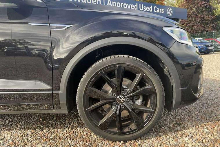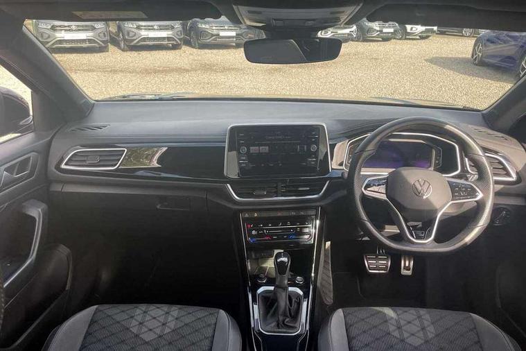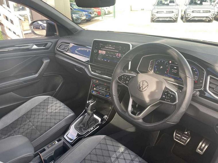 10.25" Digital cockpit pro, Bluetooth mobile phone interface, Driver alert system with fatigue detection, Driver tips and journey analysis, Emergency call service, Lane keeping system Lane Assist, Modified key software - reduce switch off time for key status change to Long no motion, Online services, Park assist including front and rear parking sensors, Service interval indicator, Tailgate/trunk lid release from outside, Think blue trainer driver tips and journey analysis, Warning sound and light for front seatbelts unfastened, Wireless app connect, Battery regeneration during braking, Start/stop function with battery regeneration, Diversity antenna for FM reception, Front and rear 6 speakers, Music playback - MP3, WMA and AAC files, Premium USB cable in choice of either Apple or Android smartphone compatibility, SD card slot, Simultaneous pairing of 2 compatible mobile devices, Title and cover art display, We Connect and We Connect Plus functionality, 3rd brake light, Auto dimming interior rear view mirror, Automatic hazard lights activation under emergency braking, Automatic headlight control with LED separate daytime running lights with coming/leaving home function, Extended roof spoiler, Exterior mirrors aspherical on driver side, convex on front passenger side, External USB type C socket and charging sockets, Front windscreen wiper with intermittent wipe and 4 position delay, Heated rear window, LED Plus headlamps, LED rear combination lamps, LED rear number plate lights, LED tail lamp rear comination lamps, Power windows with comfort operation and circuit breaker, R-Line design body coloured bumpers, Rain sensor, Rear exhaust tailpipe, Rear fog light on one side and reversing lights on both sides, Rear side wing doors, Rear wash/wipe with intermittent wipe setting, Remote electrically foldable door mirrors, puddle lights and reverse activated passenger's door mirror, 12V power socket in centre console, 3 rear head restraints, 3 seat bench in 2nd row, 4 load lashing points in luggage compartment, Air care climatronic air conditoning system with active combination filter and 2-zone temperature control, Black roof lining, Chrome plated radiator grille inserts, air vent surrounds and light switch surrounds, Door and side trim panel with leatherette insert, Drawer under drivers seat, Front + rear carpet mats, Front centre armrest, Front cupholders x 2, Front footwell illumination, Front reading light, Front scuff plates with R logo, Instrument lighting, white adjustable panel illumination, Interior ambient lighting and surround lighting, Interior light delay, Isofix child seat preparation, Leather gearshift handle, Load-through provision with cup holder when folded down ('Unsplit rear seat bench, split folding backrest, with centre armrest), Luggage compartment lighting, Single front passenger seat, Stainless steel pedals, Storage compartment in left and right luggage area, Storage compartment in rear doors, Storage compartments in driver and front passenger doors, Sunvisors with illuminated vanity mirrors, Variable boot floor, height adjustable and removable, Driver assistance pack without proactive passenger protection - T-Roc, 3 point height adj front seatbelts + pretensioners, 3 point seatbelts in outer rear with ECE label, ABS, Child locks on rear doors, Driver and front passenger airbag with front passenger airbag deactivation, Driver and front passenger safety-optimised head restraints, Drivers seatbelt reminder, Electronic parking brake, Electronic Stability Control (ESC) inc EDL (Electronic Differential Lock) and ASR (Traction Control), Front and rear passengers curtain airbag system including front side airbags, Front assist with city emergency braking and pedestrian monitoring, Front seat side impact airbags, Hill start assist, Predictive pedestrian protection, Rear disc brakes, Single tone horn, Tyre pressure loss indicator, Volkswagen roadside assistance, Alarm with interior protection, Anti-theft alarm system with interior monitoring, backup horn, and towing protection, Remote central locking with SAFELOCK, radio remote control with 2 remote control folding keys, Trims for alloy wheels,