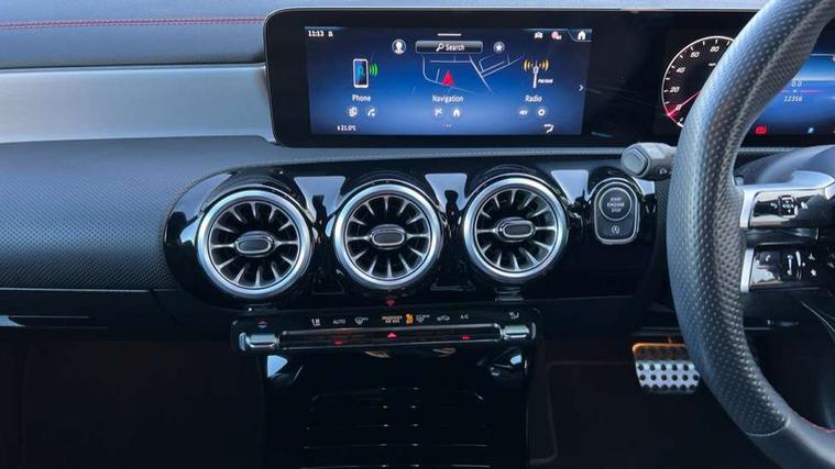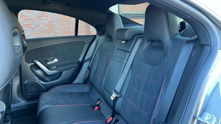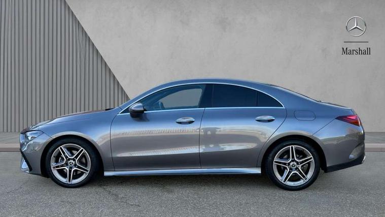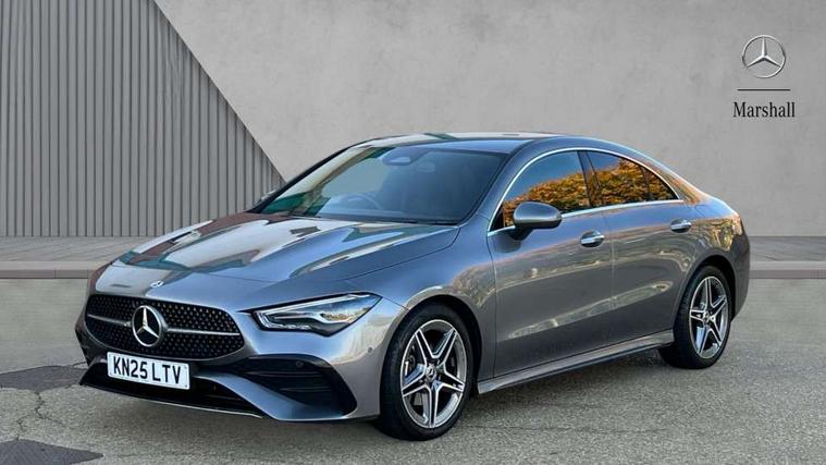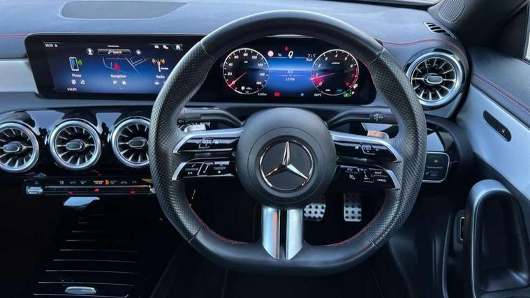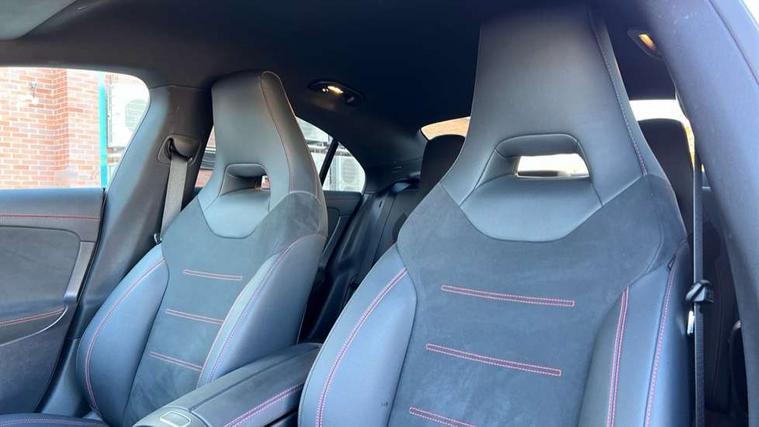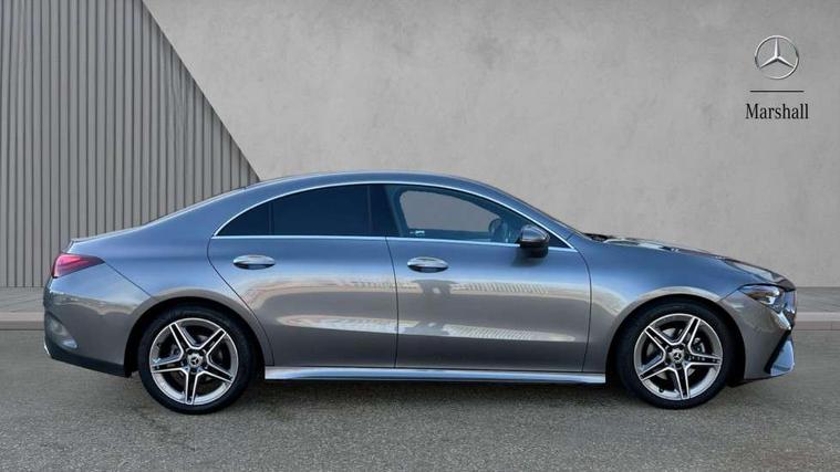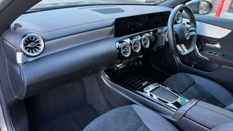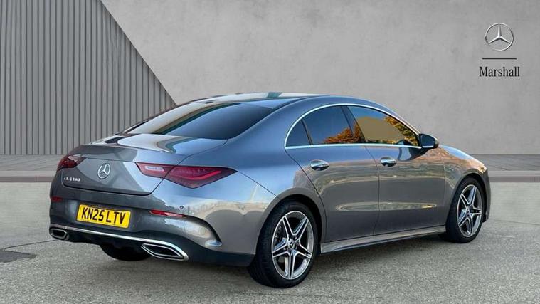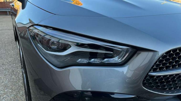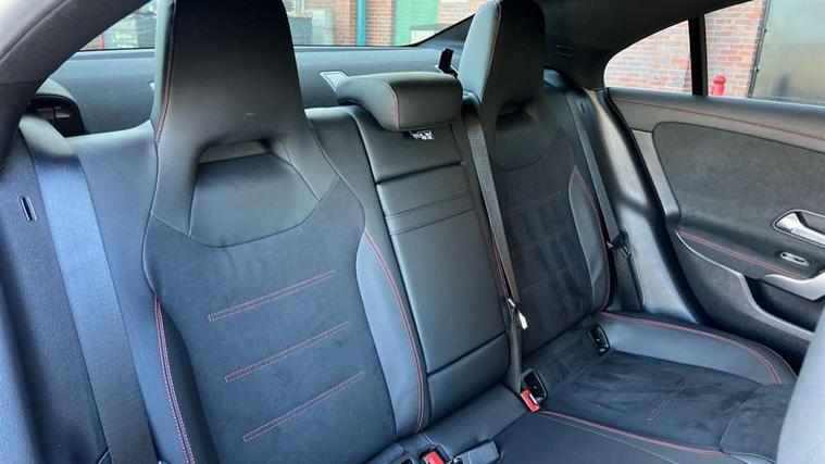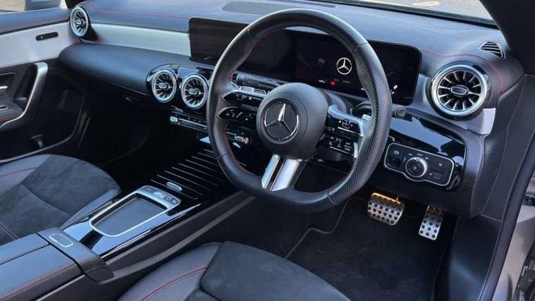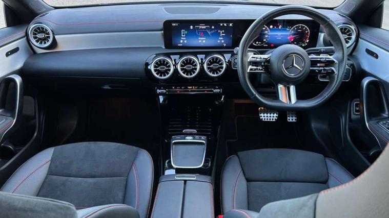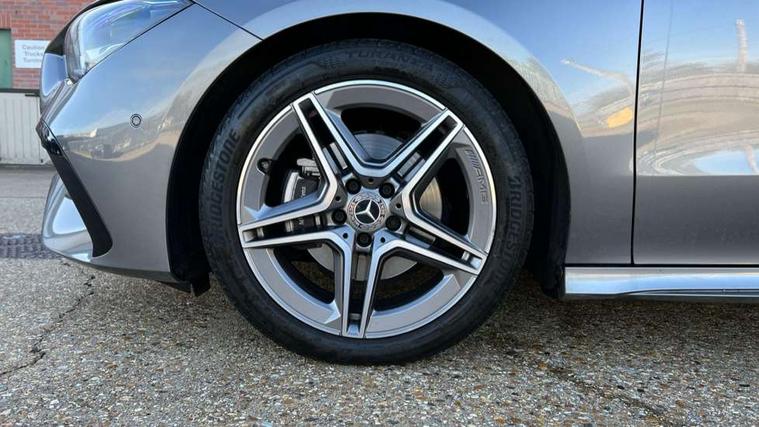 10.25 inch Instrument display with digital cockpit, 10.25 inch touchscreen central media display, Active lane keeping assist, Attention assist - Monitors steering behaviour and long journey fatigue, Blind spot assist, Bluetooth connection, Car wash mode, Cruise control with limiter, Direct steer system, DYNAMIC SELECT with a choice of driving modes (ECO, Comfort, Sport and Individual), ECO start/stop function, Fingerprint sensor, Fluid level warning indicator for fuel, oil, coolant and washer fluid, Hard-disk navigation, Hey Mercedes Voice activation, Lamp failure indicator, Mercedes me connect including emergency call system, accident recovery, breakdown and maintenance management, Mercedes me remote services, Outside temperature gauge, Owners manual in English, Pre-installation of private car share, Radio aerial integrated into front and rear windshields, Service indicator (ASSYST), Smartphone integration with Apple CarPlay and Android auto, Speed limit assist, Trip computer in multifunction display with current consumption indicator, Wireless charging in the front centre console, Comfort suspension with ride height lowering, Rear axle multi-link, DAB digital radio tuner, MBUX multimedia system, Mercedes Benz sound system (100 W) with 6 speakers, Pre installation for Mercedes Benz Link, Adaptive brake lights, AMG body styling with AMG front apron and rear apron and visible exhaust tailpipe in chrome trim elements, Body colour door handles, Electric windows, Electrically adjustable and heated door mirrors with integrated LED indicators, Exhaust system with 2 Visible tailpipe trim elements and rear apron with trim in chrome, Hand free access, Headlamp assist automatic headlamp activation, Heated glass rear windscreen + timer control, High gloss aluminium beltline strips, High level LED third brake light, Interior mirror with black reading lamps and frameless, LED high performance headlamps with integrated LED daytime running lights and adaptive highbeam assist, LED tail lamp, Privacy glass with dark tinting on rear side windows and rear window, Radiator grille with Mercedes-Benz pattern in chrome and central Mercedes star, single louvre in high-gloss black with chrome inserts, Rain sensing windscreen wipers with two sensitivity settings, Rear boot, Rear fog lamp, Rear side wing doors, Variable front intermittent wipers, Window line trim strip in high gloss aluminium, 3 seat bench in 2nd row, 3 twin spoke flattened multifunction steering wheel in nappa leather - horizontal twin spoke in high gloss black, vertical twin spoke in silver chrome, 4 way lumbar support, 40:20:40 split folding rear seat backrests, Air conditioning - One zone THERMATIC automatic climate control with automatically controlled air distribution, Air vents with surround in silver chrome, Artico man-made leather/Microcut microfibre upholstery, Automatic child seat recognition sensor, Black roof lining, Brushed stainless steel sports pedals with rubber studs, Floor mats with stitched AMG lettering, Fluorescent jacket, Front centre armrest with stowage, Galvanished gear shift paddles in silver chrome, Heated front seats, Interior lighting - 64 colour Ambient lighting, Luggage net on driver/front passenger seat backrest, Manually height and reach adjustable steering column, Rear head restraints, Single front passenger seat, Sport seats with fixed head restraints, Stowage compartment in centre console with retractable cover, Sunvisors with illuminated vanity mirrors, Twin front cupholders, Two outer rear seat isofix and top tether child seat fixing points, Keyless go comfort pack - CLA, Light and sight pack - CLA, Mirror pack - CLA, Parking pack with reversing camera - CLA, Seat comfort pack - CLA, USB package plus - CLA, Active bonnet pedestrain safety measure which detects an impact and raises bonnet by 65mm, Active brake assist includes forward collision warning system with autonomous braking, Adaptive brake assist with hold function and hill start assist, Anti lock braking system (ABS) with brake assist, Black seat belts, Bonnet with power domes, Brake calipers with Mercedes-Benz lettering, Brake pad wear warning indicator, Childproof locks manually operated for rear doors and electrically operated for rear power windows, Crash responsive emergency lighting, Driver and front passenger head and sidebags, Driver and front passenger windowbags, Drivers knee airbag, Dual stage driver and front passenger airbags, Electric parking brake, Electronic stability programme with acceleration skid control, ESP curve dynamic assist, Front and rear seatbelt reminder, Front passenger seat occupancy sensor, Perforated front brake discs, Sports braking system, Three point rear seat belts, Tyre pressure monitoring system, Warning triangle and first aid kit, Alarm system with immobiliser and interior protection -Thatcham category 1, Guard 360 deg vehicle protection - tow away protection with visual, acoustic warning, interior monitoring, preinstallation for parking damage, Remote central locking and crash sensor with emergency opening function, Light aluminium with longitudinal grain interior trim, 18" AMG 5 twin spoke light alloy wheels painted in termolite grey with high sheen finish, Summer tyres, Tirefit tyre sealant kit,