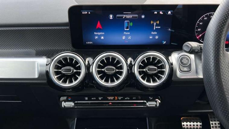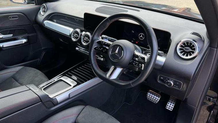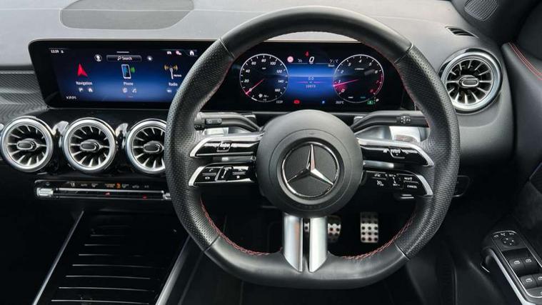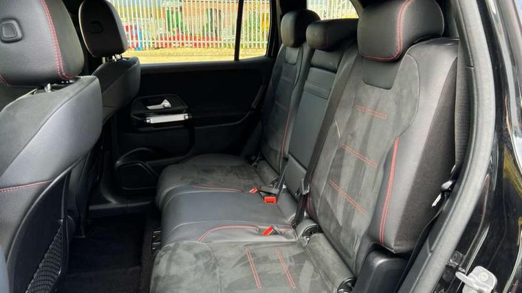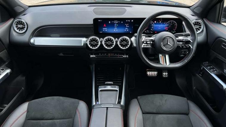 10.25 inch touchscreen central media display, 10.25" Digital instrument cluster display screen, Attention assist - Monitors steering behaviour and long journey fatigue, Blind spot assist, Bluetooth connection, Brake pad wear indicator warning light, Car wash mode, Direct steering, DYNAMIC SELECT with a choice of driving modes (ECO, Comfort, Sport and Individual), ECO start/stop function, Exit warning function, Fingerprint scanner, Fluid level warning indicator for fuel, oil, coolant and washer fluid, Hard disk navigation, Hey Mercedes Voice activation, Lamp failure indicator, Lane keep assist, MBUX navigation premium, Mercedes me connect including emergency call system, accident recovery, breakdown and maintenance management, Mercedes me remote services, Outside temperature gauge, Owners manual and service booklet in English, Pre-installation of private car share, Preinstallation for parking damage notification, Radio aerial integrated into front and rear windshields, Service indicator (ASSYST), Smartphone integration with Apple CarPlay and Android auto, Speed limit assist, Tailgate, Trip computer in multifunction display with current consumption indicator, Wireless charging, Comfort suspension with ride height lowering, Rear axle multi-link, DAB digital radio tuner, MBUX multimedia system, Mercedes Benz sound system (100 W) with 6 speakers, Pre installation for Mercedes Benz Link, Adaptive brake lights, Adaptive high beam assist, AMG front apron with front splitter in the colour of the vehicle with chrome trim element, AMG rear apron with visible tailpipe trim and chrome trim element, AMG specific/dual flow exhaust pipes in chrome (non-functional), Beltline trim and window line trim strip in high gloss aluminium, Black grained side sill trim with chrome inlay, Body coloured door handles, Electric adjustable and heated door mirrors with integrated LED side indicators, Front and rear electric windows, Headlamp assist automatic headlamp activation, Heat insulating dark tinted glass for rear side windows and rear window, Heated glass rear windscreen + timer control, High level LED third brake light, Interior mirror with black reading lamps and frameless, LED high performance headlamps with integrated LED daytime running lights, LED tail lamp, Polished aluminium roof rails, Radiator grille as a diamond grille with chrome pins and central Mercedes star, Rain sensor windscreen wipers with two sensitivity stages, Rear fog lamp, Rear side wing doors, Rear wiper, Single louvre in matt grey with chrome inserts and black highlights, Two visible tailpipe trim elements exhaust, Wheel arch liners in the colour of the vehicle, 3 seat bench in 2nd row, 3 twin spoke flattened multifunction steering wheel in nappa leather - horizontal twin spoke in high gloss black, vertical twin spoke in silver chrome, 4 way adjustable lumbar support, 40:20:40 split folding rear seats, Air vents with silver chrome surrounds, AMG floor mats, AMG sports pedals with brushed stainless steel surfaces and black rubber studs, Artico man-made leather/Microcut microfibre upholstery, Automatic child seat recognition sensor, Black roof lining, Fluorescent jacket, Front and rear headrests, Front centre armrest with stowage, Galvanised steering wheel gearshift paddles in silver chrome, Heated front seats, Height adjustable head restraints, Height/reach adjustable steering column, Interior lighting - 64 colour Ambient lighting, Luggage net on driver/front passenger seat backrest, Single front passenger seat, Sports seats, Stowage compartment in centre console with retractable cover and double cupholder and 12 V socket, Sun visors with illuminated vanity mirrors, THERMATIC automatic climate control, Third row of seats for two people on rear seat, Twin front cup holders, Two outer rear seat isofix and top tether child seat fixing points, Easy pack tailgate, Interior lighting with light and sight pack - GLB, KEYLESS-GO Comfort package - GLB, Mirror package - GLB, Parking Package with reversing camera - GLB, Seat comfort package - GLB, USB package plus - GLB, 3 rear 3 point seatbelts, Active bonnet pedestrain safety measure which detects an impact and raises bonnet by 65mm, Active brake assist includes forward collision warning system with autonomous braking, Adaptive brake assist with hold function and hill start assist, Airbags - kneebag for driver, Anti-lock braking system (ABS) with brake assist, Black seatbelts, Bonnet with power domes, Childproof locks manually operated for rear doors and electrically operated for rear power windows, Crash responsive emergency lighting, Curve dynamic assist, Driver and front passenger head and sidebags, Driver and front passenger windowbags, Dual stage driver and front passenger airbags, Electric parking brake, Electronic stability programme with acceleration skid control, Front and rear seatbelt reminder, Front brake callipers with Mercedes Benz lettering, Front passenger seat occupancy sensor, Perforated front brake discs, Tyre pressure monitoring system, Warning triangle and first aid kit, Guard 360 degree vehicle protection - Anti theft alarm system, tow away protection with visual, acoustic warning and alarm, Interior monitoring system, KEYLESS-GO starting function, Remote central locking and crash sensor with emergency opening function, Thatcham category 1 alarm system with immobiliser and interior protection, Carbon structure trim, 19" AMG 5 twin spoke light alloy wheels aerodynamically optimised, painted in high-gloss black and with a high-sheen finish RTG, Summer tyres, Tirefit tyre sealant kit,