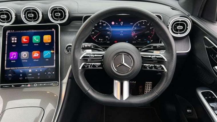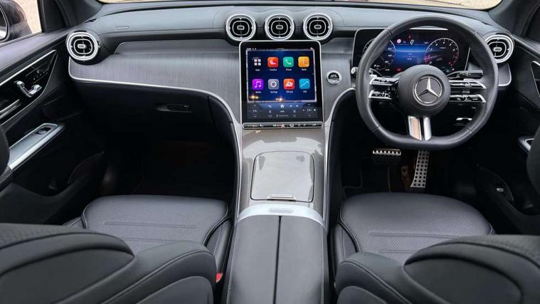 11.9" high resolution multimedia colour display, 12.3" Digital individually configurable instrument display, Acoustic presence indicator, Active lane keeping assist, Attention assist, Blind spot assist, Bluetooth interface for hands free telephone, Collision prevention assist plus, Cruise control with speedtronic variable speed limiter, Dashcam - front camera for video recording, Direct steer speed sensitive steering, DYNAMIC SELECT with a choice of driving modes (ECO, Comfort, Sport, Sport+ and Individual), eCall emergency call system, ECO start/stop function, Fingerprint scanner, Fluorescent jacket for driver, Hard disc navigation, Instrument display in miles with English lettering, MBUX augmented reality for navigation, MBUX navigation premium, MBUX voice control activated by keywords "Hey Mercedes", Mercedes me connect, Outside temperature display, Remote boot release, Remote services, Road sign recognition system, Service indicator (ASSYST), Smartphone integration, Status display for rear seat belts in instrument cluster, Traffic sign assist, Trip computer, Wireless charging, 48V Mild hybrid technology, 4MATIC permanent four wheel drive, 62 litre fuel tank, 9G TRONIC plus automatic transmission, Petrol Particulate Filter (PPF), Sport suspension, DAB digital radio tuner, MBUX extended functions, Mercedes benz sound system, Pre installation for Mercedes Benz Link, Adaptive brake lights, Adaptive high beam assist plus, Aluminium look running boards with rubber studs, Aluminium roof rails, AMG bodystyling front apron, rear apron and side skirts, AMG Line exterior, Auto headlights, Body colour bumpers, Body colour door mirrors, Digital light LED headlights, Electrically adjustable door mirrors, Front and rear electric windows, Headlight washers, Heat insulating dark tinted glass, Heated rear window, High level LED brake light, Integrated LED daytime running lights, LED indicator lights, LED rear fog lights, LED tail lamp, Motor way mode function and locator lighting, Noise acoustic glass, Radiator grille with Mercedes Benz pattern and integreated Mercedes star and louvre in dark grey matt with chrome inlay and black frame, Rain sensor windscreen wipers, Range adjustable headlights, Rear side wing doors, Rear wiper, Transparent Bonnet, Two chrome plated tailpipe trim elements, Variable front intermittent wipers, Welcome and follow-me home light functionality, Wider wheel arch for AMG wheels, 3 seat bench in 2nd row, 40:20:40 split folding rear seats, Ambient lighting premium, AMG line interior, Artico man-made leather upholstery, Audio and onboard settings control on multifunction steering wheel, Automatic child seat recognition sensor, Black fabric roof lining, Black floor mats with AMG lettering, Double cup holder in centre console, Easy-pack removable load compartment cover, Electrically height/reach adjustable steering column, Front centre armrest with stowage compartment, Front head restraints, Galvanised steering wheel gearshift paddles, Heated front seats, Illuminated door sill panels with Mercedes Benz lettering, Illuminated glove compartment, Instrument panel and beltlines in ARTICO manmade leather in nappa look, Multifunction sports steering wheel in nappa leather, Rear centre headrest, Rear head restraints, Rear top tether child seat ISOFIX attachment, Single front passenger seat, Sports pedals with stainless steel surfaces and rubber studs, Sports seats, Sun visors, THERMATIC 2 zone automatic climate control, Anti theft protection package - GLC, Boot comfort package - GLC, Exterior chrome package - GLC, Interior chrome package - GLC, Interior lighting pack - GLC, Keyless-Go comfort package - GLC, Memory pack - GLC, Mirror pack - GLC, Parking package with 360 degree camera - GLC, Seat comfort package - GLC, Stowage space package - GLC, USB Plus Pack - GLC, 3 rear 3 point seatbelts, Active braking assist, Anti-lock braking system (ABS), ASR traction control, Automatic front passenger airbag deactivation, Black seat belts, Brake calipers with Mercedes-Benz lettering + perforated brake discs, Braking system with larger brake discs on the front axle, Child proof door locks, Dual-stage airbags - driver and front passenger, driver knee bag and window bags for driver, front passenger and rear passengers, Electronic parking brake, Electronic stability programme (ESP) with curve dynamic assist and cross wind assist, Front and rear seatbelt reminder, Front passenger seat occupancy sensor, Front seatbelt pretensioners, Hill start assist, Tyre pressure monitoring system, Warning triangle and first aid kit, Automatic door locking, Guard 360 degree vehicle protection plus, Interior protection/immobiliser, Remote central locking, Centre console in metal structure finish, Metal structure trim, 20" AMG 5 spoke aerodynamically optimised light alloy wheels in painted black with high sheen finish, Summer tyres, TIREFIT with tyre inflation compressor,