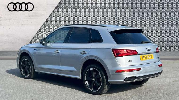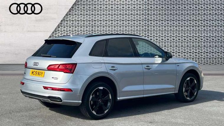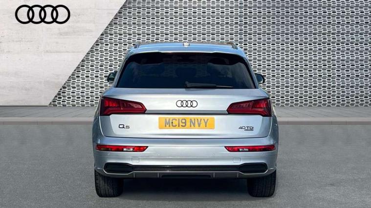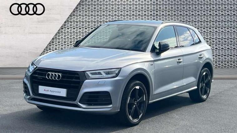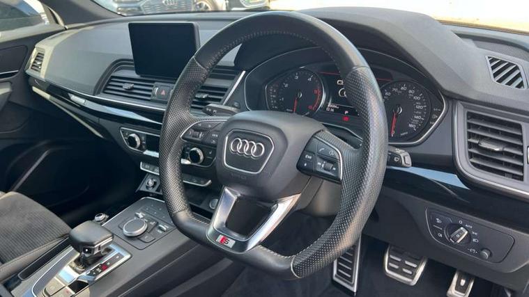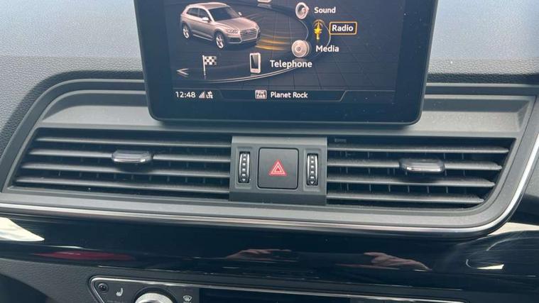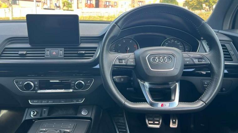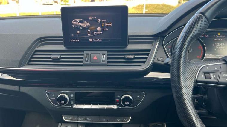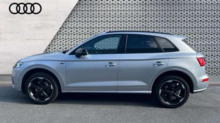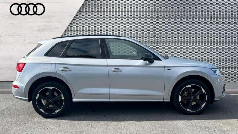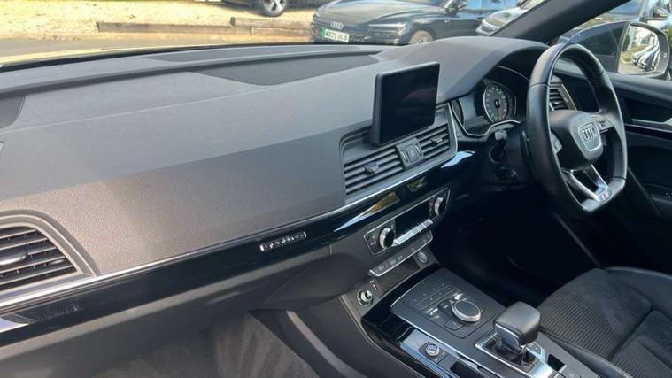 7" Colour driver information system, Audi connect safety and service (e-call), Audi drive select, Audi parking system plus with front and rear sensors, Audi Pre sense collision avoidance, Audi smartphone interface, Automatic start-stop system with coasting functionality and efficiency programme, Cruise control + speed limiter, Electro - mechanical power assisted steering, MMI Navigation, Mobile telephone preparation - bluetooth interface, Power tailgate, Service interval indicator, Voice control system, Diesel particulate filter, Dynamic suspension, Quattro on demand, 2 x USB charging port with aux input socket, 2x SD card slot, CD player, DAB Digital radio, MMI radio plus with 7" colour MMI screen and MMI controller, Acoustic windscreen, Air inlets in matt titanium black with blades in matt aluminium silver, Auto dimming rear view mirror, Automatic headlight levelling, Black roof rails, Body colour bumpers, Body colour rear diffuser with matt aluminium silver surrounds, Body colour underbody protection, Chrome exhaust tailpipe, Electric adjustable/heated/folding door mirrors, Front and rear electric windows, High beam assistant, LED headlights with LED rear lights + dynamic rear indicators, Light and rain sensor for auto activation of lights and windscreen wipers, Loading sill protector in stainless steel, Privacy glass with front acoustic glazing, Rear wiper, Titanium black door mirror housings, 3 rear headrests, 3 spoke flat bottom high multi-function leather steering wheel, 40:20:40 split folding rear seat with rear centre armrest, Black cloth headlining, Contrast stitching on seats, steering wheel and gear lever gaiter, Deluxe 3 zone electronic climate control, Front centre armrest, Front sport seats with S embossed logo, Front/rear floor mats, Heated front seats, Height adjustable front head restraints, Height/reach adjustable steering column, ISOFIX child seat mounting and top tether, Luggage compartment carpet, Manual seat adjustment with 4-way electric lumbar support, Perforated leather gearknob, Removable luggage compartment floor, Stainless steel pedals, Sunvisors with vanity mirrors, Trunk roller cover, LED interior light pack - Q5, Non Smokers pack, Titanium black styling pack - Q5, 3 point seatbelts on all seats, 6 airbags - Driver, front passenger, curtain and side airbags, Electromechanical parking brake, Electronic stabilisation control including ABS, ASR and EDL, Front passenger airbag deactivation, Hill descent control, Hill hold assist, Multi collision brake assist, Pop-up bonnet for pedestrian protection, Pre sense city, Seat belt force limiter, Seatbelt monitoring, Tyre pressure warning, Warning triangle and first aid kit, Anti theft alarm, Anti-theft wheel bolts, Keyless Go access/ignition system, Remote central locking, Black piano finish inlays, 20" 5 arm rotor design sport alloy wheels in gloss anthracite black, diamond cut finish, Tool kit,