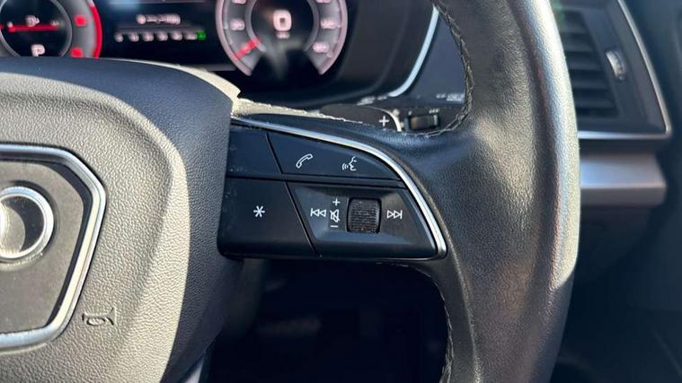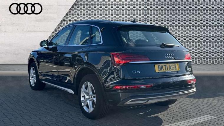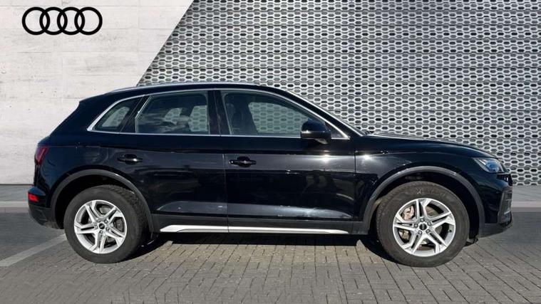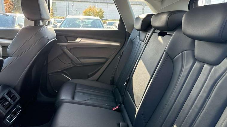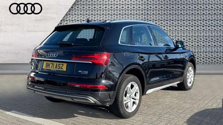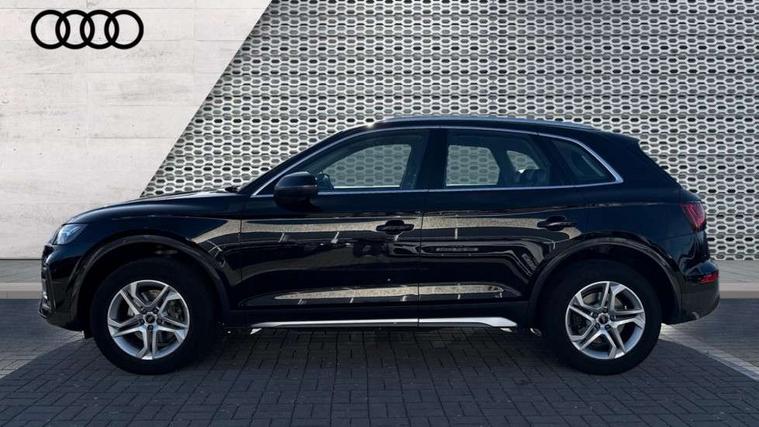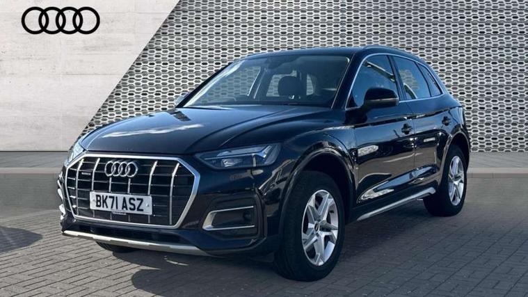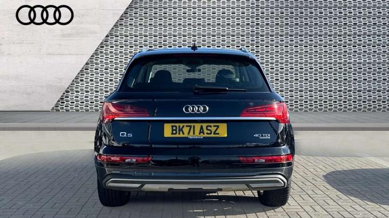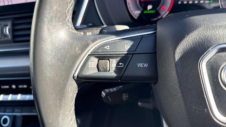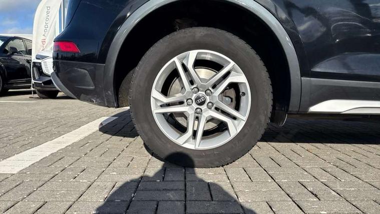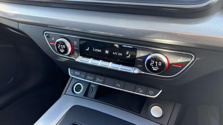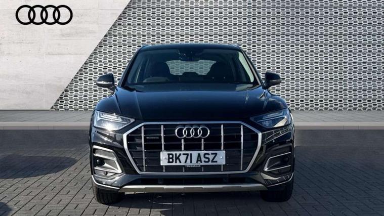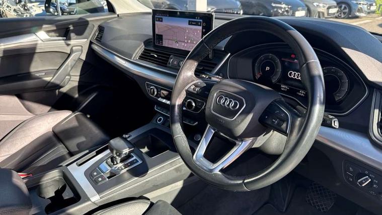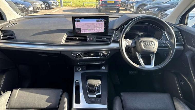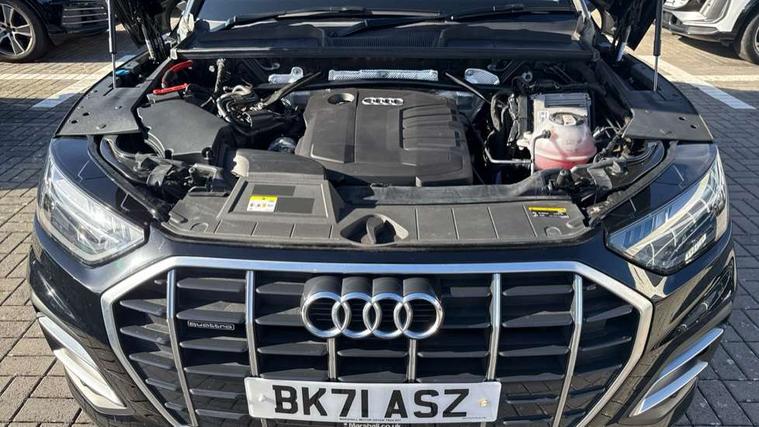 Audi connect safety and service (e-call), Audi connect with Amazon Alexa Integration, Audi drive select, Audi virtual cockpit plus with 12.3" screen and three different layout designs, Audi wireless smartphone interface, Automatic start-stop system with coasting functionality and efficiency programme, Bluetooth interface, Cruise control + speed limiter, Electro - mechanical power assisted steering, MMI navigation plus with 10.1" touch screen, Power tailgate, Reversing camera, Service interval indicator, Voice control system with Audi hotword activation "Hey Audi", Diesel particulate filter, Dynamic suspension, Quattro on demand, DAB Digital radio, Acoustic windscreen, Air inlets in matt titanium black with blades in matt aluminium silver, Aluminium roof rails, Auto dimming rear view mirror, Automatic headlights and windscreen wipers, Body colour bumpers, Body colour door mirrors, Chrome plated exhaust trims, Door sills in Selenite silver, Electric adjustable/heated/folding door mirrors, Front and rear electric windows, LED headlights and LED tail lights, Lower bumpers painted in contrast Manhattan grey, Matt selenite silver underbody protection, Matt twilight grey radiator grille with chrome vertical struts, Rear chrome trim strip below lights, Rear diffuser strip in selenite silver, Rear spoiler, Rear wiper, Roof bars, 2 x USB charging port with aux input socket, 3 rear headrests, 3 spoke multifunction leather steering wheel with shift paddles, 40:20:40 split folding rear seat with rear centre armrest, Comfort front centre armrest, Deluxe 3 zone electronic climate control, Door sills trims with aluminium inlays, Front/rear floor mats, Heated front seats, Height adjustable front head restraints, Height/reach adjustable steering column, ISOFIX child seat mounting and top tether, Luggage compartment cover, Manual seat adjustment with 4-way electric lumbar support, Removable luggage compartment floor, Silver cloth headlining, Sunvisors with vanity mirrors, Twin leather upholstery + front sports seats, High gloss pack - Q5, LED interior light pack - Q5, 3 point seatbelts on all seats, 6 airbags - Driver, front passenger, curtain and side airbags, Electrically operated child locks on rear doors, Electromechanical parking brake, Electronic stabilisation control including ABS, ASR and EDL, Front passenger airbag deactivation, Hill descent control, Hill hold assist, Multi collision brake assist, Pop-up bonnet for pedestrian protection, Pre sense city, Seat belt force limiter, Seatbelt monitoring, Tyre pressure warning, Warning triangle and first aid kit, Anti theft alarm, Anti-theft wheel bolts, Keyless Go access/ignition system, Aluminium rhombus inlay,