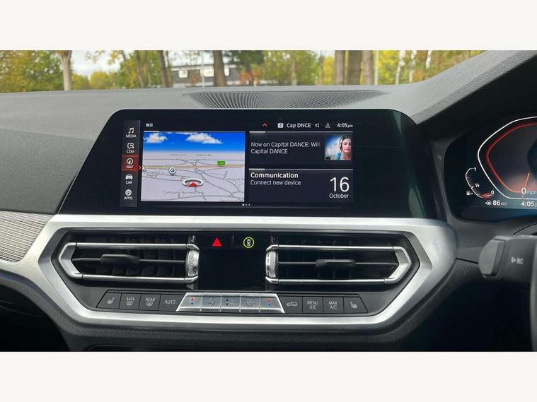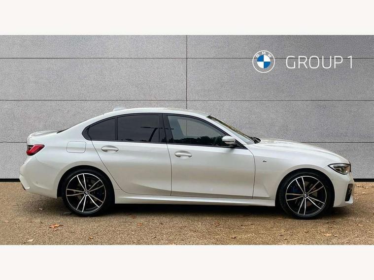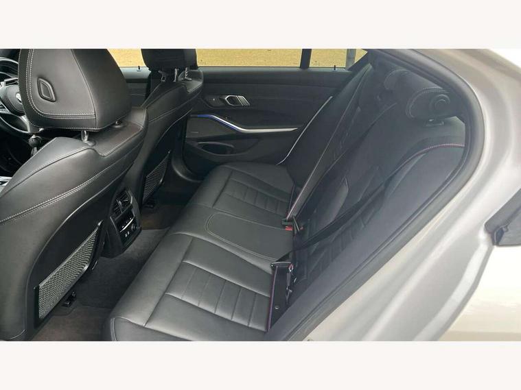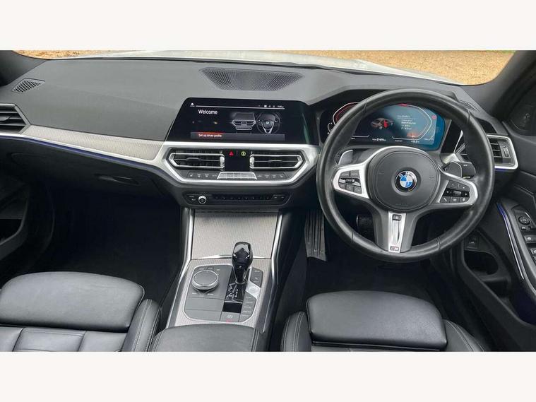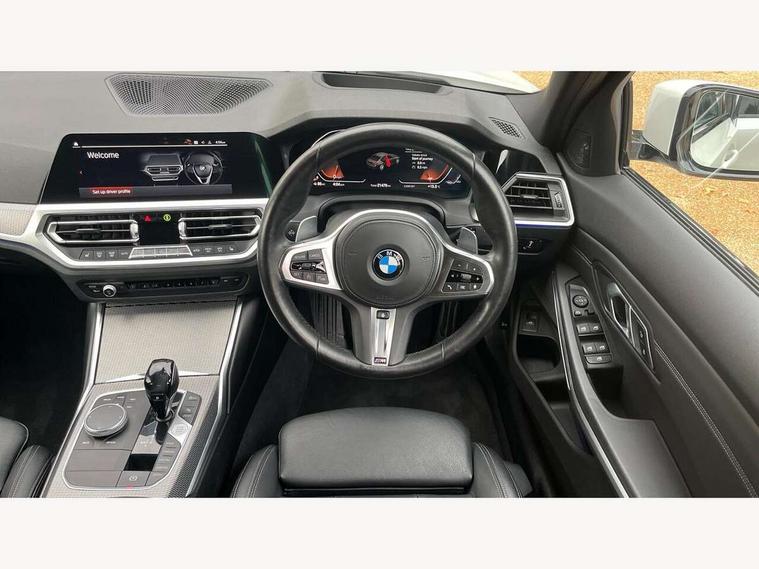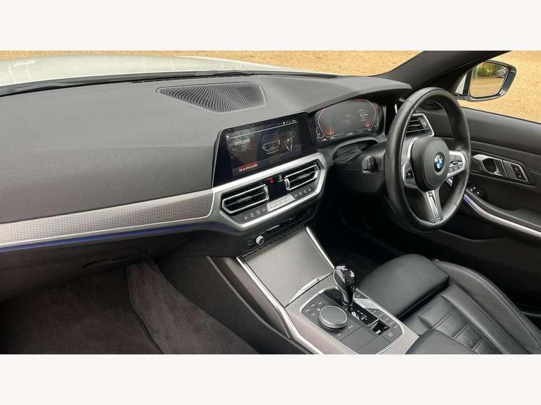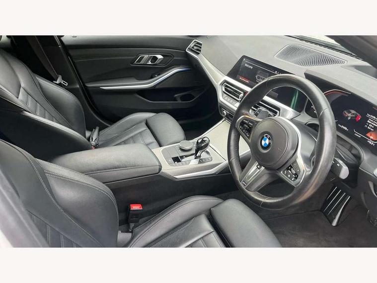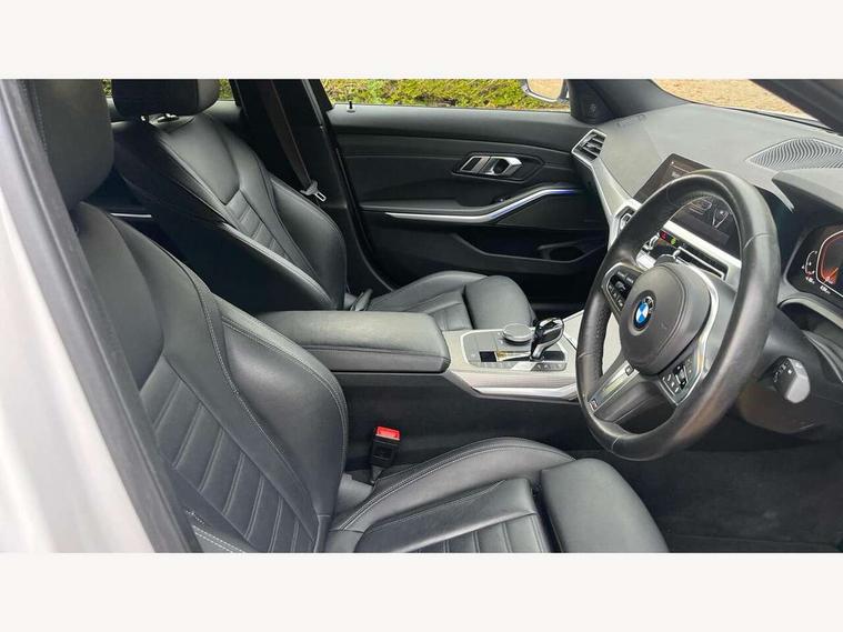 Active guard plus, Attentiveness assist, Auto start-stop, BMW ConnectedDrive online services, BMW iDrive controller on centre console, BMW Live Cockpit Professional sat nav system including 10.25" high resolution display and Intelligent Voice Assistant, BMW service history, BMW Teleservices, Brake pad wear indicator in front and rear, Check Control warning system for monitoring of lights and door/luggage compartment open warning, Condition based service, Electric power steering with Servotronic steering optimised at all speed ranges, Instrument cluster with speedometer with mph readout, tachometer, fuel gauge and oil temperature gauge, Integrated owners handbook, Oil sensor for level and grade, warning by check control system, On board computer - average speed+fuel consumption, service interval, clock/date, odometer/trip meter, outside temperature display and ice warning, Optimum shift indicator, Personal Profile - automatic lock when driving away selectable, Variable sport steering, Balanced 50/50 weight distribution, Battery cut-out switch, Drive performance control - ECO PRO, comfort and sport modes, Larger capacity fuel tank, M sport suspension, Petrol Particulate Filter, Sport automatic transmission with steering-wheel mounted gearshift paddles and launch control, Stroke dependent dampers, DAB tuner, Electronic service booklet, Acoustic glazing, Active airstream chrome frame kidney grille with 8 high gloss black vertical slats, Automatic headlight beam throw control with load dependent regulating reaction, dynamic compensation of braking dive and acceleration squat, Black roof mouldings, Body colour - fuel filler flap, front and rear bumpers, door handles and mirror caps with integrated turn indicator + bottom segment in matt black, Dynamic brake lights, Electric windows - front and rear, with open/close fingertip control, anti-trap facility and comfort closing, Exhaust tailpipe - split left and right, Extended LED headlights, Exterior mirrors - electrically folding with anti-dazzle, Fading support, Front and rear bumper system with replaceable deformation elements, Front black door sill finishers with BMW designation, Green tinted heat protection glazing, High gloss shadow line exterior trim, Interior rear view electrochromatic mirror with automatic anti dazzle function, LED front fog lights, Lightweight engineering, M designation on front side panels, left and right, Matt black exterior B pillar, Model designation on right side of tailgate, Rain sensor with automatic headlight activation, Rear wiper, Shark fin antenna, Two part LED tailights in L-shape with components in smoked glass, brake light, LED turn indicator and rear fog light, Visible VIN plate, Welcome lights in interior and door handle area, Windscreen wipers with integrated washing jets, 12V power socket in front storage compartment, 2 front cupholder in centre console with clamping elements and matt black inlay, 3 rear seats with non folding headrests with 3 point seat belts, 3 zone automatic air conditioning, 4 pieces lashing eyelets in luggage compartment, 40:20:40 split folding rear seat with loading system, Ambient lighting with welcome carpet light, Anthracite headlining, Armrest integrated in front and rear door trim + front centre console armrest, Centred top Luggage compartment lights, Four grab handles integrated in roof lining, Front and rear door exit lighting (left / right), Front and rear door pockets, Front and rear reading lights, Front and rear velour floor mats, Front head restraints, Front sport seats, Heated driver and front passenger seats, Height adjustable mechanically and infinitely variable steering column, Illuminated armrest storage compartment, Illuminated glove compartment with separate small compartment, Interior lighting - front centre over interior mirror with soft light, rear centre and front and rear footwell lighting, M Sport multifunction leather steering wheel, Make-up mirror lights, Rear centre armrest with 2 cupholders, Rear centre console with storage compartment and ventilation grille, Sunvisors with vanity mirrors and ticket pocket, Toolkit located in luggage compartment, Connected pack professional - 3 Series Saloon/Touring, M Aerodynamics pack - 3 Series Saloon/Touring, 2 tone horn, BMW emergency call, Brake energy regeneration, Braking pre-tensioning, Child proof locking system in rear door, Child seat ISOFIX attachment rear outer seats, Coasting in idle in ECO PRO mode, Crash sensor activating of airbags, Unlocking doors, hazard warning lights, fuel cut off, interior lighting+activation of safety battery terminal clamp, Driver and front passenger side airbags, integrated in the door side seat backrest bolsters for all seat variants, Driver/Front Passenger airbags, Dry braking, Dynamic brake control, Dynamic stability control + (DSC+) - Anti-lock Braking System (ABS) with brake assist and cornering brake control + Automatic Stability Control (ASC), Dynamic Traction Control - DTC, Electric parking brake including automatic hold function and automatic release of the parking brake when driving off, Electronic differential lock control (EDLC), Front passenger manual airbag deactivation, Head airbags for all 4 outer seats, Hill start assist, Seat belt security check for driver and front passenger, Side impact protection, Three 3 point seat belts on all seats including front belt stopper, pyrotechnic belt tensioners and belt force limiters, Tyre pressure monitoring with three level warning strategy, Ventilated front and rear disc brakes, Warning triangle and first aid kit, Alarm system (Thatcham 1) with remote control and electronic engine immobiliser, Central locking switch for all doors, fuel filler cap and luggage compartment, Remote control with integrated key one button open/close vehicle and windows, sole opening of the luggage compartment lid and panic mode, Start/stop button with Comfort Go keyless engine start and auto Start/stop deactivation button, Vehicle key with M sp