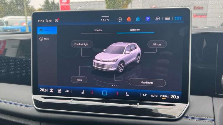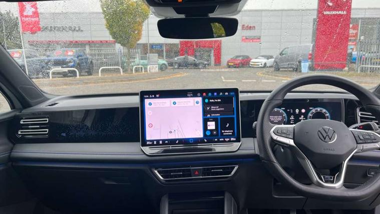 Adaptive cruise control ACC including speed limiter, Advanced driver attention and drowsiness monitor, App-Connect incl. App-Connect Wireless for Apple CarPlay and Android Auto, Area view camera [PAV], Bluetooth phone integration system, Comfort drive travel assist, Digital Cockpit Pro - 10.25" high resolution dash display screen with customisable menus and information, Dynamic road sign display, E-Sim card for online connectivity, eCall emergency call service, eCall emergency call system, Extended safety system (proactive passenger protection system), Full electric tailgate operation, Head up Display, Inductive smartphone charging without external antenna connection, Lane change system, Side assist, Rear traffic alert and Exit warning system, Lane keeping system Lane Assist, Multifunction front facing camera, Navigation system, Oncoming vehicle braking when turning including swerve support, Park assistance plus with front and rear parking sensors, Power assisted steering with speed sensitive, Rear view camera, Rev counter, Service interval indicator, Speed limit display, Start/stop system with regenerative braking, Trip computer, Voice control and enhancer, Warning signal and warning light for front and rear seatbelts not fastened, Wireless App-Connect, Front wheel drive, 15" Infotainment display, 8 Speakers, DAB radio, Diversity antenna for FM reception, Ambient lighting with logo projection, Auto dimming interior rear view mirror, Automatic headlight control system, Body colour door handles, Body coloured door mirrors with integrated indicators, Chrome moldings on the side windows, Coming/leaving home lighting function, Dynamic headlight range control with dynamic cornering light, Exterior mirrors power folding, auto-dimming on drivers side with surround lighting and memory feature, Front and rear electric windows, Heat insulating darkened glass in side and rear windows, Heated windscreen washer jets, High Beam Assist, automatic sensing for switching between dipped and main beam, High level 3rd brake light, High-resolution matrix beam plus digital projection, Highway light, Illuminated door handle recesses, Illuminated lightline between headlamps and illuminated door handle recesses, IQ.Light - HD matrix headlamps with poor weather light, entry and exit lighting, Laminated safety glass windshield, heat and sound insulating, LED rear lights with welcome farewell lights with illuminated Volkswagen Logo, LED separate daytime running light, Rear fog light on one side, reversing light on both sides, Rear side wing doors, Rear wiper, Remote electrically foldable door mirrors, puddle lights and reverse activated passenger's door mirror, 12V outlet in center console rear and in luggage compartment, 12V socket in centre console, 2 USB-C ports in the front, 2 USB-C charging sockets on the centre console in rear, charging capacity up to 45 W, 3 bench rear seats in 2nd row, 3 rear headrests, 30 colours options interior ambient lighting, Air Care Climatronic 3 zone automatic climate control with enhanced air filter and controls in the rear, Black roof lining, Brushed stainless steel pedals, Carpet mats, front and rear, Centre console with illuminated storage compartment with sliding cover and two drinks holders, Door and side trim panel with leatherette insert, Door sill protectors, Drivers seat with manual adjustment of seat travel and height and backrest angle with thigh support longitudinally sliding, Front centre armrest, Front integrated head restraints, Front massage seats, Front sports comfort seats, Heated front seats, Heated steering wheel, Height adjustable front seats, ISOFIX anchors for child seats on outer rear seats and front passenger seat compatible with i-Size, Leather wrapped multifunction steering wheel with paddle shift, Mechanical rear seat release, Power adjustable lumbar support in front, Rear bench seat asymetrically split folding, longitudinally movable and folding with load-through hatch and center armrest, Single front passenger seat, Sun visors with illuminated vanity mirrors, Variable luggage compartment floor, 3 point seat belt for centre rear seats, 3 Point seat belts in front with pretensioners, 3 point seatbelts in outer rear with ECE label, Autonomous emergency braking front assist with pedestrian and cyclist monitoring, Driver/Front Passenger airbags, Electronic parking brake with auto hold, Front disc brakes, Front passenger airbag deactivation, Impact bar in doors, Manual rear child locks, Rear disc brakes, Two tone horn, Tyre pressure loss indicator, Warning triangle, Anti theft alarm system with interior monitoring, backup horn and towing protection, Anti theft wheel bolts, Central locking system keyless entry, Chrome elements on the mirror switch and power window switches, door pulls interior door handle in matte chrome, Decorative inserts, Tool kit for tyre mobility set,
