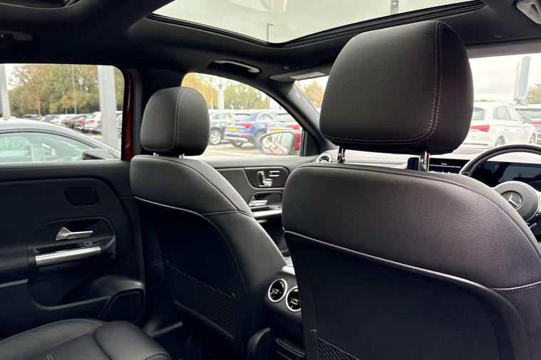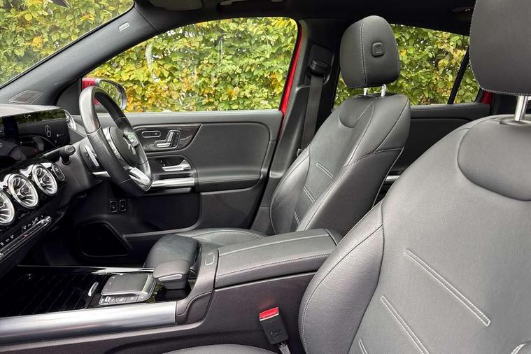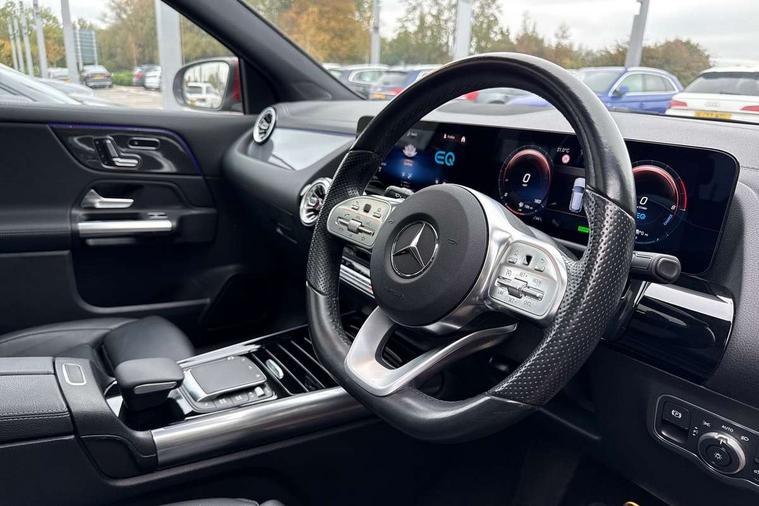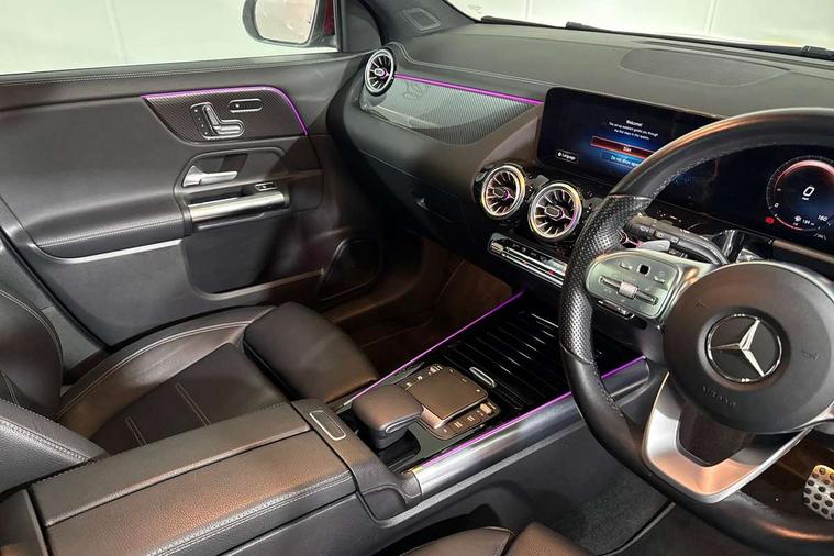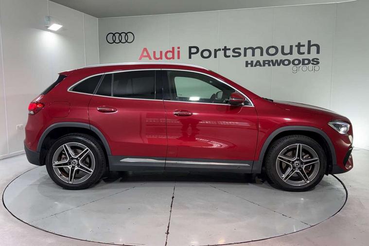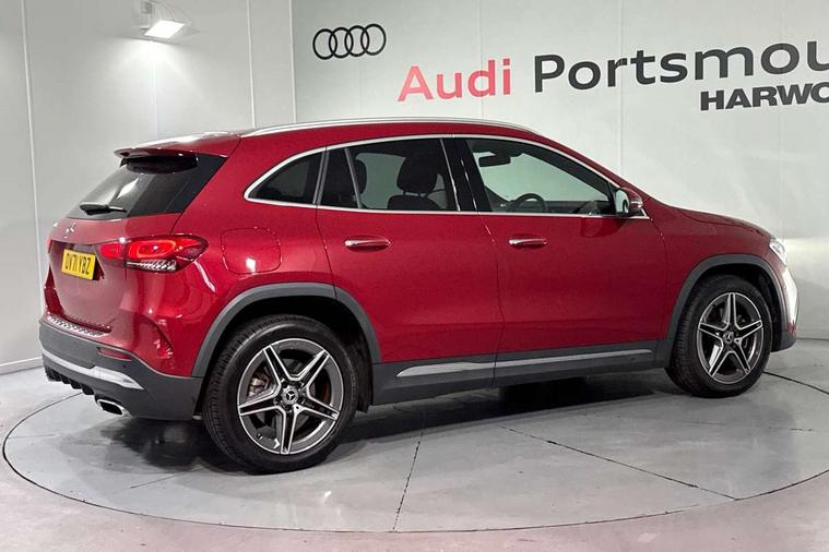 10.25 inch touchscreen media display, 10.25" Digital instrument cluster display screen, Acoustic ambient protection, Active lane keeping assist, Attention assist, Direct steering, DYNAMIC SELECT with a choice of driving modes (ECO, Comfort, Sport and Individual), ECO start/stop function, Fluid level warning indicator for fuel, oil, coolant and washer fluid, Hard-disk navigation, Hey Mercedes Voice activation, Lamp failure indicator, Mercedes me connect including emergency call system, accident recovery, breakdown management and maintenance, Mercedes me remote services, Multi function trip computer, Outside temperature gauge, Owners manual and service booklet in English, Pre-installation of private car share, Radio aerial integrated into front and rear windshields, Remote and charging services plus, Service indicator (ASSYST), Smartphone integration with Apple CarPlay and Android auto, Status display for rear seat belts in instrument cluster, Traffic sign assist, 5m charging cable for wall box/public charging stations(mode 3), 7.4 kW onboard charger, Charging system - AC charging system rated at 7.4 kW, Comfort suspension, Mode 2 charging cable with 3 pin plug, Rear axle multi-link, 2 USB ports (type C) in rear stowage compartment and one in front of center console, Bluetooth connectivity including audio streaming, DAB Digital radio, MBUX multimedia system, Media interface, Mercedes-Benz (225w) sound system with 10 speakers, Adaptive brake lights, Aerial for GPS, Aluminium roof rails, AMG front and rear apron, AMG specific/dual flow exhaust pipes in chrome (non-functional), Automatic headlamp activation, Beltline strips and weather strip in chrome, Black grained claddings with chrome parts, Body colour bumpers, Body colour door mirrors, Body coloured door handles with chrome insert for keyless entry, Car wash function, Dark privacy glass from B-pillar backwards, Electric front windows, Electric rear windows, Electrically adjustable and heated door mirrors with integrated LED indicators, Heated glass rear windscreen + timer control, Heated windscreen wash system, Interior mirror with black reading lamps and frameless, LED tail lights in two piece design, LED third brake light, Matt titanium grey front and rear apron trim, Multibeam LED headlamps with adaptive highbeam assist, Panoramic sunroof, Pre-installation for trailer coupling, Rain sensor windscreen wipers, Rear fog lights, Roof spoiler, Single lamella raditor grille with chrome dotted diamond grille and inlay, 12V power socket in centre console, 3 spoke multifunction sports steering wheel in nappa leather with flattened bottom and perforated grip area, 40:20:40 split folding rear seats with backrest, Adjustable head restraints, Air conditioning - Two zone thermotronic luxury automatic climate control with display, Ambient lighting in front headrests, AMG floor mats with AMG lettering in front, Auto Mercedes-Benz child seat recognition sensor, Black roof lining, Brushed door pulls in silver chrome, Charging socket, Courtesy light in boot, Front centre armrest with stowage, Galvanished gear shift paddles on steering wheel, Heated front seats, illuminated door sills with changeable cover, Illuminated glovebox, Interior lighting - 64 colour Ambient lighting, Leather trimmed gearknob, Luggage net on driver/front passenger seat backrest, Manually height and reach adjustable steering column, Multi-gesture touchpad control on center console, Pre-entry climate control, Sports pedals in brushed stainless steel with black rubber studs, Sports seats, Stowage compartment in centre console, Stowage compartment with retractable cover, Sunvisors with illuminated vanity mirrors, Twin front cup holders, Two outer rear seat isofix and top tether child seat fixing points, AMG body styling pack - GLA, Comfort seat pack - GLA Class, Interior lighting with light and sight pack - GLA, Load compartment pack - GLA, Mirror pack - GLA Class, Parking pack - GLA, 3 rear 3 point seatbelts, ABS with Brake Assist, Active bonnet pedestrain safety measure which detects an impact and raises bonnet by 65mm, Active brake assist includes forward collision warning system with autonomous braking, Adaptive brake assist with hold function and hill start assist, Bonnet with power domes, Brake pad wear warning indicator, Childproof locks manually operated for rear doors and electrically operated for rear power windows, Crash responsive emergency lighting, Driver and passenger head and side airbags, Drivers knee airbag, Dual stage driver/passenger airbags, Electronic parking brake, ESP curve dynamic assist, ESP with ASR, Front and rear seatbelt reminder, Front brake callipers with Mercedes Benz logo lettering on front, Front passenger seat occupancy sensor, Internally ventilated brakes with perforated brake discs at the front, Radar-based recuperation, Tyre pressure monitoring system, Warning triangle and first aid kit, Window airbags, Alarm system with immobiliser and interior protection -Thatcham category 1, Keyless Go starting function, Remote central locking and crash sensor with emergency opening function, Urban guard vehicle protection, Vehicle key with decorative surround in chrome, Carbon structure trim, Chrome air vent surrounds, 19" AMG 5 twin spoke light alloy wheels aerodynamically optimised painted in tantalite grey with a high sheen finish, Summer tyres, Tirefit tyre sealant kit,