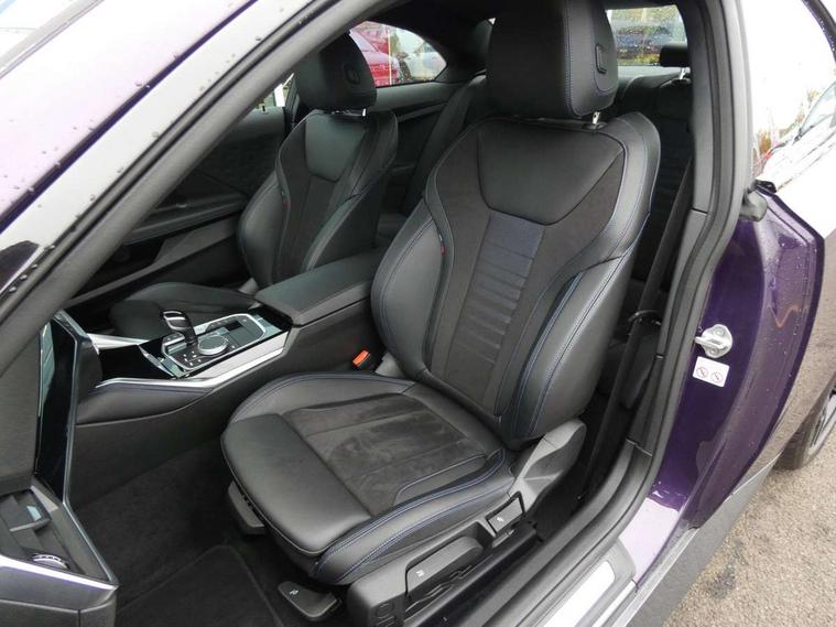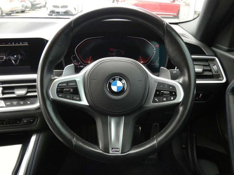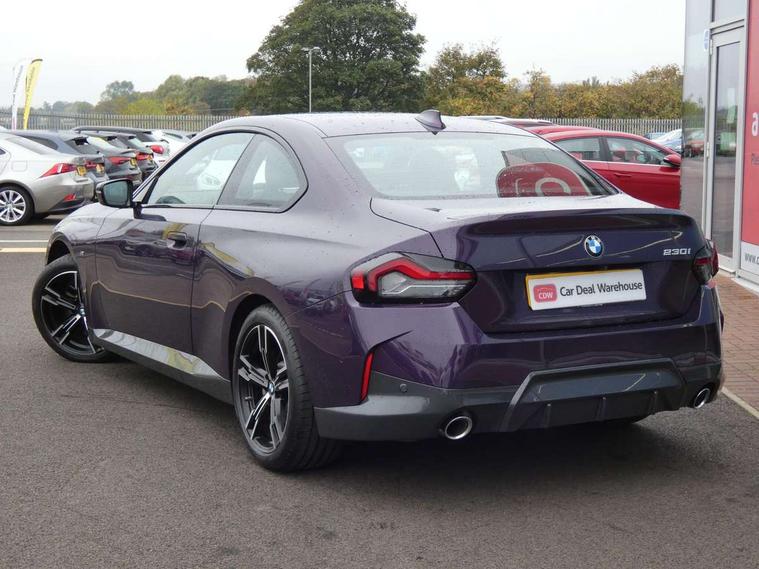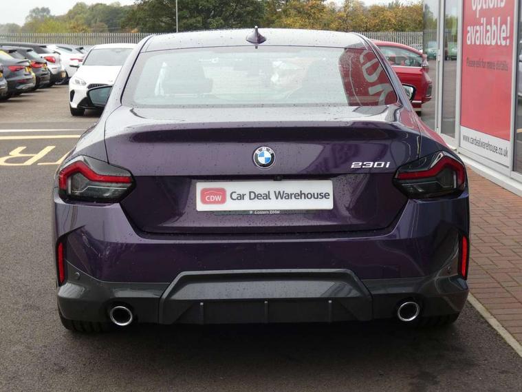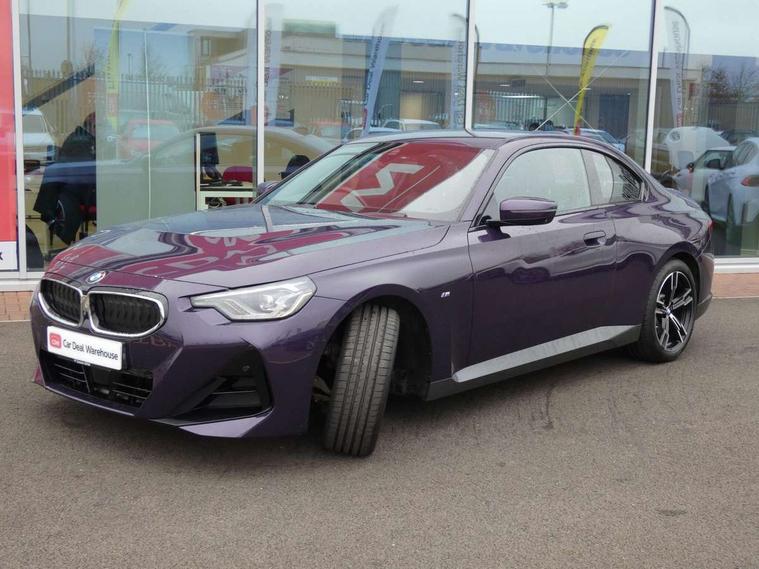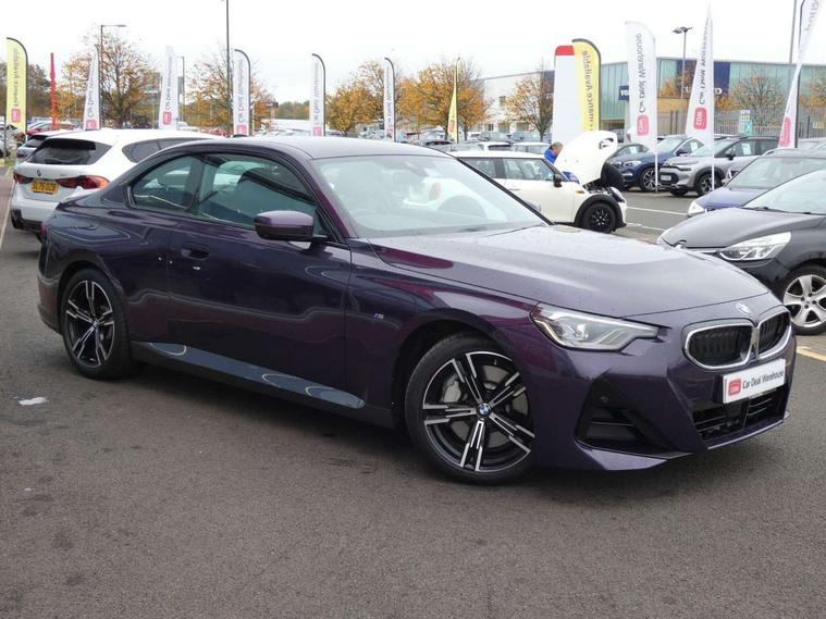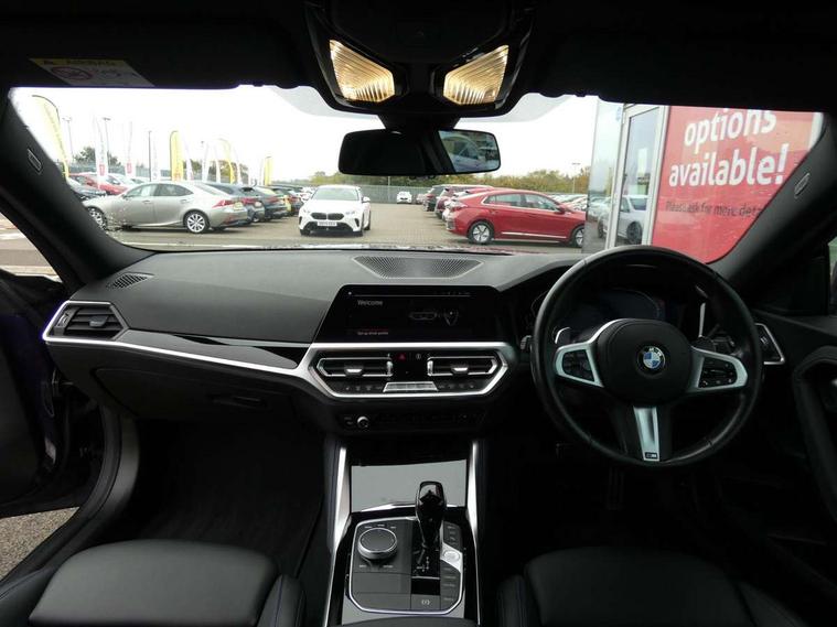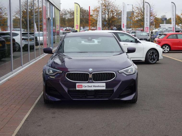 Attentiveness assist, Auto start-stop, Bluetooth, BMW ConnectedDrive online services, BMW Teleservices, Check Control warning system for monitoring of lights and door/luggage compartment open warning, Direct selection buttons, Drive off assistant, Eco pro mode, Electric power steering, Front/rear Parking distance control, iDrive controller with turn and press function, Integrated owners handbook, Intelligent functions, Live cockpit plus with nav function 12.3" instrument cluster and 14.9" centre display, Oil sensor for level and grade, Optimum shift indicator, Personal Profile, Touch operation on control display, Variable sport steering, Widescreen multi-media display, Aluminium lightweight construction, Balancer shaft, BMW TwinPower Turbo four-cylinder petrol engine, Double VANOS, Drive performance control with ECO PRO comfort + sport mode, Electronic differential lock, High precision injection, M sport suspension, Petrol Particulate Filter, Sport automatic steptronic transmission with gearshift paddles, manual gearshift time display, launch control, coasting idle ECO PRO/COMFORT modes, Twin scroll turbocharger with Valvetronic, DAB tuner, Acoustic windscreen wipers for reduced driving noise, Adaptive LED Headlights, Automatic windscreen wipers and automatic headlight, Automatically dimming rear view mirror, Body colour door handles flush with door surface, Body colour door mirrors, Body colour front and rear bumpers, Daytime running lights, Electric windows - front and rear, with open/close fingertip control and trap release, Exhaust tailpipes x2 - 90mm in left and right, Fading support, Front and rear bumper system with replaceable deformation elements, Front door sill finishers in black plastic with BMW designation, Front windscreen wipers with integrated washer jets, Green tinted heat protection glazing, High beam assistant, High gloss shadowline exterior trim in mirror triangle cover, mirror cover panel, mirror bezel and window border, High level third brake light, Indicators integrated int mirror housing, LED registration plate light, LED technology rear tail lights, brake lights and turn indicators, Lightweight engineering, Model designation on right side of tailgate, One piece kidney grille with hight gloss chrome surround, Rear boot, Rear fog lights, Reversing light in rear light cluster, Shark fin antenna, Single part LED rear lights with smoked glass components, Trailer stabilisation logic, Visible VIN plate, 12V power socket in front centre console with blanking plug, 2 cupholders in front centre console, 3 zone automatic air conditioning, Ambient lighting, Compartment in front of cupholder, Conditioned based service, Driver seat backrest width adjustment, Front and rear side armrests integrated into door trim, Front armrest, Front door pockets, Front head restraints, Front sport seats, Heated front seats, Illuminated glove compartment with separate small compartment, M headliner Anthracite, M sport leather steering wheel, Manually adjustment steering wheel column, Rear seat backrest with manual 40:20:40 split folding, Rear seat centre foldable armrest with integrated cup holder, Single front passenger seat, Storage compartment between rear seats, Storage tray and compartment with cover in centre console, Sun visors with vanity mirrors and insert tab, Through loading system with 40/20/40 split folding 2 rear seat in 2nd row, Two folding rear seat headrests, Velour floor mats, Additional storage compartment pack without USB - 2 Series Coupe, Connected pack professional - 2 Series Coupe, Interior and exterior mirror pack - 2 Series Coupe, M Sport exterior styling aerodynamics pack - 2 Series Coupe, 2 tone horn, Anti lock braking system (ABS) with cornering brake control, Automatic Stability Control (ASC), BMW emergency call, Brake drying, Child seat ISOFIX attachment for the two outer rear seats, Crash sensor activating of airbags, Unlocking doors, hazard warning lights, interior light, safety battery terminal, Deactivation of fuel pump in the event of a crash, Driver and front passenger airbags, Driver and front passenger side airbags, integrated in the door side seat backrest bolsters for all seat variants, Dynamic brake control, Dynamic stability control + (DSC+), Dynamic Traction Control - DTC, Electrically operated hand brake including automatic hold function and automatic release when driving off, Front and rear disc brakes, Front passenger airbag deactivation, Head airbags for all 4 outer seats, Manual deactivation of front passenger airbag, Seat belt security check for driver and front passenger, Seatbelt warning, Side impact protection, Three point seat belts on 4 seats including front belt stopper, pyrotechnic belt tensioners and belt force limiters, Tyre pressure sensor, Warning triangle and first aid kit, Alarm system (Thatcham 1) with remote control and electronic engine immobiliser, Central locking switch for all doors, fuel filler cap and luggage compartment, Deadlocking function system to all doors, Drive away locking system on all doors and luggage compartment, Locking wheel bolts, Start/Stop button (illuminated) in centre console with keyless engine start and Auto Start-Stop deactivation button, Two remote control key with integrated key - one button for open and close doors/fuel flap/tailgate and separate button for unlock luggage compartment, BMW mobility tyre sealing system, Electrically powered 12V compressor, Reduced rolling resistance tyres,