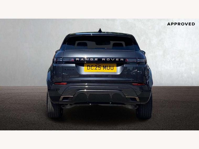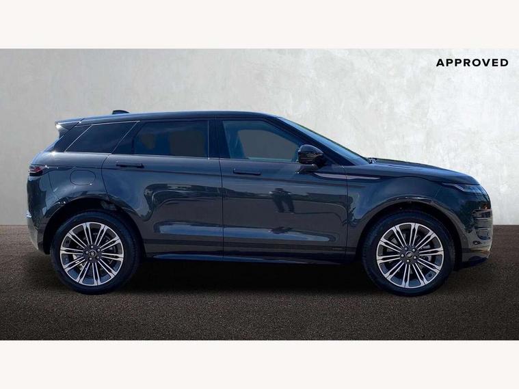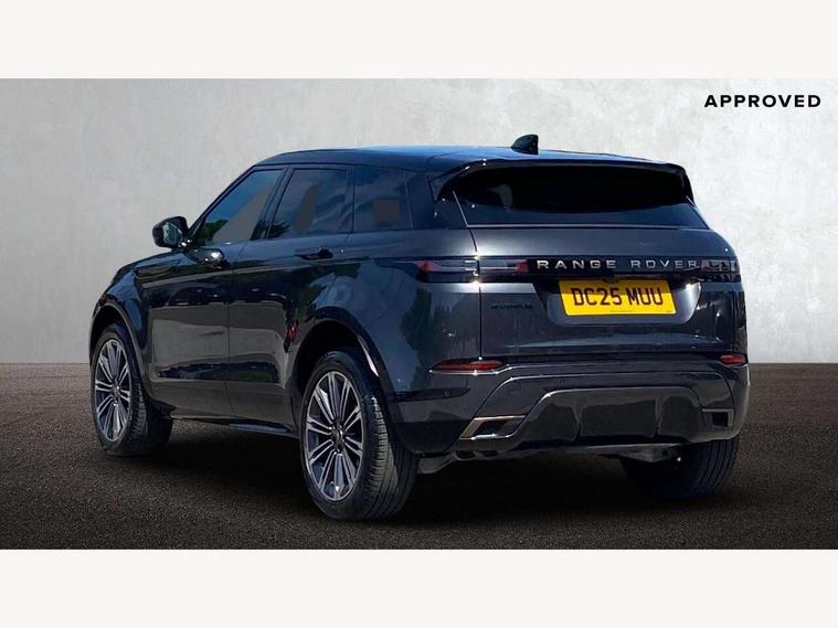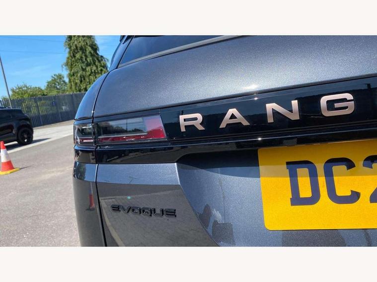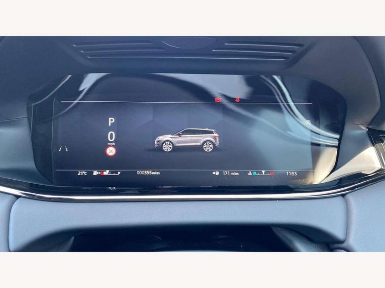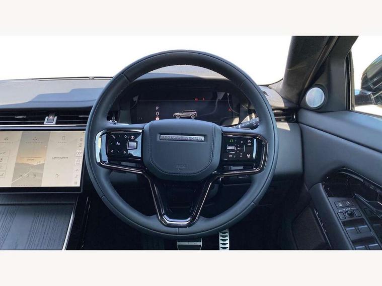 11.4" touch screen, 3D 360 degree surround camera with wade sensing, Adaptive cruise control, Android Auto, Apple car play, Blind spot assist, Bluetooth connectivity, Brake pad wear indicator warning light, Driver condition monitor, eCall emergency system, Eco mode, Electronic power assisted steering (EPAS), Front and rear parking sensors with auto brake, InControl remote, Interactive driver display, Land Rover InControl apps, Lane keep assist, Pivi pro connected includes diamond pivi variant, smart settings, connected navigation pro, nuance speech licence, Powered tailgate/boot lid, Rear collision monitor, Rear traffic monitor, Tailgate, Traffic sign recognition with adaptive speed limiter, Voice control system, Wireless device charging, All terrain progress control, Diesel exhaust fluid (DEF) large tank, Efficient Driveline, Large fuel tank, Terrain Response 2, Digital Audio Broadcast radio-DAB, Meridian surround sound system with 650W subwoofer and 14 speakers, Steering wheel mounted controls, Acoustic laminated windscreen, Auto headlights, Automatic headlight levelling, ClearSight interior rear view mirror, Electric windows with one touch open/close and anti trap, Flush deployable exterior door handles, Front and rear recovery eyes, Heated rear window with timer, Heated washer jets, Heated windscreen, Pixel LED headlights with signature DRL and LED tail Lights, Power fold, auto-dimming, heated door mirrors with approach lights and auto dimming driver side, Rain sensing windscreen wipers, Rear animated directional indicators, Rear fog lights, Rear side wing doors, Rear wiper, Side repeater indicators in mirror, Sliding panoramic roof with powered sunblind, Tailgate spoiler, Third brake light, Winter wiper park position, 14 way driver memory electric front seats with 2 way manual headrests + 4 way lumbar support, bolsters, 40:20:40 split folding rear seats with centre headrest and armrest, Ambient interior lighting, Bright metal pedals, Carpet mats, Customer configurable single point entry, Electrically adjustable steering column with memory function and easy entry/exit, Front and rear cupholders, Heated steering wheel, Isofix system on outer rear seats, Overhead lighting console, Overhead stowage for sunglasses, Passive front head restraints, Rear air vents, Rear head restraints, Satin chrome gearshift paddles, Single passenger seat, Sunvisors with illuminated vanity mirrors, Twin sliding front centre armrest, Power socket pack 2 - Evoque, 3 rear 3 point seatbelts, Anti-lock braking system (ABS), Brake hold function, Customer configurable autolock, DSC - Dynamic Stability Control, Electronic brake force distribution, Electronic parking brake, Electronic traction control, Emergency braking, Front and rear seatbelt reminder, Hill descent control, Hill launch assist, Low traction launch, Occupant protection assist, Passenger seat occupant detector, Power operated child locks, Roll stability control, Six airbags - Driver and passenger airbags/driver knee airbag/front side airbag and curtain airbags, Torque vectoring brake, Tyre pressure monitoring system, Alarm, Immobiliser, Intrusion sensor, Keyless entry, Locking wheel nuts, All season tyres,