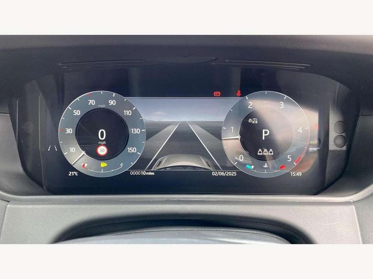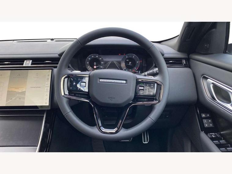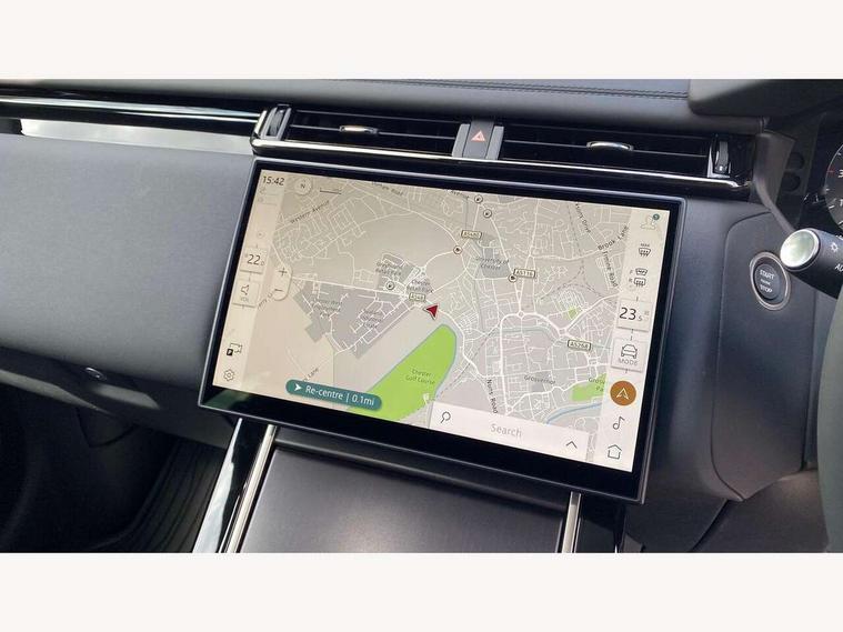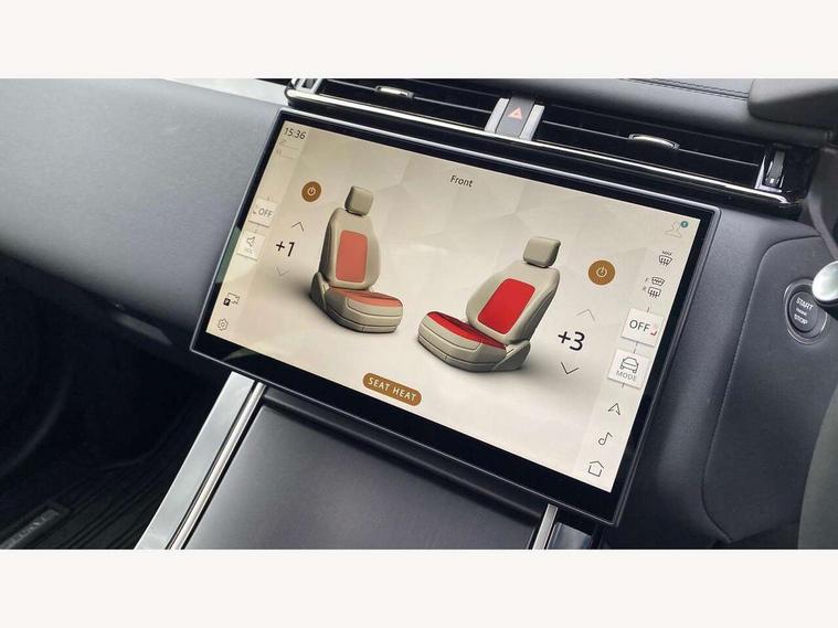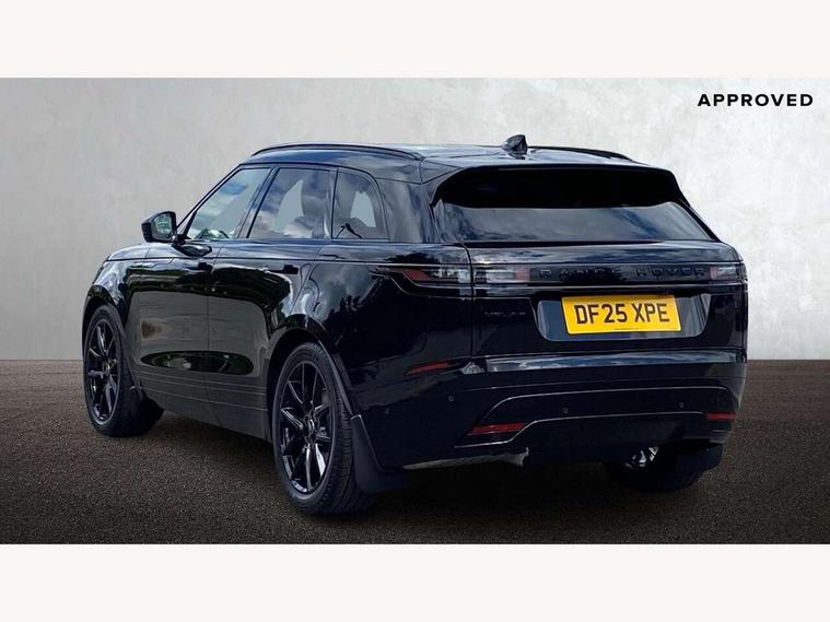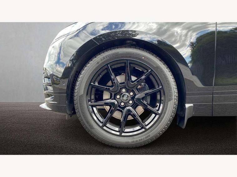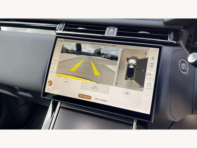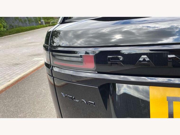 3D surround camera includes forward traffic detection and vehicle guidance, Android Auto, Apple CarPlay, Blind spot assist, Bluetooth connectivity, Brake pad wear indicator warning light, Driver condition monitor, eCall emergency call system, Front and rear parking aid, InControl remote, Land Rover InControl apps, Lane keep assist, Pivi pro with connected navigation, Rear traffic monitor, Service indicator, Speed proportional electronic power assisted steering (EPAS), Traffic sign recognition with adaptive speed limiter, Trip computer, Voice control system, Wade Sensing, Wireless device charging, 8 speed automatic transmission, All terrain progress control, Coil suspension system, Open differential with torque vectoring by braking, Single speed transfer box, DAB radio, Steering wheel mounted controls, 3rd brake light, Acoustic laminated windscreen, Auto dimming interior rear view mirror, Auto high beam assist, Automatic headlamp levelling, Automatic headlights, Body coloured bumpers, Boot protection plate, Electric windows with one touch open/close and anti trap, Flush deployable exterior door handles, Follow me home headlights, Heated rear window with timer, Heated washer jets, Heated windscreen, LED headlights with signature DRL, Metal front tread plates, Metal load space scuff plates, Power fold, auto-dimming, heated door mirrors with memory and approach lights, Rain sensor windscreen wipers, Rear animated directional indicators, Rear fog lights, Rear side wing doors, Rear wash/wipe, Tailgate/boot lid spoiler, Trailer stability assist, Velar badge, 14 way electrically adjustable front seats with driver's memory function, 3 seat bench in 2nd row, Ambient lighting, Bright metal pedals, Carpet mats, Driver/passenger sunvisors with illuminated vanity mirrors, Ebony morzine headlining, Electrically adjustable steering column, Heated steering wheel, Isofix system on outer rear seats, Loadspace cover, Overhead lighting console, Overhead stowage for sunglasses, Passive front headrests, Rear air vents, Rear centre headrest, Single front passenger seat, Twin front cupholders, Twin sliding front centre armrest, Online pack with data plan - Velar, Power socket pack 2 - Velar, 355mm Front and 325mm Rear brakes, 3x3 point rear seatbelts, Anti-lock braking system (ABS), Cornering brake control, Curtain airbags, Customer configurable autolock, Door side intrusion beams, Driver airbag, DSC - Dynamic Stability Control, Electronic brake force distribution, Electronic parking brake, Electronic traction control, Emergency braking, Front and rear seatbelt reminder, Hill descent control, Hill launch assist, Low traction launch, Passenger airbag, Power operated child locks, Rear airbags, Roll stability control, Side airbags, Tyre pressure monitoring system (TPMS), Global lock and unlock switch on driver door, Immobiliser, Intrusion sensor, Keyless entry, Lock only switch on front passenger door, Locking wheel nuts, Perimetric alarm, Remote central locking, All season tyres,