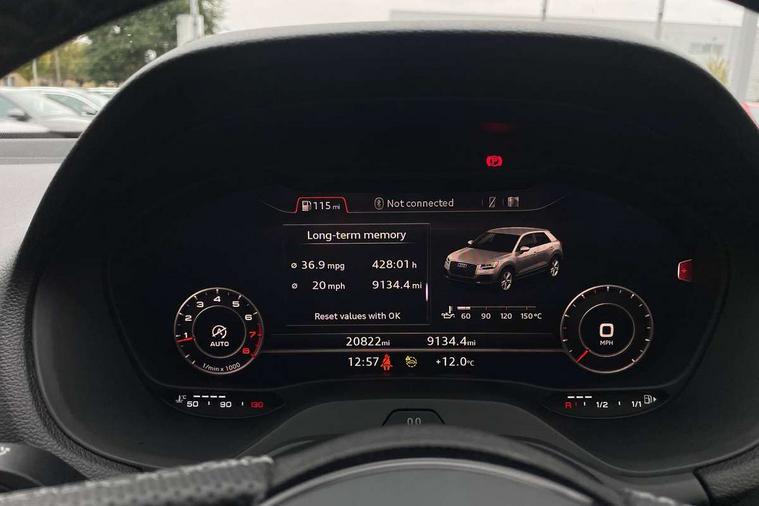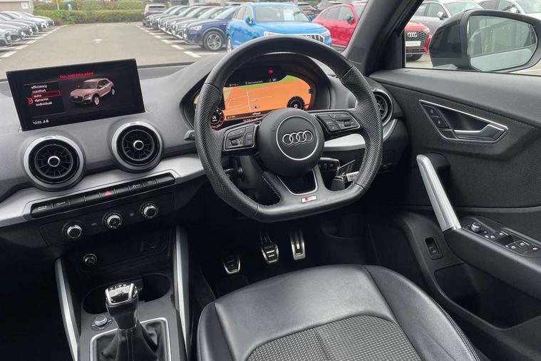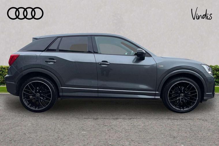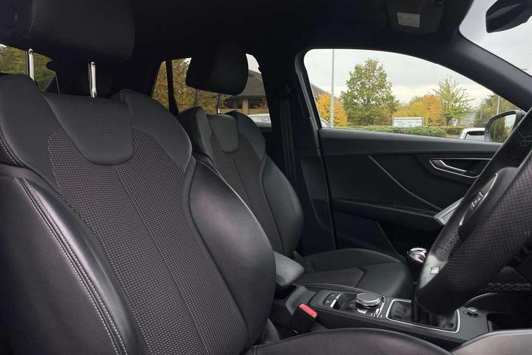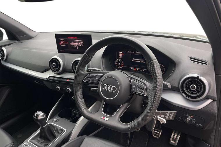 Audi connect navigation and infotainment includes innovative services, Audi connect remote and control connects your vehicle to your smartphone, Audi drive select, Audi drive select with efficiency, Audi smartphone interface, Audi virtual cockpit, Automatic start/stop system with recuperation, Bluetooth interface includes bluetooth audio streaming, Cruise control, E-call, MMI navigation plus with MMI touch, Power operated tailgate, Progressive steering, Rear parking sensors, 2 x SDXC card reader, 6 passive loudspeakers, DAB Digital radio, DVD Drive, Auto dimming rear view mirror, Black window trims, Bumper in full body colour paint finish, Electrically adjustable, folding, auto dimming and heated door mirrors with integrated LED side indicators, Front windscreen with grey tinted sunband, LED daytime running lights, LED headlights with LED rear lights, LED third brake light, Privacy glass - dark tinted rear and rear side windows from B-pillar backwards, Rear side wing doors, Rear wiper, Variable front intermittent wipers, Wheel arch trims in manhattan grey, 12v socket in front, 3 seat bench in 2nd row, 3 spoke flat bottomed multi-function leather sport steering wheel, 4-way electric lumbar support for front seats including seat height adjustment for both front seat, 60/40 split folding rear seat bench, Black cloth headlining, Front and rear head restraints, Front centre armrest, Front/rear floor mats, Height/reach adjust steering wheel, Illuminated door sill trims with S logo, ISOFIX child seat mounting in front passenger and rear outer seats, Single front passenger seat, Stainless steel pedals, Black styling pack - Q2, 3x3 point rear seatbelts, 6 airbags - Front, curtain and front side airbags, Electromechanical parking brake, Electronic stabilisation control including ABS, ASR and EDL, Front passenger airbag deactivation, Hill hold assist, Pre-sense front with pedestrian recognition, Seatbelt monitoring, Tyre pressure warning light, Warning triangle and first aid kit, Anti theft alarm, Anti theft wheel bolts, Electronically operated child locks, Remote central door locking, Aluminium interior element, Matt brushed aluminium trim inlays, Tool kit,