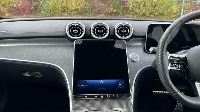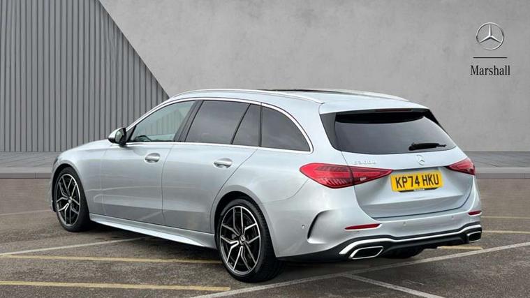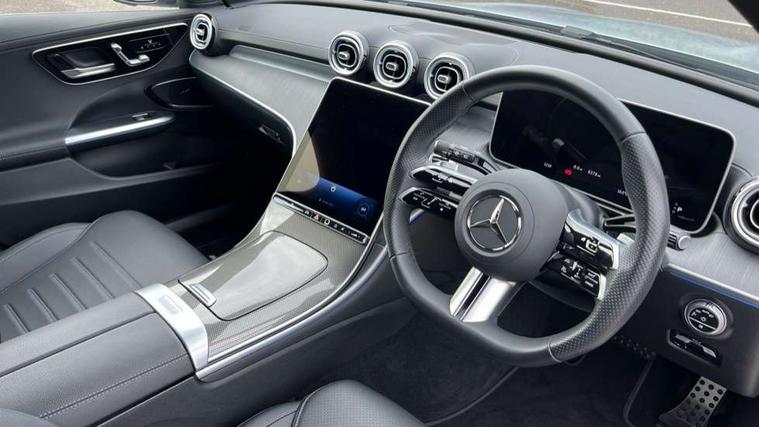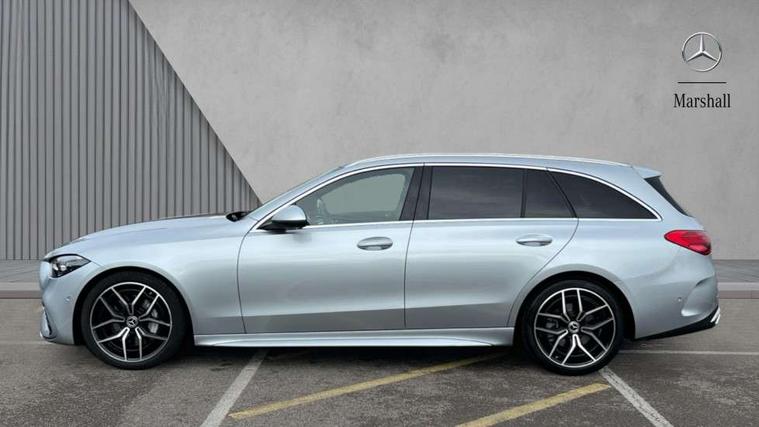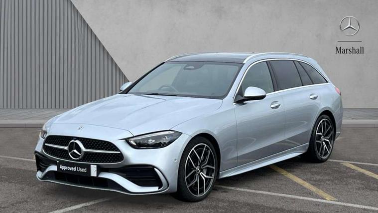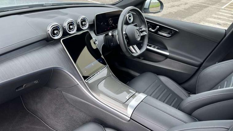11.9" high resolution multimedia colour display, 12.3" digital instrument cluster display, Active blind spot assist, Active brake assist plus, Active lane keeping assist, Attention assist, Cruise control with speedtronic variable speed limiter, DYNAMIC SELECT with a choice of driving modes (Comfort, ECO, Sport, Sport+, Individual), E-call, Easy pack automatic powered tailgate, Extended MBUX functions, Finger print sensor, Fluorescent jacket for driver, MBUX augmented reality for navigation, MBUX navigation premium, MBUX voice control activated by keywords "Hey Mercedes", Mercedes connect me, Mercedes me remote services, Outside temperature gauge, Pre-installation for digital key transfer, Remote boot release, Service indicator (ASSYST), Smartphone integration, Speed limit assist, Sports direct steer speed sensitive steering, Status display for rear seat belts in instrument cluster, Traffic sign assist, Wireless charging system for mobile devices, 66l fuel tank with increased capacity, 9G TRONIC 9 speed automatic transmission, Agility control sports suspension and lowered by 15 mm, Diesel particulate filter, DAB Digital radio, MBUX multimedia system, Adaptive brake lights, Adaptive high beam assist plus, AMG body styling front apron, rear apron and side skirts, AMG front bumper with sporty air intakes and chrome elements, AMG rear bumper with high gloss chrome elements, AMG side skirts in vehicle colour, B-pillar trim in glossy black, Body coloured bumpers, Body coloured door mirrors, Chrome beltline trim, Chrome roof rails, Daytime running lights, Digital light LED headlamps, Electric windows with one touch opening/closing and obstruction sensors, Electrically adjustable and heated door mirrors, Green tinted glass, Heat insulating dark tinted glass, Illuminated front door sill panels, LED Indicators, LED tail lights, LED third brake light, Noise acoustic glass, Powerdomes on bonnet, Privacy glass, Radiator diamond grille with integrated Mercedes Benz star and louvre silver with chrome pins, Radio aerial integrated into rear window, Rain sensor with automatic windscreen wiper activation, Rear side wing doors, Rear wiper, Two visible exhaust pipes integrated into rear bumper, 3 seat bench in 2nd row, 3 spoke flattened bottom AMG multifunction steering wheel in black nappa leather with chrome inserts and perforated leather in grip area, 40:20:40 split folding rear bench seat, Ambient lighting premium, AMG sports seats, Artico man-made leather upholstery, Audio and onboard settings control on multifunction steering wheel, Auto Mercedes-Benz child seat recognition sensor, Black air vents with silver chrome elements, Black floor mats with AMG lettering, Black roof liner, Door trim elements high gloss black with silver chrome surroundings and switches, Double cupholder in centre console, Electrically height/reach adjustable steering column, Folding rear seat backrest, Front and rear head restraints, Front centre armrest with storage compartment, Gearshift paddles on steering wheel, Heated front seats, Illuminated door sills with Mercedes Benz lettering, Illuminated glove compartment stowage, Load compartment cover, Overhead control unit in high gloss black, Rear top tether child seat ISOFIX attachment, Single front passenger seat, Sports pedals with stainless steel surfaces and rubber studs, Sunvisors with illuminated vanity mirrors, THERMATIC 2 zone automatic climate control, Interior lighting package - C Class, Memory package - C Class, Mirror pack - C Class, Parking package with 360 degree camera - C Class, Seat comfort pack - C Class, Stowage space pack - C Class, USB package plus - C Class, 3 rear 3 point seatbelts, Active bonnet pedestrian safety measure which detects an impact and raises bonnet, Adaptive brake system with HOLD function and brake drying in the wet, Anti-lock braking system (ABS), Black seat belts, Brake calipers with Mercedes-Benz lettering + perforated front brake discs, Child proof door locks, Drivers knee airbag, Drivers pelvis airbag, Dual stage driver/passenger airbags, Electric parking brake, Electronic Stability Programme (ESP), Front centre airbag between driver and front passenger seats, Front side airbags, Larger brake discs on front axle, Rear seatbelt warning indicator, Sports braking system, Tyre pressure monitoring system, Warning triangle and first aid kit, Window airbags for driver, front passenger and rear passenger, Central locking with interior switch, automatic locking and crash sensor with emergency opening function, Chrome surround in electric key, Dashcam, Keyless Go, URBAN GUARD vehicle protection (Thatcham Category 1) consisting of break-in, anti-theft alarm system (ATA), interior monitoring and tow-away protection, Artico man-made leather dashboard with contrast stitching, Centre console trim in metal weave, 19" AMG multi spoke light alloy wheels painted himalayas grey with high sheen finish, Noise reduced tyre with foam absorber, Summer tyres, TIREFIT with tyre inflation compressor,