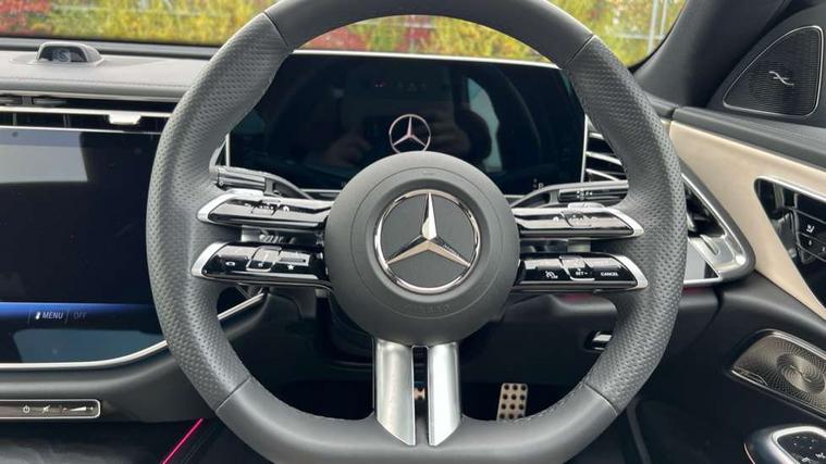 12.3" high resolution cockpit display, 14.4" high resolution central media display with latest MBUX generation, 5G Communications module, Attention assist, Blind spot assist, Bluetooth, Brake wear warning display, Direct steer speed sensitive steering, ECO start/stop function, Evasive manoeuvre support, Fluorescent jacket for driver, Hard disc navigation, Head up Display, MBUX navigation premium, MBUX voice control, Mercedes me connect including emergency call system, accident recovery, breakdown and maintenance management, Outside temperature display, Preinstallation for digital vehicle key, Preinstallation for live traffic, Remote bootlid closing, Remote Services Premium, Service indicator (ASSYST), Status display for rear seat belts in instrument cluster, Trip computer in multifunction display showing current fuel consumption, Wireless charging, Wireless smartphone integration with Apple CarPlay and Android auto, 48V Mild hybrid technology, 66 litre fuel tank, 9G TRONIC automatic transmission, Bluetec emission control, Diesel particulate filter, Integrated starter generator Gen 2, Residual engine heat utilisation, Sporty engine sound system, Burmester 4D surround sound system, DAB Digital radio, Preinstallation for MBUX Entertainment Plus, Sound visualisation, 3rd brake light, Acoustic glass, Adaptive brake lights, Aerial integrated in rear window, AMG Line exterior, Auto dimming driver's door mirror, Auto dimming rear view mirror, Digital air vent control, Electric folding door mirrors, Electric windows with one touch opening/closing and obstruction sensors, Electrically adjustable and heated door mirrors, Heat insulating privacy glass, Illuminated front door sills with Mercedes-Benz lettering, Illuminated radiator grille, LED daytime running lights, LED digital light with adaptive highbeam assist plus, Panoramic sliding sunroof, Pre-installation for roof rail systems, Rear boot, Rear side wing doors, Surround lighting with logo projection, 3 seat bench in 2nd row, Active ambient lighting, AMG brushed stainless steel sports pedals with rubber studs, AMG floor mats, AMG line interior, Automatic child seat recognition sensor, Central stowage compartment with USB socket for use with Android Auto and Apple CarPlay, Comfort seats, Courtesy lights in rear grab handles with reading light functionality, Folding rear seat backrest, Front centre armrest with stowage compartment, Gearshift paddles in galvanised silver, Glove compartment - lockable, air conditioned and illuminated, Heated front seats, Heated steering wheel, Instrument panel and door beltlines in artico nappa look leather, Leather upholstery, Luxury front head restraints, Multifunction sports steering wheel in nappa leather, Roof liner in black fabric, Seat occupancy sensor for front passenger seat, Single front passenger seat, Steering wheel touch control buttons for audio and onboard settings, Sunvisors with illuminated vanity mirrors, THERMATIC 2 zone automatic climate control, Acoustic comfort pack - E Class, Energizing plus package with air balance - E Class, Keyless Go comfort package - E Class, MBUX superscreen pack - E Class, Memory package - E Class, Night pack - E class, Parking package with 360 degree camera - E Class, USB plus package - E Class, Winter pack - E Class, 3x3 point rear seatbelts, Active bonnet pedestrian safety measure which detects an impact and raises bonnet, Adaptive brake system with HOLD function and brake drying in the wet, Anti-lock braking system (ABS), Automatic front passenger airbag deactivation, Central airbag, Childproof locks manually operated for rear doors and electrically operated for rear power windows, Driver and adaptive front passenger airbags, Electronic parking brake, Electronic Stability Programme, Hill start assist, ISOFIX child seat attachment points two outer rear seats, Knee airbags, Pedestrian protection, Pre-Safe anticipatory safety system, Tyre pressure monitoring system, Warning triangle and first aid kit, Window airbags, Alarm system/interior protection/immobiliser, Central locking with interior switch, automatic locking and crash sensor with emergency opening function, Digital vehicle key, Guard 360 degree vehicle protection plus, Increased anti theft protection, Urban guard vehicle protection plus, Centre console in black open pore ash wood trim and superscreen with passenger screen, 20" AMG multispoke design alloy wheels with black painted inserts and high sheen finish, Noise reduced tyres, Summer tyres, Tirefit,