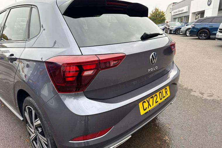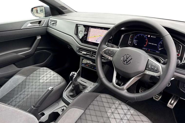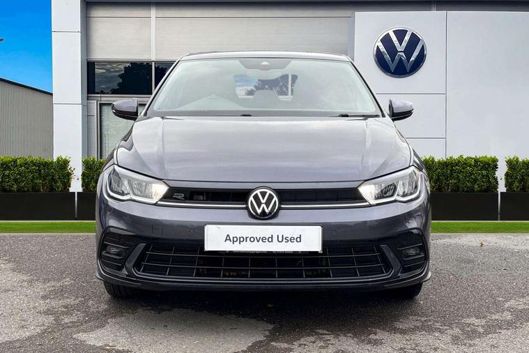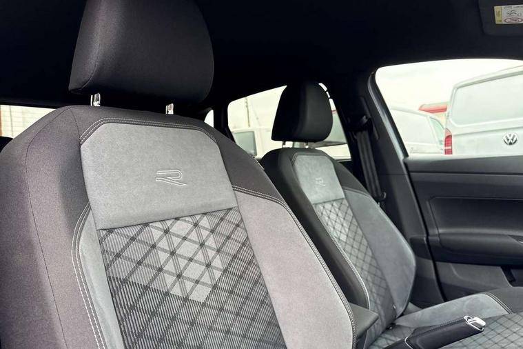 Adaptive cruise control without follow-to-stop and speed limiter, Bluetooth mobile phone interface, Digital Cockpit Pro with 10.25" Display, Driver alert system, Dynamic road sign display, Emergency call service, Power assisted speed sensitive steering, Preparation for We connect and We connect plus, Speedo and rev counter, electronic odometer, trip, service interval display and fuel gauge, Standard rear axle, Travel Assist - Lane keeping system and traffic jam assist, Travel assist including emergency assist, Trip computer, Warning signal and warning light for front and rear seatbelts not fastened, Washer fluid level indicator, Wireless app connect, Front wheel drive, Rear shock absorpion, Start-stop system with battery regeneration (recuperation - energy recovery during braking), DAB Digital radio, Diversity antenna for FM reception, Front and rear 6 speakers, Body colour bumpers, Body colour door handles, Body colour door mirrors, Electric front windows, Front scuff plates with R-Line logo, Heat insulating darkened glass in side and rear windows, Heat insulating glass windscreen, Power folding adjustable/heated exterior mirrors and front passenger exterior mirror lowering function, Rear electric windows, Rear fog light, Rear side wing doors, Rear tinted glass from B-pillar backwards approx 65% tinted, Rear windscreen washer and wiper with interval delay, Third brake light, 12V power socket in centre console, 2 USB-C ports in the front, 2 USB-C charging sockets on the center console in the rear, 3 rear head restraints, 60/40 split folding rear seat and rear seat bench not split, Air care climatronic air conditoning system with active combination filter and 2-zone temperature control, Black roof lining, Ceramique headliner, Chrome plated radiator grille inserts, air vent surrounds and light switch surrounds, Door and side trim panel, Driver and front passenger seat height adjustment, Driver/passenger sunvisors with illuminated vanity mirrors, Front + rear carpet mats, Front centre armrest, Front footwell illumination, Front seat backrest storage pockets, Front sports comfort seats, Handbrake lever handle in leather, Isofix child seat preparation easy-fit (for two outer rear seats, and front passenger seat) compatible with I-size, Karoso artvelours cloth upholstery, Leather trimmed gear knob, LED interior light with switch off delay and dimmer, 2 reading lights front and rear, Luggage compartment cover, Luggage compartment floor, Luggage compartment lighting, Lumbar adjustment for front seats, Multifunction steering wheel, Single front passenger seat, Stainless steel pedals, Standard pedal cluster, Light and sight pack - Polo R-Line/Black Edition, 3 point height adj front seatbelts + pretensioners, 3x3 point rear seatbelts, ABS, Driver and front passenger airbag with front passenger airbag deactivation, Drivers and front passengers safety optimised head restraints, ESC (Electronic stability control) + EDL (Electronic Differntial lock) and ASR (Traction control), Extended and predictive pedestrian/ cyclist protection, Front curtain and side airbags with center airbag, Hill hold control, Manual child lock in rear doors, Single tone horn, Tyre pressure loss indicator, Alarm with interior protection, Anti-theft alarm system with interior monitoring, backup horn, and towing protection, Anti-theft wheel bolts, Electronic engine immobiliser, Chrome applications on rotary light, mirror adjustment, window regulator switches, outlet with frame in black, Dark grey anodised matt decorative inserts in dash and front door panels, Low rolling resistance tyres,