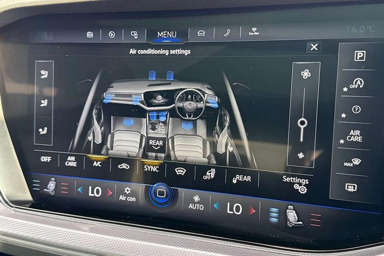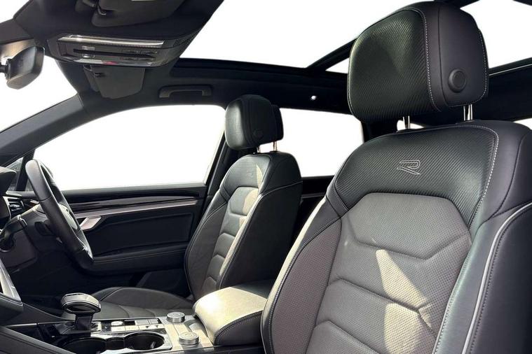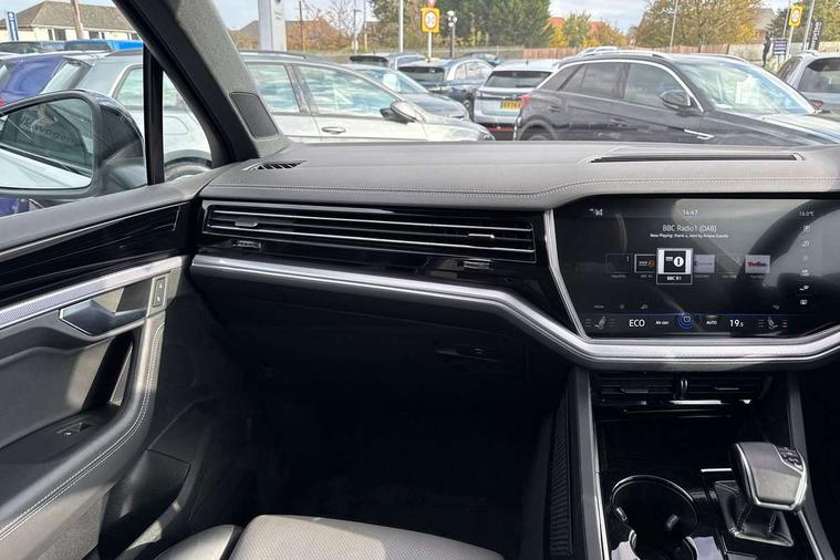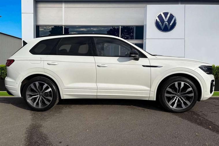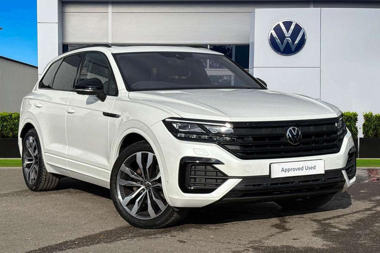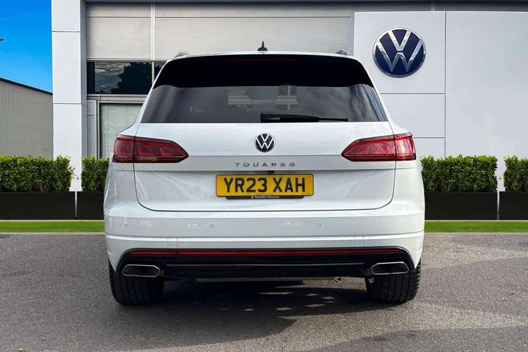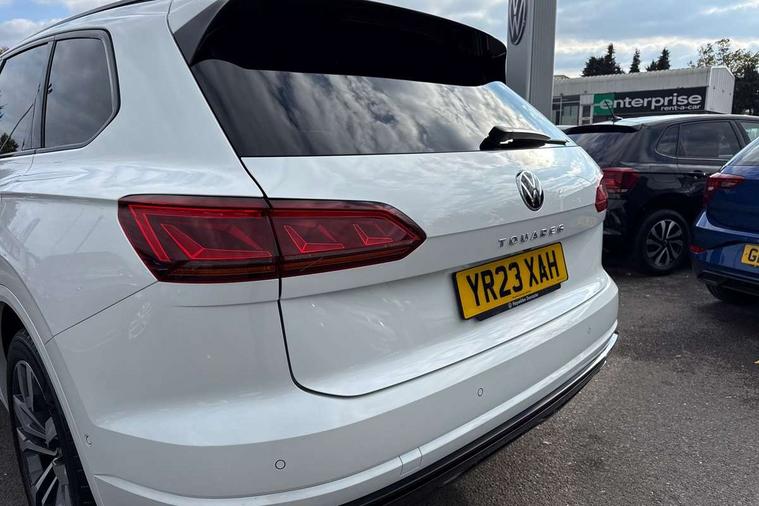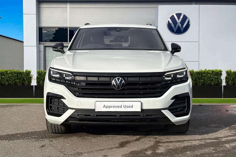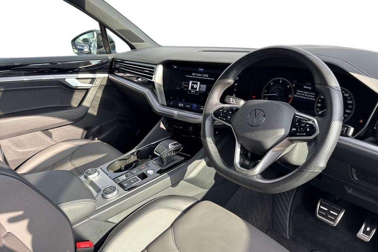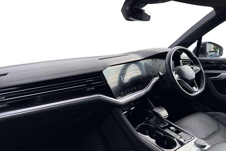 2D/3D map view, ACC - Adaptive cruise control with front assist, forward collision warning, distance monitoring, city emergency brake and speed limiter, Apple car play/Android Auto, Audible and visual fatigue detection system, Bluetooth hands free telephone connection, Car information display, Drive select with Damper control, Driver alert system, Driver profile selection, Dusk sensor, Dynamic road sign display camera controlled system with visual warning for traffic and road signs, eCall emergency system, Fully electric tailgate + keyless entry and start, Instrument cluster, MirrorLink, Multifunction camera, Multifunction computer premium with 7" colour display, One touch indicators with repeat function, Service interval indicator, Speed sensitive power steering, Start/stop system with regenerative braking, Tailgate power latch, Think blue trainer driver tips and journey analysis, Traffic sign recognition, Voice control system, Wireless Smartphone charger, 24 litre AdBlue tank, Torsen limited slip differential, DAB Digital radio, Dynamic navigation based on TMC+, Gesture control for infotainment system, Multi device interface (MDI) with illuminated USB-C connection, Music playback - MP3, WMA and AAC files, SD card slot, Simultaneous pairing of 2 compatible mobile devices, SMS functionality - read, compose and send SMS messages using touch-screen display, Title and cover art display, Volkswagen media control, Adaptive low beam for urban and motorway use, Auto dimming rear view mirror, Automatic coming/leaving home lighting function, Automatic headlights, Black anodised roof rails, Black door mirrors, Black rear diffuser, Black side window surrounds, Black upper and lower grille louvres extending into headlights and radiator grille, Body colour door handles, Body coloured wheel arches, C signature gloss black front air intake, Chromed tailpipe on the left and right integrated in the bumper with trapezoid design, Dynamic headlight range control, Electric front tilt/slide panoramic sunroof and fixed rear sunroof, Electrically power adjustable, heated, folding, auto dimming, front passenger exterior door mirror lowering function, Front and rear electric windows, Galvanised body, Gloss black finish B pillar, Gloss black rear diffuser, Headlight washers, Heat insulating glass in side and rear windows, Heated windscreen washer jets, IQ.Light-LED matrix headlight, daytime running light with dynamic cornering light and indicator, LED 3rd brake light, LED rear fog light, LED rear number plate lights, Plastic scuff plates in door apertures, Poor weather light, Puddle lights, Rain sensor, Rear side wing doors, Rear wiper, 12V socket in front and rear centre console and boot, 2 Coat hooks on B pillar, 3 rear head restraints, 3 seat bench in 2nd row, 3 spoke sport heated leather multi-function sports steering wheel with gear shift paddles - generation 2, 4 way adjustable front head restraints, 4 way electric lumbar support for driver and front passenger, 4 zone climate control, 40:20:40 split folding slide/recline rear seat, B pillar vents, Black lower edge of door extending sills, Branded points of interest, Double sun visor for drivier and passenger with LED illuminated vanity mirrors, Electric luggage compartment cover, Folding rear centre armrest with 2 cupholders, Front + rear carpet mats, Front centre armrest with storage box, Gear shift indicator, Height/reach adjust steering wheel, Illuminated air conditioned glovebox, Isofix preparation for 2 rear child seats, Jack and tool kit, Leather trimmed gear knob with gloss black inlay/aluminum trim, Leatherette door trim, LED luggage compartment lighting, Load through provision, Luggage compartment with load lashing rings, Plastic loading edge protection, Rear seat remote release levers, Single front passenger seat, Soul black headlining, Stainless steel pedals, Innovision cockpit pack - Touareg, 3 point front seatbelts with pre-tensioners, ABS, Active bonnet, Automatic post collision braking system, Curtain airbags, Driver/Front Passenger airbags, EBD + Brake Assist, EDL, Electronic parking brake with auto hold, ESC with ASR, Front seat side impact airbags, Hill descent control, Hill start assist, Passenger airbag deactivate switch, Seatbelt warning lamp and buzzer, Three 3 point rear seatbelts, Two tone horn, Volkswagen roadside assistance, Warning triangle and first aid kit, Alarm with interior monitoring in cab, backup horn and towing protection, Child security locks for front and rear doors, Electronic engine immobiliser, Remote central locking, Black decorative trims on the side windows, High gloss black centre console,