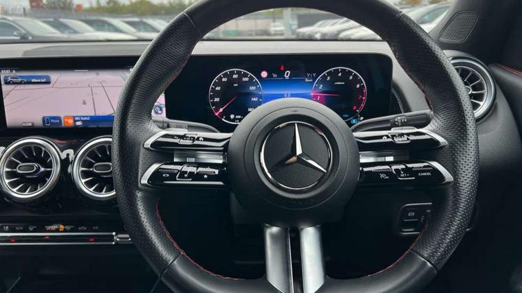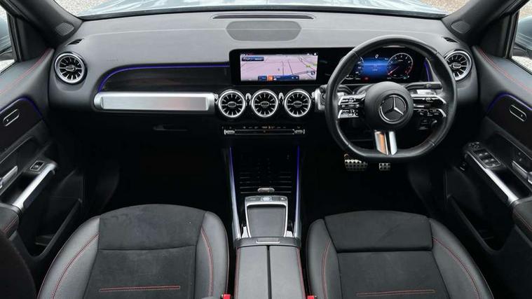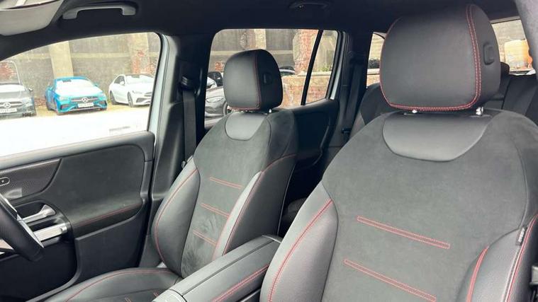 10.25 inch touchscreen central media display, 10.25" Digital instrument cluster display screen, Attention assist - Monitors steering behaviour and long journey fatigue, Blind spot assist, Bluetooth connection, Brake pad wear indicator warning light, Car wash mode, Direct steering, DYNAMIC SELECT with a choice of driving modes (ECO, Comfort, Sport and Individual), ECO start/stop function, Exit warning function, Fingerprint scanner, Fluid level warning indicator for fuel, oil, coolant and washer fluid, Hard disk navigation, Hey Mercedes Voice activation, Lamp failure indicator, Lane keep assist, MBUX navigation premium, Mercedes me connect including emergency call system, accident recovery, breakdown and maintenance management, Mercedes me remote services, Outside temperature gauge, Owners manual and service booklet in English, Pre-installation of private car share, Preinstallation for parking damage notification, Radio aerial integrated into front and rear windshields, Service indicator (ASSYST), Smartphone integration with Apple CarPlay and Android auto, Speed limit assist, Tailgate, Trip computer in multifunction display with current consumption indicator, Wireless charging, Comfort suspension with ride height lowering, Rear axle multi-link, DAB digital radio tuner, MBUX multimedia system, Mercedes Benz sound system (100 W) with 6 speakers, Pre installation for Mercedes Benz Link, Adaptive brake lights, Adaptive high beam assist, AMG front apron with front splitter in the colour of the vehicle with chrome trim element, AMG rear apron with visible tailpipe trim and chrome trim element, AMG specific/dual flow exhaust pipes in chrome (non-functional), Beltline trim and window line trim strip in high gloss aluminium, Black grained side sill trim with chrome inlay, Body coloured door handles, Electric adjustable and heated door mirrors with integrated LED side indicators, Front and rear electric windows, Headlamp assist automatic headlamp activation, Heat insulating dark tinted glass for rear side windows and rear window, Heated glass rear windscreen + timer control, High level LED third brake light, Interior mirror with black reading lamps and frameless, LED high performance headlamps with integrated LED daytime running lights, LED tail lamp, Polished aluminium roof rails, Radiator grille as a diamond grille with chrome pins and central Mercedes star, Rain sensor windscreen wipers with two sensitivity stages, Rear fog lamp, Rear side wing doors, Rear wiper, Single louvre in matt grey with chrome inserts and black highlights, Two visible tailpipe trim elements exhaust, Wheel arch liners in the colour of the vehicle, 3 seat bench in 2nd row, 3 twin spoke flattened multifunction steering wheel in nappa leather - horizontal twin spoke in high gloss black, vertical twin spoke in silver chrome, 4 way adjustable lumbar support, 40:20:40 split folding rear seats, Air vents with silver chrome surrounds, AMG floor mats, AMG sports pedals with brushed stainless steel surfaces and black rubber studs, Artico man-made leather/Microcut microfibre upholstery, Automatic child seat recognition sensor, Black roof lining, Fluorescent jacket, Front and rear headrests, Front centre armrest with stowage, Galvanised steering wheel gearshift paddles in silver chrome, Heated front seats, Height adjustable head restraints, Height/reach adjustable steering column, Interior lighting - 64 colour Ambient lighting, Luggage net on driver/front passenger seat backrest, Single front passenger seat, Sports seats, Stowage compartment in centre console with retractable cover and double cupholder and 12 V socket, Sun visors with illuminated vanity mirrors, THERMATIC automatic climate control, Third row of seats for two people on rear seat, Twin front cup holders, Two outer rear seat isofix and top tether child seat fixing points, Easy pack tailgate, Interior lighting with light and sight pack - GLB, KEYLESS-GO Comfort package - GLB, Mirror package - GLB, Parking Package with reversing camera - GLB, Seat comfort package - GLB, USB package plus - GLB, 3 rear 3 point seatbelts, Active bonnet pedestrain safety measure which detects an impact and raises bonnet by 65mm, Active brake assist includes forward collision warning system with autonomous braking, Adaptive brake assist with hold function and hill start assist, Airbags - kneebag for driver, Anti-lock braking system (ABS) with brake assist, Black seatbelts, Bonnet with power domes, Childproof locks manually operated for rear doors and electrically operated for rear power windows, Crash responsive emergency lighting, Curve dynamic assist, Driver and front passenger head and sidebags, Driver and front passenger windowbags, Dual stage driver and front passenger airbags, Electric parking brake, Electronic stability programme with acceleration skid control, Front and rear seatbelt reminder, Front brake callipers with Mercedes Benz lettering, Front passenger seat occupancy sensor, Perforated front brake discs, Tyre pressure monitoring system, Warning triangle and first aid kit, Guard 360 degree vehicle protection - Anti theft alarm system, tow away protection with visual, acoustic warning and alarm, Interior monitoring system, KEYLESS-GO starting function, Remote central locking and crash sensor with emergency opening function, Thatcham category 1 alarm system with immobiliser and interior protection, Carbon structure trim, 19" AMG 5 twin spoke light alloy wheels aerodynamically optimised, painted in high-gloss black and with a high-sheen finish RTG, Summer tyres, Tirefit tyre sealant kit,