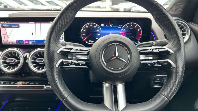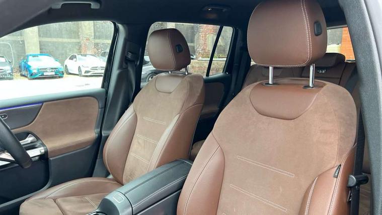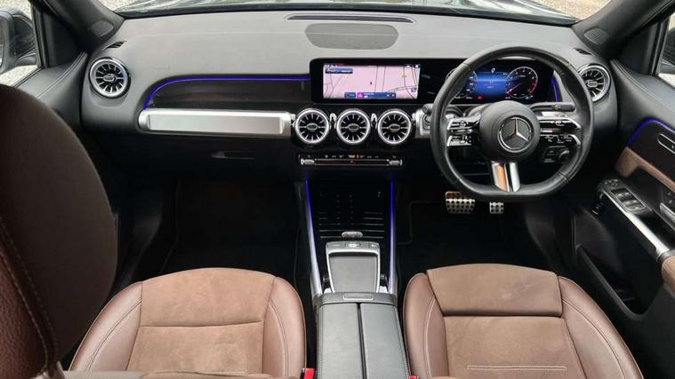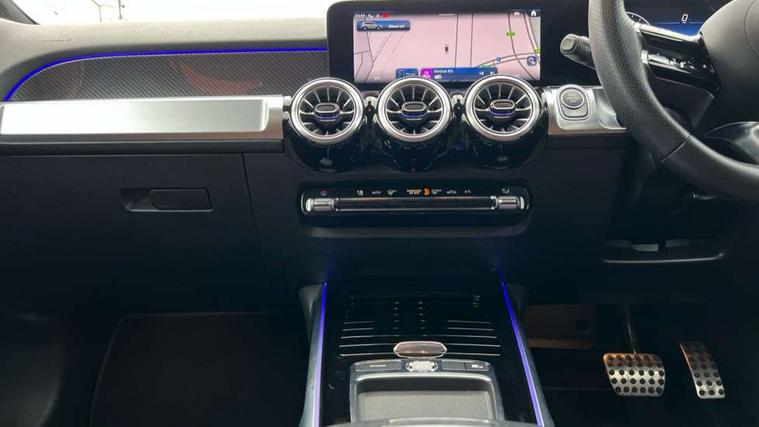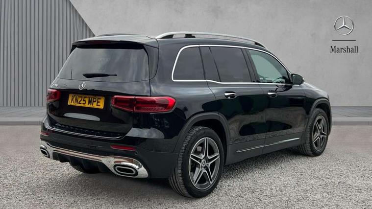 10.25 inch touchscreen central media display, 10.25" Digital instrument cluster display screen, Attention assist - Monitors steering behaviour and long journey fatigue, Blind spot assist, Bluetooth connection, Brake pad wear indicator warning light, Car wash mode, Direct steering, DYNAMIC SELECT with a choice of driving modes (ECO, Comfort, Sport and Individual), ECO start/stop function, Exit warning function, Fingerprint scanner, Fluid level warning indicator for fuel, oil, coolant and washer fluid, Hard disk navigation, Hey Mercedes Voice activation, Lamp failure indicator, Lane keep assist, MBUX navigation premium, Mercedes me connect including emergency call system, accident recovery, breakdown and maintenance management, Mercedes me remote services, Outside temperature gauge, Owners manual and service booklet in English, Pre-installation of private car share, Preinstallation for parking damage notification, Radio aerial integrated into front and rear windshields, Service indicator (ASSYST), Smartphone integration with Apple CarPlay and Android auto, Speed limit assist, Tailgate, Trip computer in multifunction display with current consumption indicator, Wireless charging, Comfort suspension with ride height lowering, Rear axle multi-link, DAB digital radio tuner, MBUX multimedia system, Mercedes Benz sound system (100 W) with 6 speakers, Pre installation for Mercedes Benz Link, Adaptive brake lights, Adaptive high beam assist, AMG front apron with front splitter in the colour of the vehicle with chrome trim element, AMG rear apron with visible tailpipe trim and chrome trim element, AMG specific/dual flow exhaust pipes in chrome (non-functional), Beltline trim and window line trim strip in high gloss aluminium, Black grained side sill trim with chrome inlay, Body coloured door handles, Electric adjustable and heated door mirrors with integrated LED side indicators, Front and rear electric windows, Headlamp assist automatic headlamp activation, Heat insulating dark tinted glass for rear side windows and rear window, Heated glass rear windscreen + timer control, High level LED third brake light, Interior mirror with black reading lamps and frameless, LED high performance headlamps with integrated LED daytime running lights, LED tail lamp, Polished aluminium roof rails, Radiator grille as a diamond grille with chrome pins and central Mercedes star, Rain sensor windscreen wipers with two sensitivity stages, Rear fog lamp, Rear side wing doors, Rear wiper, Single louvre in matt grey with chrome inserts and black highlights, Two visible tailpipe trim elements exhaust, Wheel arch liners in the colour of the vehicle, 3 seat bench in 2nd row, 3 twin spoke flattened multifunction steering wheel in nappa leather - horizontal twin spoke in high gloss black, vertical twin spoke in silver chrome, 4 way adjustable lumbar support, 40:20:40 split folding rear seats, Air vents with silver chrome surrounds, AMG floor mats, AMG sports pedals with brushed stainless steel surfaces and black rubber studs, Artico man-made leather/Microcut microfibre upholstery, Automatic child seat recognition sensor, Black roof lining, Fluorescent jacket, Front and rear headrests, Front centre armrest with stowage, Galvanised steering wheel gearshift paddles in silver chrome, Heated front seats, Height adjustable head restraints, Height/reach adjustable steering column, Interior lighting - 64 colour Ambient lighting, Luggage net on driver/front passenger seat backrest, Single front passenger seat, Sports seats, Stowage compartment in centre console with retractable cover and double cupholder and 12 V socket, Sun visors with illuminated vanity mirrors, THERMATIC automatic climate control, Third row of seats for two people on rear seat, Twin front cup holders, Two outer rear seat isofix and top tether child seat fixing points, Easy pack tailgate, Interior lighting with light and sight pack - GLB, KEYLESS-GO Comfort package - GLB, Mirror package - GLB, Parking Package with reversing camera - GLB, Seat comfort package - GLB, USB package plus - GLB, 3 rear 3 point seatbelts, Active bonnet pedestrain safety measure which detects an impact and raises bonnet by 65mm, Active brake assist includes forward collision warning system with autonomous braking, Adaptive brake assist with hold function and hill start assist, Airbags - kneebag for driver, Anti-lock braking system (ABS) with brake assist, Black seatbelts, Bonnet with power domes, Childproof locks manually operated for rear doors and electrically operated for rear power windows, Crash responsive emergency lighting, Curve dynamic assist, Driver and front passenger head and sidebags, Driver and front passenger windowbags, Dual stage driver and front passenger airbags, Electric parking brake, Electronic stability programme with acceleration skid control, Front and rear seatbelt reminder, Front brake callipers with Mercedes Benz lettering, Front passenger seat occupancy sensor, Perforated front brake discs, Tyre pressure monitoring system, Warning triangle and first aid kit, Guard 360 degree vehicle protection - Anti theft alarm system, tow away protection with visual, acoustic warning and alarm, Interior monitoring system, KEYLESS-GO starting function, Remote central locking and crash sensor with emergency opening function, Thatcham category 1 alarm system with immobiliser and interior protection, Carbon structure trim, 19" AMG 5 twin spoke light alloy wheels aerodynamically optimised, painted in high-gloss black and with a high-sheen finish RTG, Summer tyres, Tirefit tyre sealant kit,