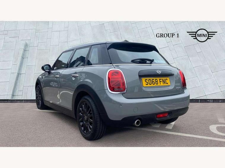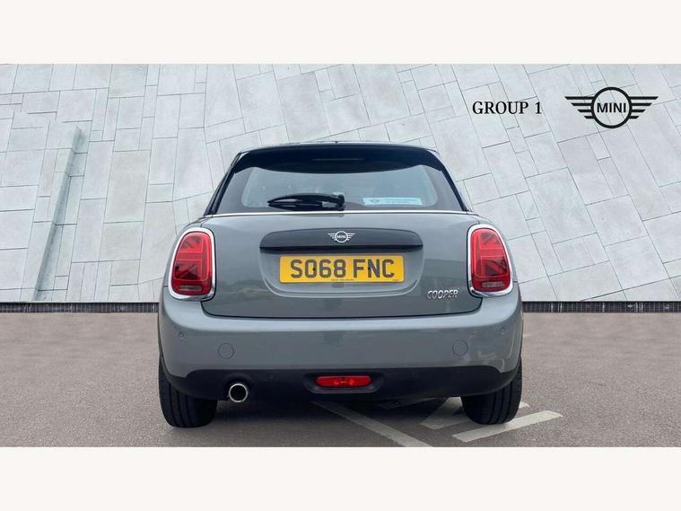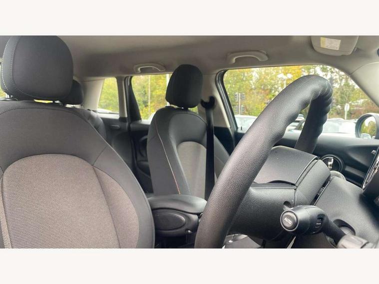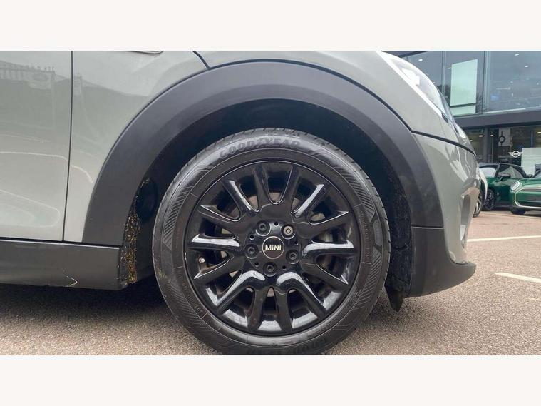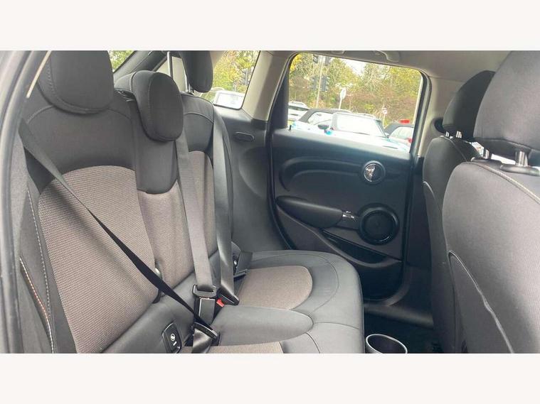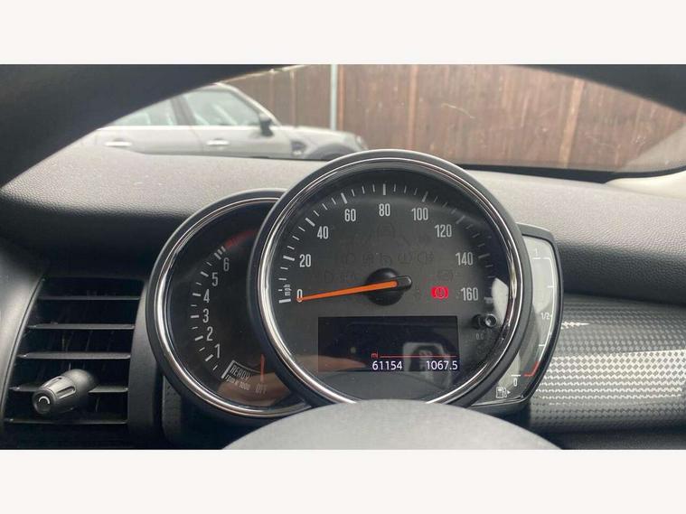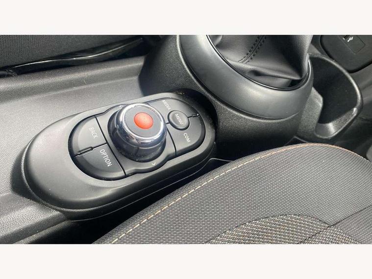 Compatible mobile phone bluetooth with audio streaming, Instrument cluster, Mini E-call, MINI TeleServices, On board computer, Service interval indicator, 6.5" touchscreen with LED ring, FM tuner and DAB digital radio, Automatic headlight activation switch, Body colour fuel filler cap, Chrome border high gloss black slats radiator grille, Dynamic brake lights, Electric front+rear windows, Heated rear window, Heated windscreen washer jets, LED headlight with closed ring and daytime driving lights, Left exhaust tailpipe with chrome finisher, Metal door sill strips with MINI imprint, Model logo Cooper on right of tailgate, Rain sensor window wipers, Rear fog lights, Rear LED lights with union jack design, Rear window wiper, Side scuttle panel with integrated indicator, Sun/heat protection glass, White indicator lenses, 12V Accessory socket in centre console, 4 lashing eyes in luggage compartment, 60/40 split folding rear seat, Chrome interior highlights, Colour line - Carbon black, Cupholders, Front and rear isofix with front passenger airbag deactivation, Glove compartment, Height and length steering column adjustment, Interior lighting with 12 basic colours selectable via toggle switch in roof, Leather gearshift lever and handbrake gaiters, Manual air conditioning, Mechanical seat adjustment, driver seat height adjust, forward/back and front seats backrest, Mini logo projection on floor from drivers exterior mirror, Multifunction steering wheel, Satellite grey headlining, Storage compartments in doors, Sunvisors with vanity mirrors, 3 point seatbelts on all five seats, 6 Airbags - front, side, head and seat belt tensioners, Anti-lock braking system (ABS), DSC - Dynamic Stability Control, Front and rear disc brakes, Hill start assist, Single tone fanfare horn, Tyre pressure monitoring system, Alarm system with tilt sensor, monitoring doors, bonnet interior and tailgate, Electronic vehicle immobiliser, Start/stop toggle with keyless go, Tool kit,