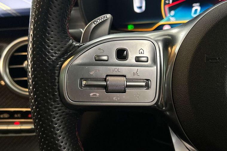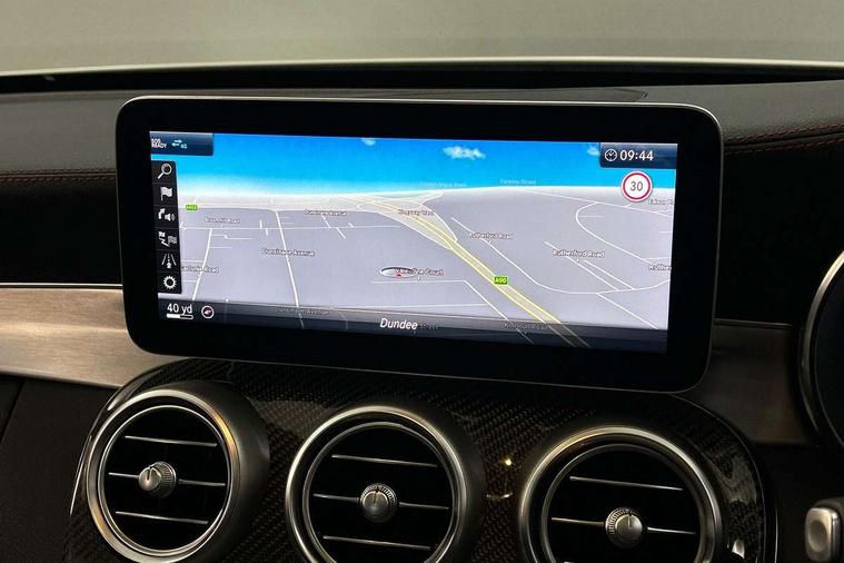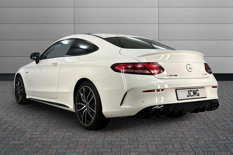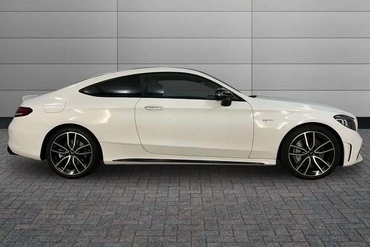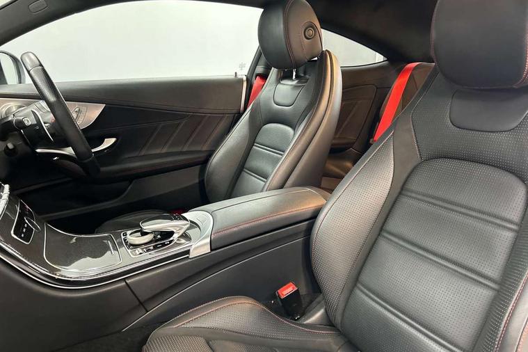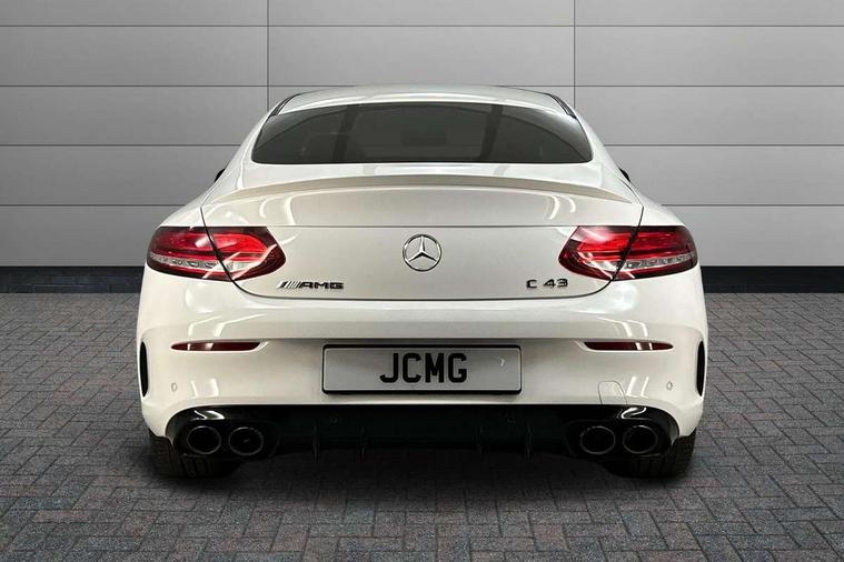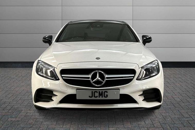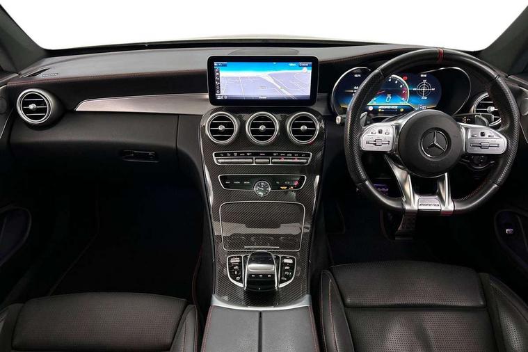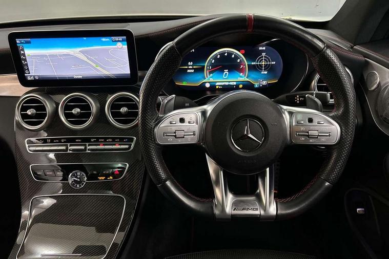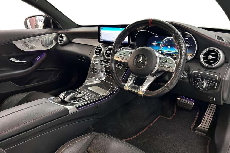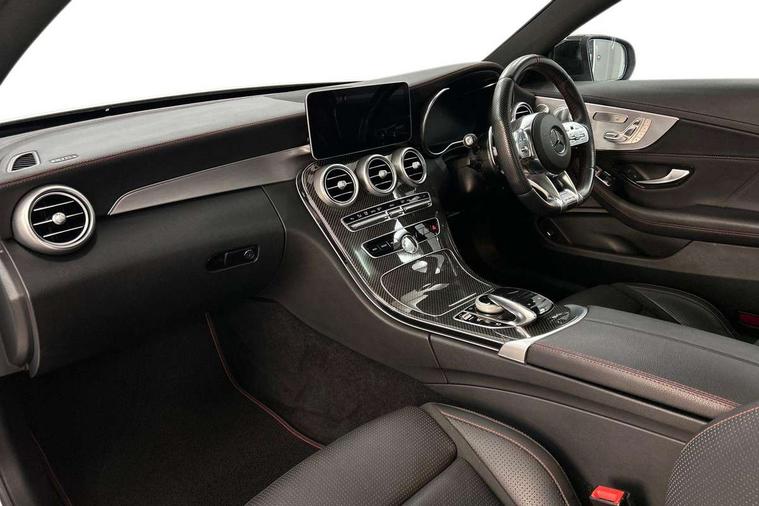 12.3" digital instrument cluster display, 2 stage speed sensitive sport steering, Active park assist with parktronic system, AMG boot logo in central screen, Attention assist, Bluetooth interface for hands free telephone, Collision prevention assist plus, Comand Online HDD Nav with media interface, radio/CD/DVD/MP3, 10.25 screen, linguatronic voice control, DYNAMIC SELECT with a choice of driving modes (ECO, Comfort, Sport, Sport+ and Individual), ECO start/stop function, High resolution 10.25" multimedia colour display, Instrument cluster with 5.5-inch TFT multi-function display, Mercedes me connect including emergency call system, accident recovery, breakdown and maintenance management, Multi function trip computer, Outside temperature display, Pre-wiring for SD navigation system, Remote boot release, Reversing camera, Service indicator (ASSYST), Status display for rear seat belts in instrument cluster, Wireless charging, 66l fuel tank with increased capacity, 9G Tronic plus 9 speed automatic, AMG performance 4MATIC with torque control distribution, AMG Ride Control sports suspension, Petrol Particulate Filter, Burmester surround sound system, DAB digital radio tuner, Frontbass loudspeakers, Mid-range sound system, SD card slot, Two USB ports and one SD Card slot in centre console, Adaptive brake lights, AMG bodystyling - front apron with distinctive air intakes and AMG rear apron with diffuser look, AMG boot lid spoiler in body colour, AMG design radiator grille with double louvre in matt iridium silver with AMG lettering, AMG performance exhaust system, Body coloured bumpers, Door sill panels with AMG lettering, Electric panoramic glass sunroof, Electric windows with one touch opening/closing and obstruction sensors, Exterior mirrors heated and electronically adjustable, Full LED tail lamps, Green tinted glass, LED daytime running lights, LED Indicators, LED third brake light, Multi beam LED headlights, Privacy glass (rear side windows and rear screen), Radio aerial integrated into rear window, Rain sensor windscreen wipers, Side windows surround in polished aluminium, V8 Bi-Turbo 4Matic badge on front wings, 2 cupholders in front centre console, 2 rear head restraints, 3 spoke flat bottom multi-function sports leather steering wheel in black with topstitching in red, 40:20:40 split folding rear seats, Ambient lighting, AMG sports seats, Auto Mercedes-Benz child seat recognition sensor, Black floor mats with AMG lettering, Electrical height and back adjustment front seat, Front centre armrest with storage compartment, Front head restraints, Front LED reading lights, Heated front seats, Height/reach adjustable steering column, Illuminated glove compartment stowage, Leather upholstery, Sports pedals with stainless steel surfaces and rubber studs, Steering wheel gearshift paddles, Steering wheel touch control buttons for audio and onboard settings, Sunvisors with illuminated vanity mirrors, THERMATIC 2 zone automatic climate control, AMG night package - C Class, Interior lighting package - C Class, Keyless go comfort package - C Class Coupe, Mirror package - C Class, Parking package with 360 degree camera - C Class, Seat comfort pack - C Class, Stowage space pack - C Class, 2 rear seatbelts, 3 point automatic seatbelts, Active bonnet, Adaptive brake system with hold function, hill start assist and brake drying function, Anti-lock braking system (ABS), Automatic seatbelt pretensioner for driver and front passenger, Brake calipers with AMG lettering + perforated brake discs, Dual stage airbags - driver and front passenger, front sidebags, driver kneebag, pelvis bag and windowbags for driver, front and rear passengers, Electronic parking brake, Electronic Stability Programme (ESP), ISOFIX child seat attachment points with top tether in rear, Red seat belts, Sports braking system with larger brake discs, Tyre pressure monitoring system, Warning triangle and first aid kit, Anti-theft alarm system/interior protection with tow-away protection and interior monitoring systems, Central locking with interior switch, automatic locking and crash sensor with emergency opening function, Chrome surround in electric key, Immobiliser, AMG carbon fibre trim, Artico man-made leather dashboard, Light longitudinal grain aluminium trim painted, 19" AMG 5 twin-spoke light alloy wheels with aerodynamically optimised and painted in black with a high-sheen finish, TIREFIT with tyre inflation compressor,