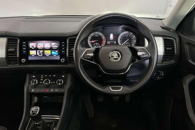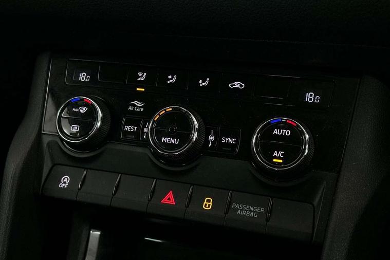 Bluetooth system, Colour multifunction trip computer, E-call, ECO Stop/start function, Exterior temperature indicator, Power assist steering, Smartlink wireless for apple carplay and wired for android auto, Speed limiter, Tailgate unlocking from outside, USB C Port x 2 in front centre console, 8 Speakers, DAB Digital radio, Aero front windscreen wipers with intermittent function, Aero rear window wiper, Auto dimming rear view mirror, Black wheel arch surrounds, Body colour bumpers, Body colour door mirrors and handles, Electric front and rear windows, Extended rear spoiler with finlets in gloss black, Front fog lights, Headlight washers, Heated rear window, Invisible tailpipe, LED rear fog light, LED third brake light in rear spoiler, Light assistant (coming/leaving home/tunnel light), Off-road style lower front bumper element, Privacy glass, Radiator grille frame in matt black with chrome strip, Rain and light sensors, Rear LED lights (high functionality) with welcome effect and dynamic indicators, Rear side wing doors, Safety reflectors on front and rear doors, Window control switches with black trim, 12V socket in boot, 2 rails with 2 hooks, 2 seat bench in 3rd row, 3 seat bench in 2nd row, 4 foldable roof handles with rear coat hooks, 60:40 foldable rear seat with sliding adjustment and backrest angle adjustment, Bottle holders in door panel in the 1.5 litre front and 1 litre rear, Cargo storage compartments, Chrome interior door handles, Cloth upholstery, Coat hooks on B pillar, Covered storage compartment on driver side, Dual zone automatic air conditioning with humidity sensor and control, Front centre armrest with storage compartment, cup holder and 12V socket, Gear shift lever with chrome frame and black gloss insert, Grey headlining, Grey stitching in front and rear armrests and door armrests + door inserts, Height adjustable front headrests, Height adjustable front seats, Illuminated and cooled glovebox, Illuminated luggage compartment, Isofix child seat fittings in outer rear seats with top tether, Manually adjustable steering column, Net programme in boot (1x horizontal Net, 2x vertical Nets), Overhead glasses storage compartment, Pollen filter, Rear centre armrest with cupholders, Single front passenger seat, Sliding trunk cover, Small Bags on the inner sides of the front backrests, Sunvisors with illuminated vanity mirrors, Three rear height adjustable headrests, Ticket holder on A Pillar, Umbrella in door panel, Variable boot floor, Auto door release and activation of warning lights in the event of an accident, Child locks on rear doors, Driver and front passenger airbag with knee airbag and front passenger airbag deactivation, Electronic parking brake with hill start assist, Emergency rear braking signal, ESC (incl. ABS+MSR+ASR+EDS+HBA+DSR+RBS+MKB), Front assist with autonomous emergency braking, Front side airbags with curtain airbags, Fuel cut off safety device, Height adjustable front 3 point seatbelts + pretensioners, Hill hold control, Rear disc brakes, Safety vest holder in door, Seat belt reminder for all seats, Three point rear seat belts, Two tone horn, Tyre pressure monitor, Alarm with interior monitoring and tilt sensor with safe function, Anti-theft wheel bolts, Immobiliser, Keyless entry and start system (KESSY), Remote central locking with 2 keys, Grey stitching in dashboard, Temporary spare wheel (space saver),