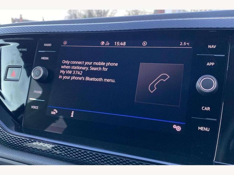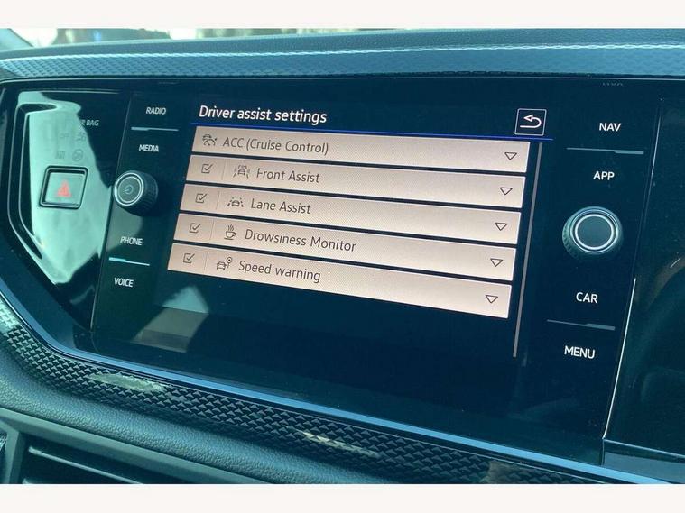 Advanced driver attention and drowsiness monitor, Bluetooth mobile phone interface, Dynamic road sign display, Emergency call service, Mobile phone preparation with inductive charging function, Multifunction front facing camera for distance control, Power assisted speed sensitive steering, Predictive adaptive cruise control without follow-to-stop and speed limiter, Preparation for navigation system with media and internet package, Preparation for We connect and We connect plus, Rear view camera, Speedo and rev counter, electronic odometer, trip, service interval display and exterior temperature gauge, Standard rear axle, Travel Assist - Lane keeping system and traffic jam assist, Travel assist including emergency assist, Trip computer, Warning signal and warning light for front and rear seatbelts not fastened, Washer fluid level indicator, Wireless app connect, Front wheel drive, Rear shock absorpion, Start-stop system with battery regeneration (recuperation - energy recovery during braking), DAB Digital radio, Diversity antenna for FM reception, Automatic dimming interior rear view mirror, Automatic headlight control with LED separate daytime running lights with coming/leaving home function, Body colour bumpers with chrome inserts, Body colour door handles, Body colour door mirrors, Electric front windows, Engine badge deletion, Headlight range adjustment, Heat insulating and laminated safety glass windshield, LED Headlights, LED rear combination lamps, Power folding adjustable/heated exterior mirrors and front passenger exterior mirror lowering function, Rain sensor, Rear electric windows, Rear fog light, Rear side wing doors, Rear tinted glass from B-pillar backwards approx 65% tinted, Rear windscreen washer and wiper with interval delay, Third brake light, 12V power socket in centre console, 2 front and 2 rear reading lights with switch off delay and dimmer, 2 USB-C ports in the front, 2 USB-C charging sockets on the center console in the rear, 3 rear head restraints, 60/40 split folding rear seat and rear seat bench not split, Ceramique roof lining, Chrome plated radiator grille inserts, air vent surrounds and light switch surrounds, Door and side trim panel, Driver and front passenger seat height adjustment, Driver/passenger sunvisors with illuminated vanity mirrors, Front centre armrest, Front seat backrest storage pockets, Front standard seats, Handbrake lever handle in leather, Hartley/Thomas cloth upholstery, Headliner in recycled material, Isofix child seat preparation easy-fit (for two outer rear seats, and front passenger seat) compatible with I-size, Leather trimmed gear knob, Luggage compartment cover, Luggage compartment lighting, Removable luggage compartment floor, Single front passenger seat, Standard climatic zones, Standard pedal cluster, Three spoke leather wrapped multifunction steering wheel with shifting paddles, Light and vision pack - Polo, 3 point height adj front seatbelts + pretensioners, 3 point seat belt for centre rear seat, 3 point seatbelts, outer rear with ECE lable, ABS, Driver and front passenger airbag with front passenger airbag deactivation, Drivers and front passengers safety optimised head restraints, ESC (Electronic stability control) + EDL (Electronic Differntial lock) and ASR (Traction control), Extended and predictive pedestrian/ cyclist protection, Front assist with autonomous emergency braking (for Adaptive Cruise Control ACC up to 130 mph), Front curtain and side airbags with center airbag, Front disc brakes, Hill hold control, Manual child lock in rear doors, Rear drum brakes, Single tone horn, Tyre pressure loss indicator, Alarm with interior protection, Anti-theft alarm system with interior monitoring, backup horn, and towing protection, Anti-theft wheel bolts, Electronic engine immobiliser, Lava stone black gloss/matt decorative inserts in dash and front door panels, 16" Torsby alloy wheels, Low rolling resistance tyres,