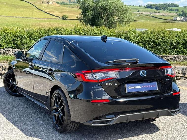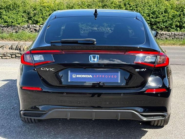 7" Multi information display screen, Adaptive cruise control, Adaptive motion for electric power steering, Adjustable speed limiter, Agile handling assist, BLIS (Blind Spot Information System) with Cross Traffic Monitor, Bluetooth hands free telephone connection, Driving modes, Economy mode, Electric power steering wheel with variable gear ratio steering, Emergency call service, Emergency stop signalling system, Forward collision warning, Front and rear parking sensors, Honda CONNECT with Navigation 9" touchscreen, AM/FM/DAB, Apple Carplay and Android Auto, live traffic info, Honda sensing, Idle stop, Intelligent speed limiter, Lane departure warning system, Lane keep assist, Low speed following, Power meter, Rear parking camera, Road departure mitigation, Smartphone wireless charging plate, Tailgate, Traffic jam assist, Traffic sign recognition, Wireless apple carplay, Vehicle stability assist, 'Shark fin' mobile antenna, 2x USB Front socket (1 data & 1 charge), 8 Speakers, Digital Audio Broadcast (DAB) Tuner, Front tweeters, Steering wheel mounted audio controls, Aspherical driver door mirrors, Auto dimming rear view mirror, Auto headlight adjuster, Auto headlights, Automatic coming/leaving home lighting function, Automatic rain sensing wipers, Black window frames, Body colour door handles, Electric adjustable heated door mirrors, Electric front and rear windows, Electrically folding door mirrors, Headlight extension black, High beam assist, High level LED brake light, LED daytime running lights, LED front fog lights, LED front turn type, LED Headlights, LED rear lights, Low gloss black window garnish, Material finish grille, Pop up hood, Privacy glass, Rear side wing doors, Rear wiper, Single hidden exhaust pipe, Variable front intermittent wipers, 3 seat bench in 2nd row, 60/40 split folding rear seat, Cargo accessory power socket, Cargo net hooks, Driver and front passenger seat armrests, Driver's electric lumbar adjustment, Driver's seat height adjustment, Dual climate control air conditioning system, Fabric/synthetic leather upholstery, Front accessory power socket, Front map lights, Front/rear courtesy lights, Glovebox light, Heated front seats, Hybrid emblem, Isofix points/i size, Leather steering wheel, Meter Illumination white, Passenger seat back pocket, Platinum chrome interior door handles, Rear air vents, Rear head restraints, Rear reading lights, Rear seat centre armrest, Single front passenger seat, Stainless steel sports pedals, Sunvisors with illuminated vanity mirrors, Tilt/telescopic adjustable steering wheel, Tonneau cover, Trunk light, USB Rear number 2 x charge, White ambient roof light, 3x3 point rear seatbelts, ABS+EBD+Brake assist, Airbags - driver and front passenger, Airbags - Knee (AS), Airbags - Knee (DR), Anti-whiplash front headrests, Brake hold function, Collision mitigation braking system, Collision mitigation throttle control, Deflation detection system, Driver SRS airbag (single stage inflation), Electronic parking brake with auto hold, Front and rear curtain airbags, Front and rear seat belts with emergency locking retractor (ELR), Front centre airbag, Front side airbags, Hill start assist, Low speed brake system, Manual child lock in rear doors, Passenger airbag deactivate switch, Rear airbags, Regenerative braking/deceleration paddle control, Immobiliser, Mirrors and windows key fob, Remote central locking with 2 jack knife keys, Security alarm, Selectable door unlock, Smart entry + Smart start, Superlocking, Tilt sensors, Ultrasonic security sensor, Tyre repair kit,