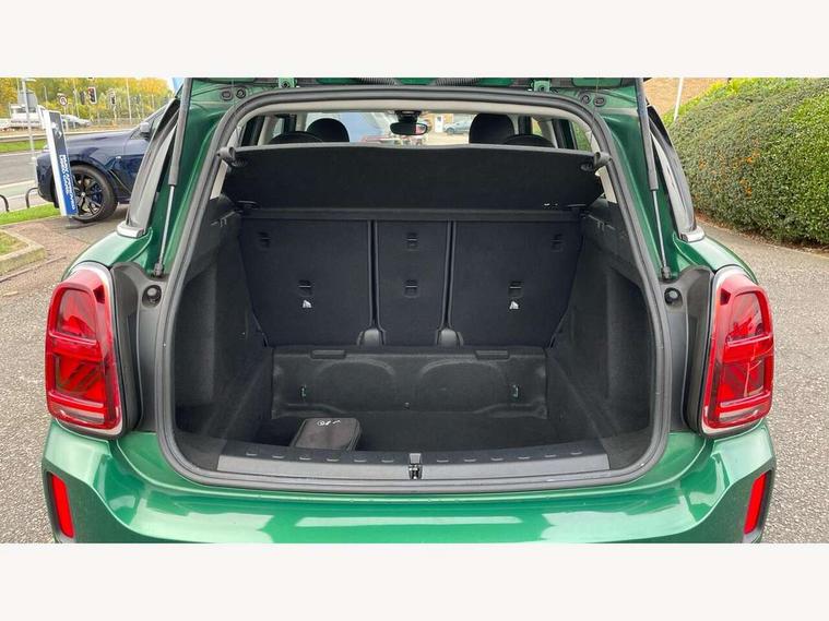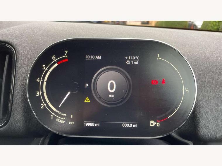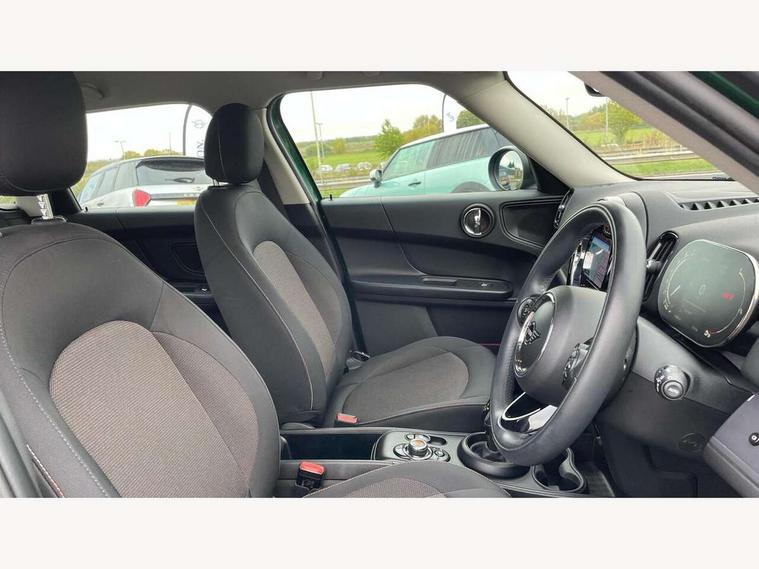 Active Guard incl speed limiting and lane departure functions with auto steering, and front collision warning with brake intervention, Automatic start/stop function with brake energy recuperation, Digital cockpit, Electro-mechanical speed dependant steering assistance, Instrument cluster, Mini E-call, MINI TeleServices, On board computer, Rear parking distance control, Double Vanos system, Fully variable valve control, High precision injection, Steptronic transmission with double clutch, FM tuner and DAB digital radio, Body colour fuel filler cap, Day time driving lights, Door sill strips, Dynamic brake lights, Electric windows, Heated rear window, Heated windscreen washer jets, LED fog lights, LED Headlights, Left exhaust tailpipe with chrome finisher, Model logo, Model logo on Tailgate, Radiator grille, Rain sensor with auto headlights, Rear fog lights, Rear window wiper, Side scuttle panel with integrated indicator, Split rear doors, Sun/heat protection glass, White indicator lenses, 12V Accessory socket in centre console, 3 spoke sport leather steering wheel + limiter function and audio controls, 360L luggage compartment capacity, 4 lashing eyes in luggage compartment, 40:20:40 split folding rear seats, Chrome interior highlights, Colour line - Carbon black, Cupholders, English handbook, Front headrests, Glove compartment, Headliner with grab handles and clothes hooks, Height and length steering column adjustment, Interior lighting with 12 basic colours selectable via toggle switch in roof, Isofix rear child seat preparation, Leather gearshift lever and handbrake gaiters, LED reading lights, vanity mirror lights, front foot well light and spotlight on front seats, Manual air conditioning, Mechanical seat adjustment, driver seat height adjust, forward/back and front seats backrest, Multifunction steering wheel, Passenger seat height adjuster, Rear headrests, Storage compartments in doors, Sunvisors with vanity mirrors, Excitement pack - Countryman, Navigation pack - Countryman, 2 tone horn, 3 point seatbelts on all seats, 6 Airbags - front, side, head and seat belt tensioners, Anti-lock braking system (ABS), DSC - Dynamic Stability Control, Electronic handbrake, Front and rear disc brakes, Hill start assist, Tyre pressure monitoring system, Alarm system with tilt sensor, monitoring doors, bonnet interior and tailgate, Auto drive away locking, Deadlocking function, Electronic vehicle immobiliser, Locking wheel bolts, Start/stop toggle with keyless go, Tool kit,