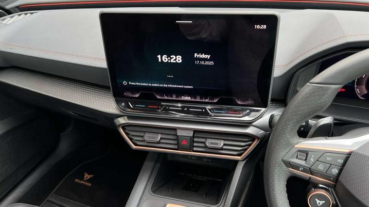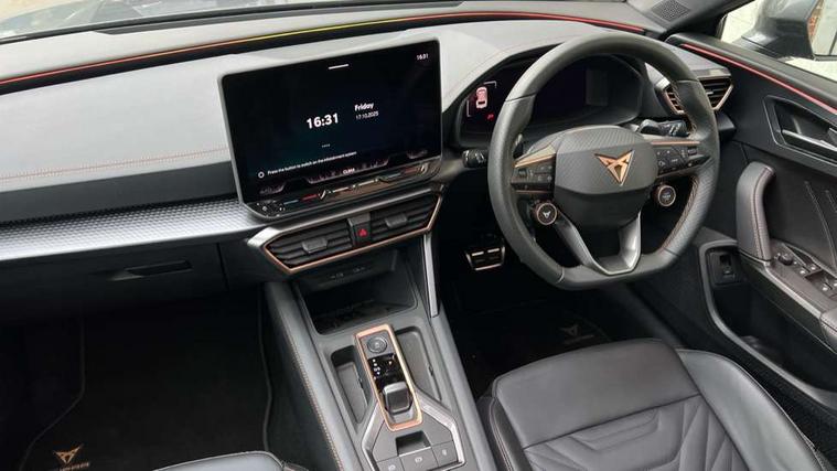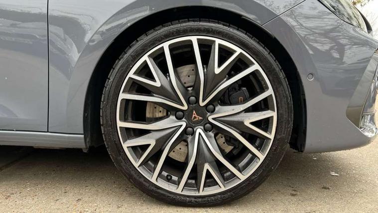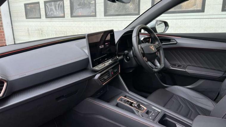 Adaptive cruise control with follow-to-stop and speed limiter, CUPRA drive profile selection with (Comfort/Sport/Individual), throttle response and gearshift mode, Digital cockpit, Dynamic road sign display, E-call, Four x USB Type C ports (2 in front and 2 in rear), Front and rear parking sensors, Front assist with forward collision warning braking reaction to vehicles, pedestrians and cyclists, Full link smartphone integration with Mirror Link, wireless Apple CarPlay and wired Google Android Auto, Intelligent park assist, Lane change assist with emergency assist, Lockable tailgate, Rear view camera, RPM, trip computer, outside temp gauge, instrument light brightness, low fuel warning light, lights on reminder, gearshift indicator, Service interval indicator, Side and exit assist, Start/stop system with regenerative braking, Virtual pedal with electric tailgate, Wireless phone charger, Auxiliary input socket, Auto dimming rear view mirror, Body colour door handles, Body coloured bumpers, Cupra sports bumpers, Dark tinted rear windows, Electric front/rear windows, Electrically adjustable, heated and folding door mirrors, Gloss black roof rails, High beam assist, LED front fog lamps with cornering function, LED rear fog lamp, Matrix LED Headlights with variable light distribution, Matrix Beam and Dynamic headlight range control, Rain sensing wipers, Rear side wing doors, Rear wash/wipe, Separate daytime running light with automatic headlight control and coming home feature, Third brake light, Welcome light with logo projector in door mirrors, 12v power supply in centre console, 3 seat bench in 2nd row, 5 headrests, 60/40 split rear bench seat with armrest, Ambient lighting (glovebox, footwell, ambient lighting multicoloured), Black headlining, Cupra sports pedals, CUPRA Supersports, heated steering wheel with satellite buttons, Electrically adjustable driver seat and lumbar support with memory function + manually adjustable passenger seat, Front and rear reading lights X 4, Front centre armrest, Heated front seats, Height/reach adjust steering wheel, Illuminated interior front door sills, Interior wraparound lighting, ISOFIX points in outer rear seats with top tether anchorage points, Leather upholstery, Single front passenger seat, Sliding boot cover, Storage pockets on rear of front seats, Sunvisors with illuminated mirror, Three zone climate control, Dynamic and comfort pack - Leon Cupra, Media system plus with 12.9" display + navigation pack - Leon Cupra, 3 point seatbelts on all rear seats, ABS, Brake control system - ESC and brake booster, Child proof door locks, Cupra black brake calipers, Driver and front passenger airbags with front passenger airbag de-activation, front side and curtain airbags, Electronic parking brake, Hill hold control, Pre-crash front and rear seat belt tensioner, window closure and hazard lights, Rear disc brakes, Seat belt reminder for front and rear seats, Tiredness recognition system, Tyre pressure monitoring system, Anti theft alarm system with interior monitoring in cab, backup horn and towing protection, KESSY Advanced - Keyless start, keyless entry, Locking wheel bolts, Chrome and copper interior detailing, 19" Mistral machined R black and silver alloy wheel with 91Y tyres, Breakdown kit, Tool kit,
