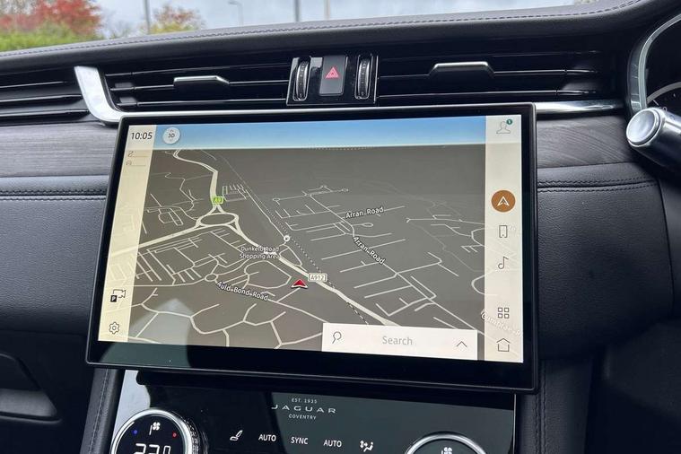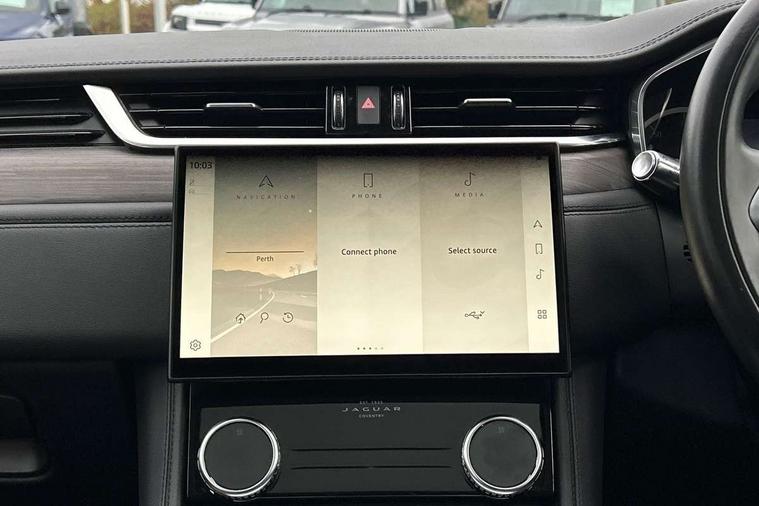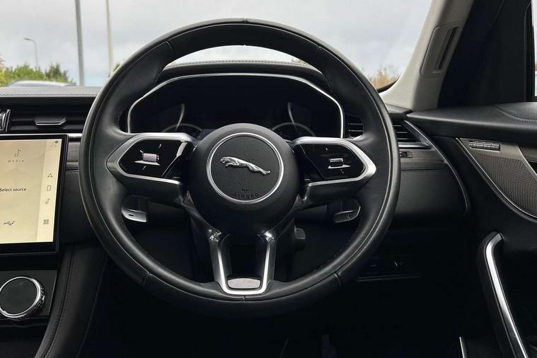 11.4" touchscreen, Android Auto, Apple car play, Bluetooth connectivity, Driver alert system, Driver condition monitor, eCall emergency call system, Eco driving style assistant, Electric power assisted steering, InControl remote, Jaguar Toggle shift selector, Lane departure warning system, Lane keep assist, Outside temperature gauge, Personalisation profile management, Pivi pro connected navigation system with app interface and media storage, Pro services and wifi hotspot, Push button starter, Service interval indicator, Speed proportional steering, Start up sequence with movement in dials and lighting, Traffic sign recognition with adaptive speed limiter, Trip computer, Voice control system, 8 speed automatic transmission, All terrain progress control, All Wheel Drive (AWD), Open differential with torque vectoring by braking, AM/FM radio, Bluetooth streaming, DAB Radio (Digital Audio Broadcasting), Dynamic volume control, InControl apps, InControl protect, iPod integration, 3 flash lane change indicators, 3rd brake light, Approach Illumination, Auto dimming rear view mirror, Automatic headlights, Body colour door mirrors, Electric windows with one touch open/close and anti trap, F-Pace badge, Green tinted glass, Heated front windscreen + heated washer jets, Heated rear window with timer, Jaguar script and leaper, LED tail lights, Non acoustic front windscreen, Rain sensor windscreen wipers, Rear fog lights, Rear metal tread plates, Rear side wing doors, Rear wiper, Trailer stability assist, Variable front intermittent wipers, 12V power point front, 3 rear headrests, 3 seat bench in 2nd row, Air distribution speed, Centre armrest console, Centre console with side storage, Door sill tread plates, Fold flat front seats, Front centre armrest with storage compartment, Front door storage space, Glovebox finisher with jaguar script, Heated steering wheel, Hooks in loadspace, Illuminated glovebox, Interior front door handles with separate locking switches, ISOFIX on outer rear seats, Jaguar sense, Luggage tie downs in loadspace, Mist sensing, Multifunction steering wheel, Overhead lighting console, Overhead stowage for sunglasses, Passive front head restraints, Premium carpet mats, Rear air vents, Rear armrest with twin cupholders, Rear centre headrest, Rear door storage space, Reversible boot floor, Satin chrome gearshift paddles, Shopping bag hook, Single front passenger seat, Split rim leather steering wheel, Sunvisors with illuminated vanity mirrors, Twin front cupholders with cover, Online Pack with data plan - F-Pace, 355mm front brakes and 325mm rear brakes, 3x3 point rear seatbelts, ABS, All surface progress control (ASPC), Brake pad warning light, DSC - Dynamic Stability Control, Electric parking brake (EPB), Emergency brake assist, Front airbags with passenger seat occupant detector, Front and rear seatbelt reminder, Front side airbags, Full length side window curtain airbag, Hill launch assist, Power operated child locks, Torque vectoring brake, Traction control, Tyre pressure monitoring system, Immobiliser, Keyless Start, Locking wheel nuts, Perimeter alarm, Remote central locking, Valet mode,