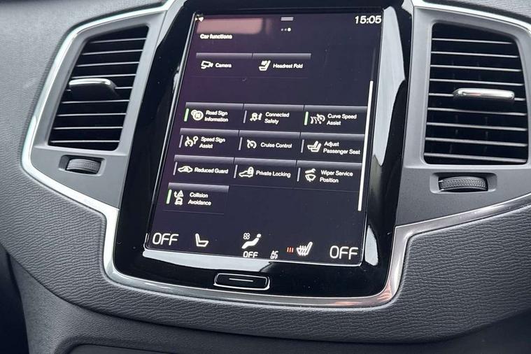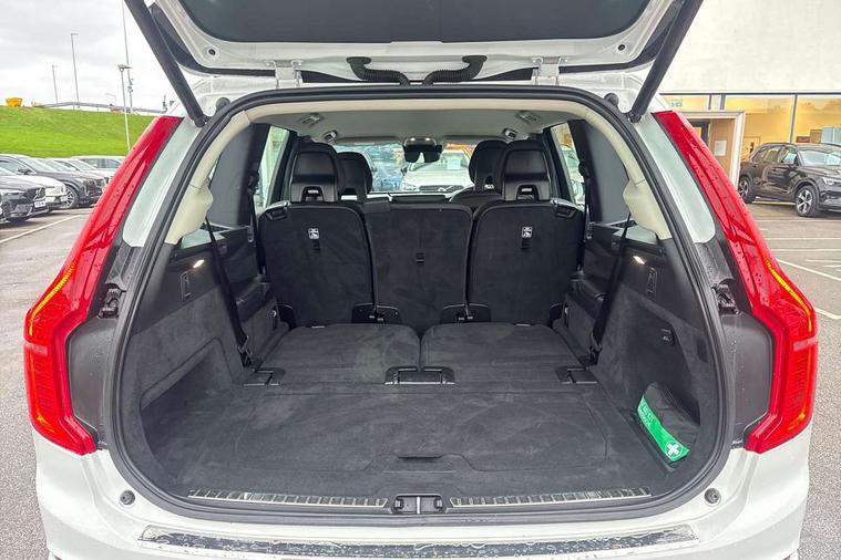 12.3" Active TFT crystal driver's instrument display, 9" centre console portrait touch screen, Adjustable steering wheel force, Bluetooth hands free telephone connection, Drive mode settings, Driver alert control with lane keeping aid, Driver assistance (pilot assist and adaptive cruise control), Driver awareness - Blind spot information system with steer assist, cross traffic alert with autobrake and rear collision warning and mitigation, Emergency call service, Front and rear park assist, Handsfree power tailgate opening and closing, Oncoming Lane Mitigation, Remote engine start, Sensus navigation with European mapping and traffic information, Service interval indicator, Speed limiter, Speed sensitive steering, Trip computer, Voice activated control for key functions, Volvo on call, 8 speed automatic transmission with start/stop + manual change functions, All wheel drive system, Touring chassis, DAB Radio (Digital Audio Broadcasting), Steering wheel remote infotainment controls, Adaptive brake lights with high level LED brake lights, Auto dimming interior + exterior mirrors, Automatic headlight levelling system, Automatic LED Headlights + Active high beam incorporating daytime running lights, Body colour bumpers, Chrome window surround, Colour coordinated auto folding and heated power door mirrors, Dual integrated exhaust pipes, Front and rear power windows, Home safe and approach lighting, Integrated roof rails in silver, Piano black waterfall front grille, Puddle lights, Rain sensor with automatic windscreen wiper activation, Rear side wing doors, Rear wash/wipe with intermittent wipe setting, Roof antenna, Roof spoiler, Visible VIN plate, 12V socket front tunnel console, rear passenger compartment and cargo area, 2 seat bench in 3rd row, 3 seat bench in 2nd row, 3 spoke tailored leather steering wheel with chrome trim in off- black, A-pillar parking ticket holder, B Pillar ventilation, Blond headlining, Bright metal luggage threshold, Cargo divider with grocery bag holder, Centre console cupholders and storage, Driver's side lower dashboard storage compartment, Floor mats, Front and rear aluminium tread plates, Front footwell and side step illumination, Front headrests, Front seat cushion extensions, Heated front seats, Height/reach adjustable steering column, Illuminated luggage compartment, Illuminated vanity mirrors + ticket holder, Illumination lockable glovebox compartment, Leather faced upholstery, Load protection net, Lower dashboard, tunnel console, Lower door panel in blond, Outboard armrest with cupholder and storage for third row passengers, Power driver seat with multi directional lumbar support and memory for seat and exterior mirrors, Power folding 2nd row headrests, Power passenger seat with multi directional lumbar support and memory, Rear headrests, Semi automatic load cover, Single front passenger seat, Underfloor cargo storage, 7 three point seatbelts, City safety includes pedestrian, cyclist and large animal detection and front collision warning with full auto brake, Drivers knee airbag, Dual stage driver/passenger airbags, First aid kit, Front seats SIPS airbags, Hill descent control, Hill start assist, IC (Inflatable Curtains) - Full Length, Passenger airbag cut-off switch, Power parking brake with auto hold function, Road sign information display, Run off Road Mitigation, Run off Road Protection, Seatbelt reminder and pretensioners for all seats, SIPS (Side Impact Protection System), Slippery road and hazard light alert, Stability and Traction Control with Spin control, Engine Drag Control and Corner Traction Control, Tyre pressure monitoring system, Vehicle deceleration control with Anti-lock Brake System, Electronic Brake Distribution and Emergency Brake Assist, Warning triangle, WHIPS whiplash protection system - front, Anti-theft alarm including immobiliser/volume sensor + level sensor, Care key with user defined top speed, Key integrated remote control central locking + fuel flap with deadlocking system and auto open/close power windows, Keyless drive (includes keyless entry and keyless start) with remote tag, Locking wheel nuts, Private locking for glovebox and tailgate, Iron ore inlays, Tempa spare wheel and jack,