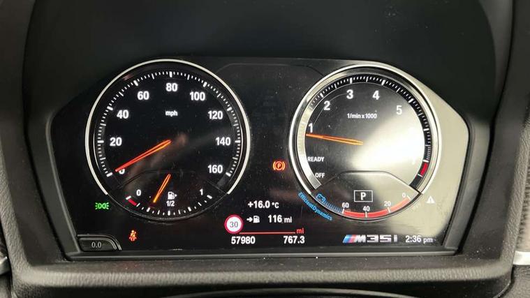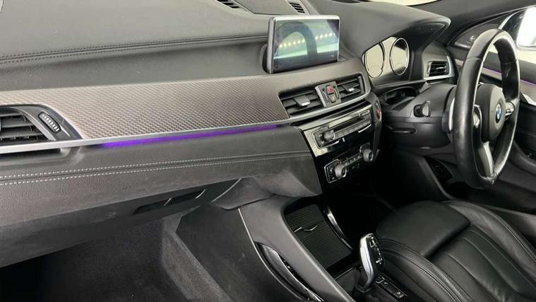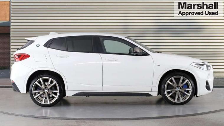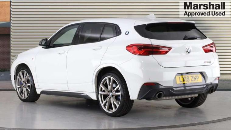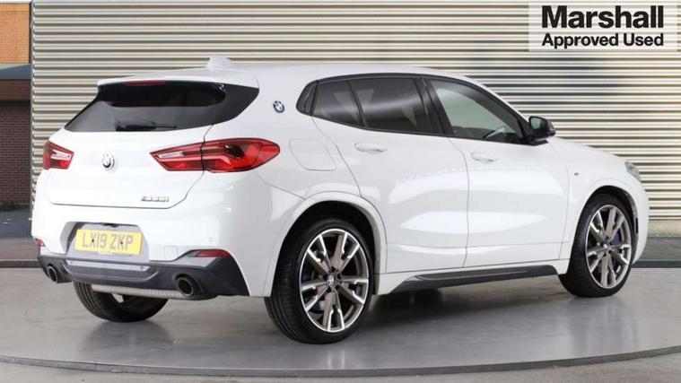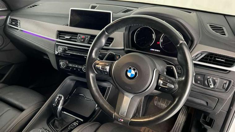 Automatic powered tailgate, Bluetooth hands free facility with USB audio interface, BMW Online services, BMW remote services, BMW Teleservices, Brake pad wear indicator in front and rear, Check Control warning system for monitoring of lights and door/luggage compartment open warning, Eco pro mode, Instrument cluster with black optic and 5.7" colour display + speedometer + tachometer + fuel gauge + instant fuel economy with M35i logo, Lights on warning by audio warning signal when ignition is switched off, M Sports steering, On board computer - average speed+fuel consumption, service interval, clock/date, odometer/trip meter, outside temperature display and ice warning, Optimum shift indicator, Personal Profile, Real time traffic information, Speed limiter, TMC for lifetime of vehicle, 12V compressor with integrated sealant injection bottle and hose, 61 Litre touring fuel tank, Anti roll bar front and rear, Balancer shaft, Drive performance control with ECO PRO comfort + sport mode, Electronic differential lock, Engine cover with M performance designation, M sport suspension, Sport automatic transmission, Twin tube gas filled shock absorbers with degressive characteristic curve, 2x USB sockets in front, Bluetooth audio streaming, BMW professional radio with CD player, DAB Digital radio, Steering wheel mounted audio/telephone controls, Adjustable headlights, Automatically dimming rear view mirror, BMW badge on bonnet, tailgate with integrated tailgate release and C pillars, Body colour door handles, Clear lenses direction indicator lights, Direction indicator side lights integrated in exterior mirrors using LED technology, Door mirror integrated indicators, Dynamic brake lights, Electrically adjustable and heated door mirrors glass aspheric on driver's side and convex on passenger side, Fingertip control / anti-trap function on electric window, Front and rear bumper system, Front and rear electric windows, Green tinted heat protection glazing, Halogen headlights, Heated windscreen washer jets, High gloss black front side air intake with matt black insert, High level third brake light, LED front fog lights, LED headlights with extended contents - cornering, high beam assist, LED day running lights with dynamic beams-through for urban and motorway, Lightweight engineering, M rear spoiler, Manual headlight beam throw control, Model designation in left tailgate, Rain sensor with automatic headlight activation, Rear fog lights, Rear tail lights with LED technology and 3D design, Rear window aerial, Rear window wiper with wash/wipe function, Reversing light in rear light cluster, Round exhaust system with twin cerium grey tailpipes in left and right split, Satin aluminium roof rails, Shark fin antenna, Twin chrome exhaust tailpipes, Visible VIN plate, Welcome lighting, 40:20:40 manually split folding rear seat with two tilt positions for backrest, Anthracite headlining, Armrest in centre section of rear seat backrest and folding, Automatic two zone climate control air conditioning, Child seat ISOFIX attachment for two outer rear seats and front passenger seat with anchorage points, Conditioned based service, Driver + passenger vanity mirrors, Driver and front passenger seat heating, Driver/passenger sunvisors with ticket holders, Drivers folding storage compartment, Floor mats with contrasting stitching on dashboard and centre console, Front and rear door armrests, Front armrest, Front door sill finishers with M35i designation, Gearshift paddles on steering wheel, Glovebox with light, LED ambient lighting in upper door trim and dashboard trim, Luggage compartment lighting, Luggage compartment loading edge with stainless steel insert, Luggage compartment with underfloor storage and four lashing eyes, M Sport multifunction leather steering wheel, Rake/reach adjustable steering wheel, Retaining strap on the left side of the luggage compartment, Three rear headrests, Two cupholders in front and rear centre console, Extended lighting pack - X2 M35i, Extended storage pack - X2, M Sport aerodynamic pack - X2 M35i, 3 point seatbelts on all seats, front pyrotechnic belt tensioners, stopper and belt force limiters, rear coded belt buckles, Airbags - Front driver and passenger, front and rear head, front side, curtain head protection, Anti lock braking system (ABS) with brake assist, ASC - Active stability control, BMW emergency call, Brake drying, Brake energy regeneration, Braking readiness, Child proof locking system in rear door, Crash sensor activating central locking release with hazard warning lights and interior lighting + battery safety cut-off, Driver and front passenger seat belt security check, DSC - Dynamic Stability Control, Dynamic Traction Control - DTC, Electrically operated parking brake with automatic drive release, Electronic parking brake, Front passenger airbag deactivation, Front ventilated brake disc, Hill descent control, Hill start assist, M Sport braking system, M Sport seatbelts, Multi collision braking system, Rear brake discs, Side impact protection, Twin horns, Tyre pressure monitor, Warning triangle and first aid kit, Auto door lock when driving, Central locking switch for all doors, fuel filler cap and luggage compartment, Engine immobiliser, Incorrect fuel protection system, Locking wheel bolts, Remote control including integrated key with M specific highlight, Remote control Thatcham category 1 alarm, Start/stop button with comfort go keyless engine start and auto start stop deactivation button, Dash top finished in black with decorative stitching line on upper section, High gloss black centre console, Reduced rolling resistance tyres,