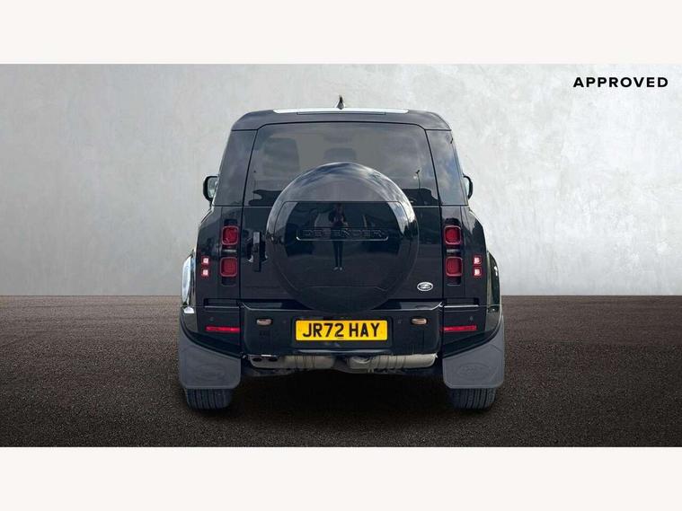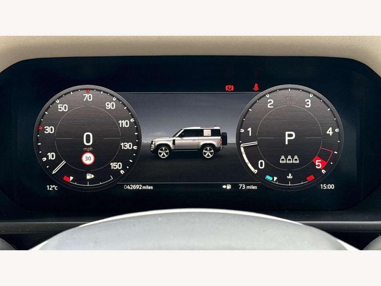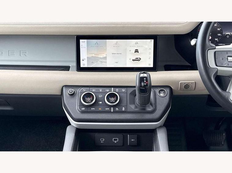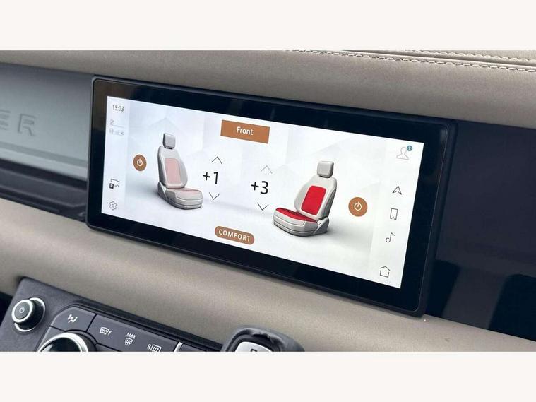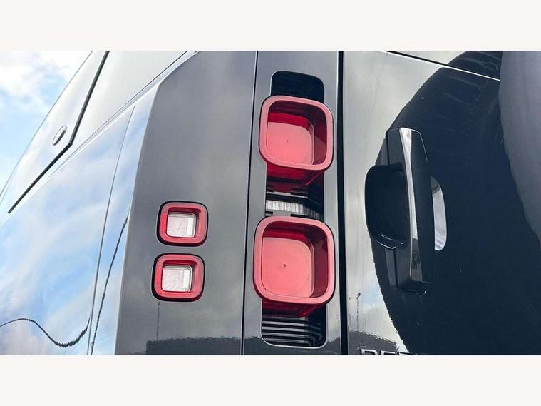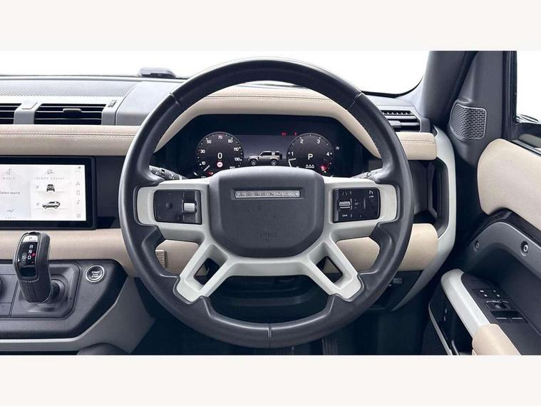 360 degree parking aid, 3D Surround Camera with 360 View, 180 Rear View, Front Traffic Detection, Forward Vehicle Guidance, Tow Hitch Assist and clear sight Ground View, Android Auto, Apple CarPlay, Assisted tailgate with soft close, Blind spot assist, Bluetooth system, Brake pad wear indicator, Clear exit monitor, Connected navigation pro, Driver condition monitor, Electric power assisted steering (EPAS), Lane keep assist, Push button start, Rear traffic monitor, Traffic sign recognition with adaptive speed limiter, Trip computer, Wade Sensing, 8 speed automatic transmission, All wheel drive system, Twin speed transfer box, DAB Radio (Digital Audio Broadcasting), Meridian 400w sound audio system with 11 speakers and subwoofer, Pivi pro connected, Automatic headlight levelling, Automatic headlights, Centre high mounted stop light, Electric heated/power fold door mirrors with approach lights and auto dimming driver side, Electric windows with one touch open/close and anti-trap, Follow me home lighting, Front fog lights, Heated rear window with timer, Heated windscreen, LED tail lights, Panoramic rear side glass, Privacy glass, Puddle lights, Rain sensing windscreen wipers, Rear fog lights, Rear wiper, Side hinged tailgate, Trailer stability assist, X-Dynamic badge, 12V power socket in loadspace, 3 seat bench in 2nd row, Alpine lights, Durable rubber cabin flooring, Durable rubber loadspace flooring, Footwell lights, Loadspace cover, Loadspace Hook, Multifunction steering wheel, Overhead stowage for sunglasses, Premium cabin lighting, Rear headrests, Rear ISOFIX, Rear reading lights, Single front passenger seat, Standard seat configuration, Storage glovebox, Sunvisors with illuminated vanity mirrors, Online pack with data plan - Defender, 5 x 3 point seatbelts, ABS, Brake hold function, Cornering brake control (CBC), Customer configurable autolock, DSC - Dynamic Stability Control, EBD - Electronic brakeforce distribution, Electric parking brake (EPB), Emergency brake assist, Emergency braking, ESP + traction control, Front airbags with passenger seat occupant detector, HDC - Hill descent control, Hill launch assist, Low traction launch, Remote for (e-Call, Optimised assistance call, InControl app, Climate, beep and flash and door), RSC - Roll stability control, Seat belt reminder, TPMS (Tyre pressure monitoring system), Alarm, Immobiliser, Intrusion sensor, Keyless entry, Locking wheel nuts,